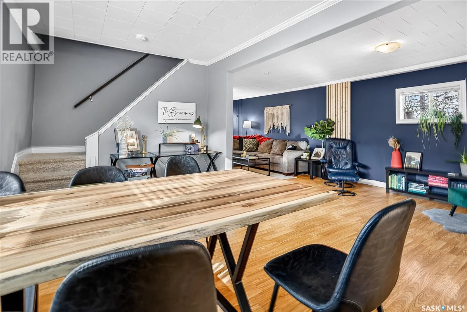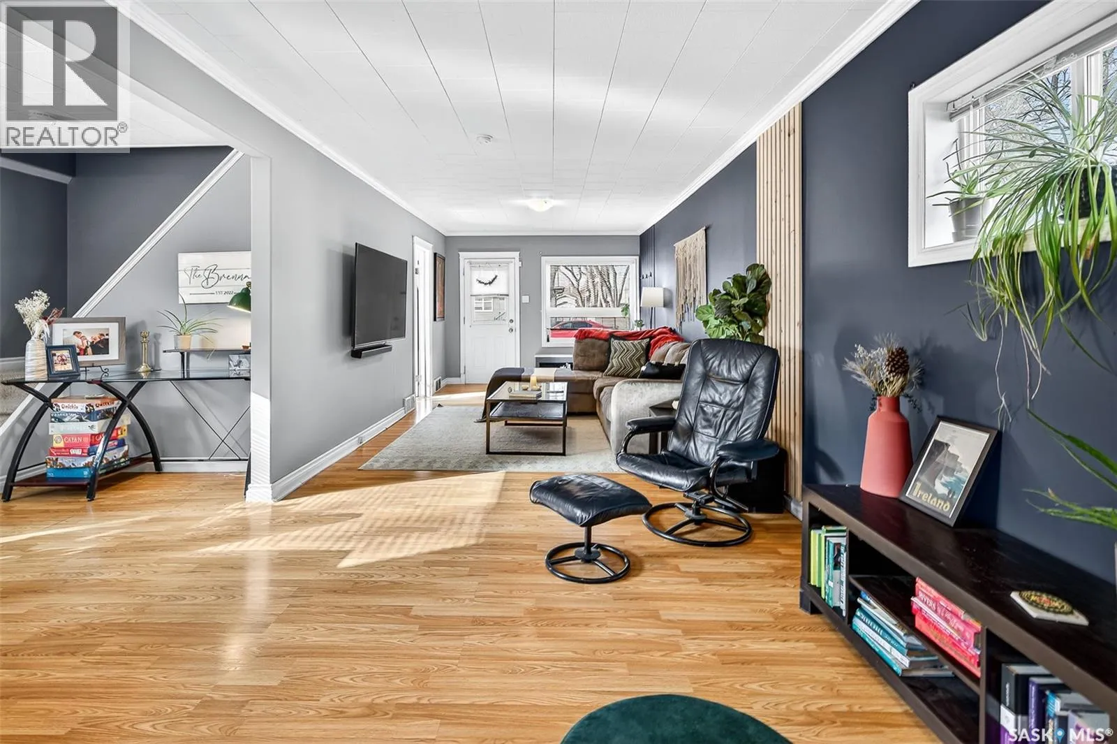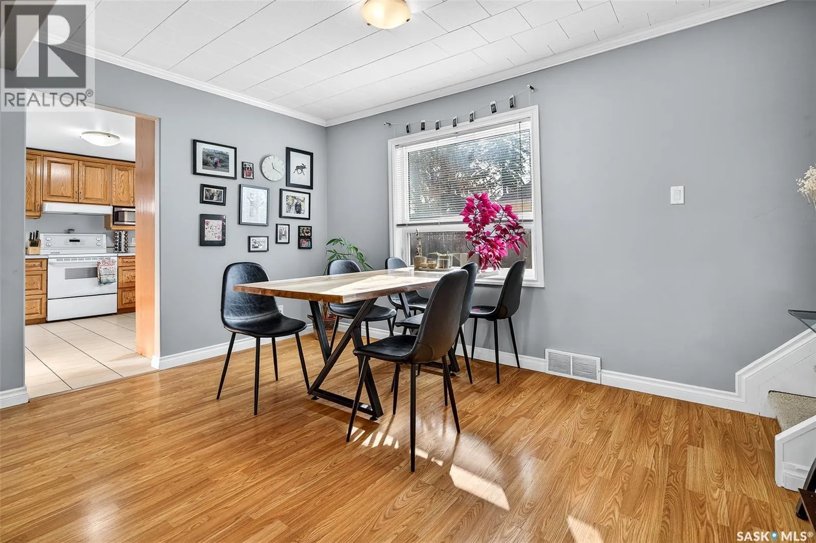 Beautiful home in our city's charming avenues, within walking distance to Saskpolytech, elementary and high schools and parks! This home hosts 3 bedrooms, 2 bathrooms, 1282 sq ft, and a huge 34' x 22' garage with in-floor heat (single car door with large workshop)!! This home hosts a spacious living room and dining room, with plenty of natural light. You have a large kitchen with beautiful oak cabinets - this kitchen has great storage! Coming in from the back of the home, you have a huge mudroom with custom built-in cupboards perfect for all your coats and shoes, and from the front you have a custom-built entryway bench! The main floor hosts also hosts a bedroom and 4 pc bathroom. Upstairs you will find two more spacious bedrooms, with built-in-cabinetry. The basement hosts a large, newer 3-pc bathroom, laundry room, and plenty of room for storage! Let's not forget about your massive garage! You have a 34' x 22' garage, complete with a single car bay, and large workshop, all with in-floor heat (and also additional parking spots in the back!) New metal roof on the garage this September! You have a fully-fenced yard, giving you plenty of room for activities! This home has a lot to offer at a great price point! Book your showing today! (id:27476)