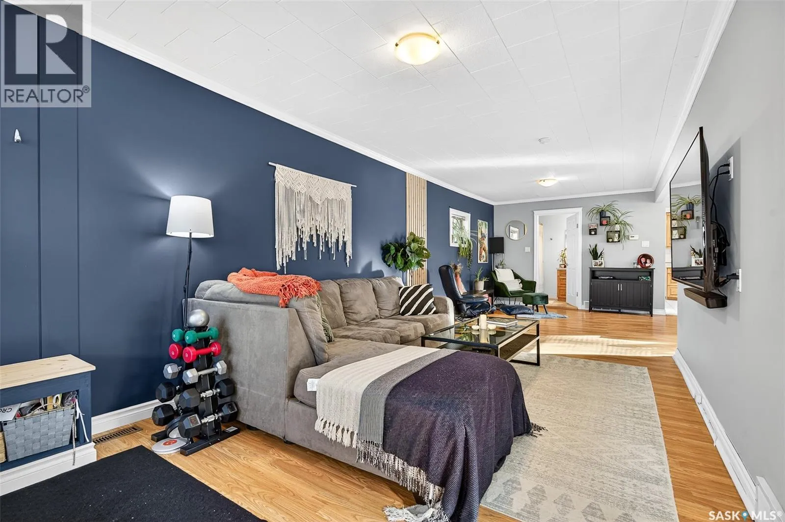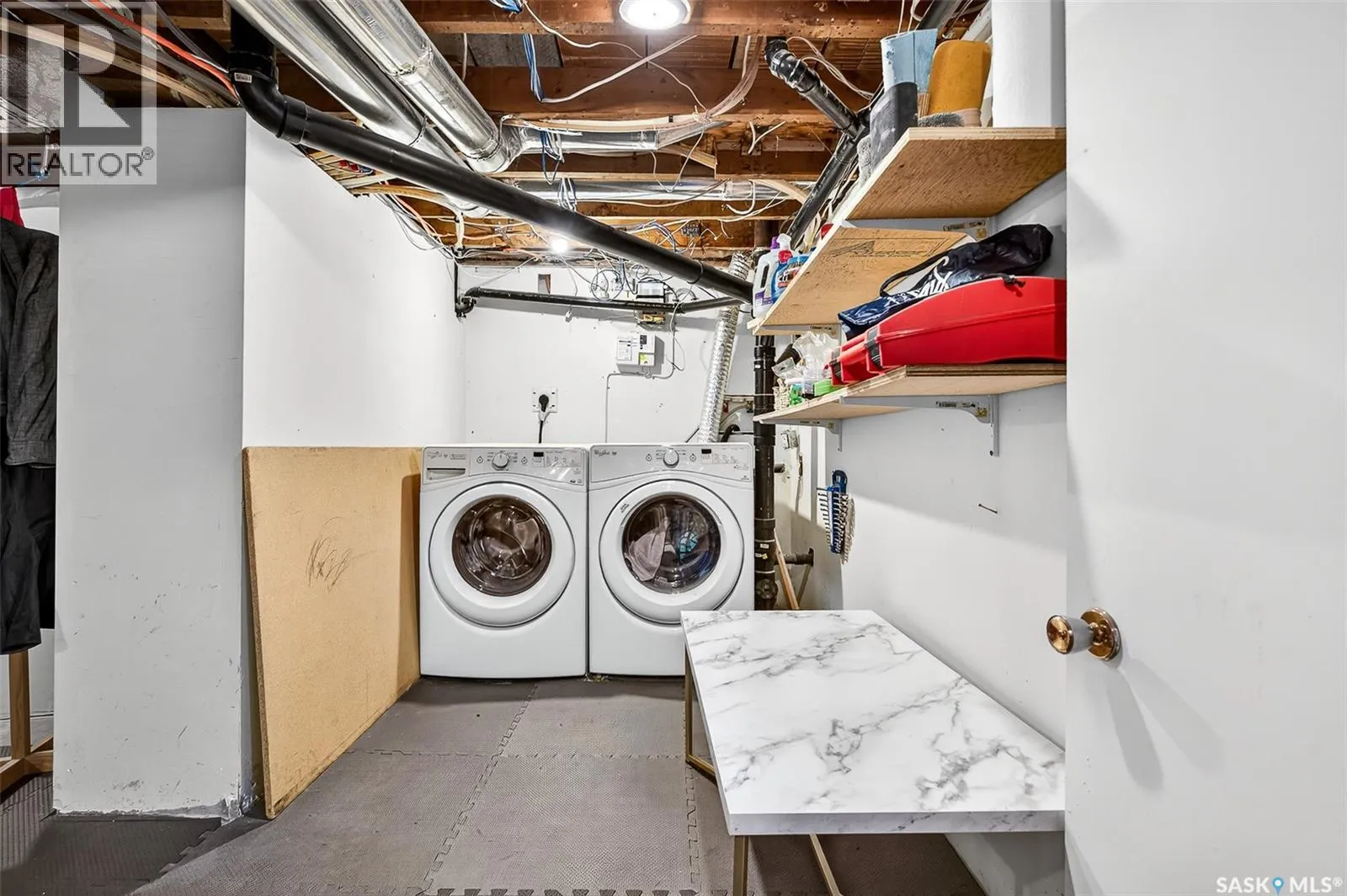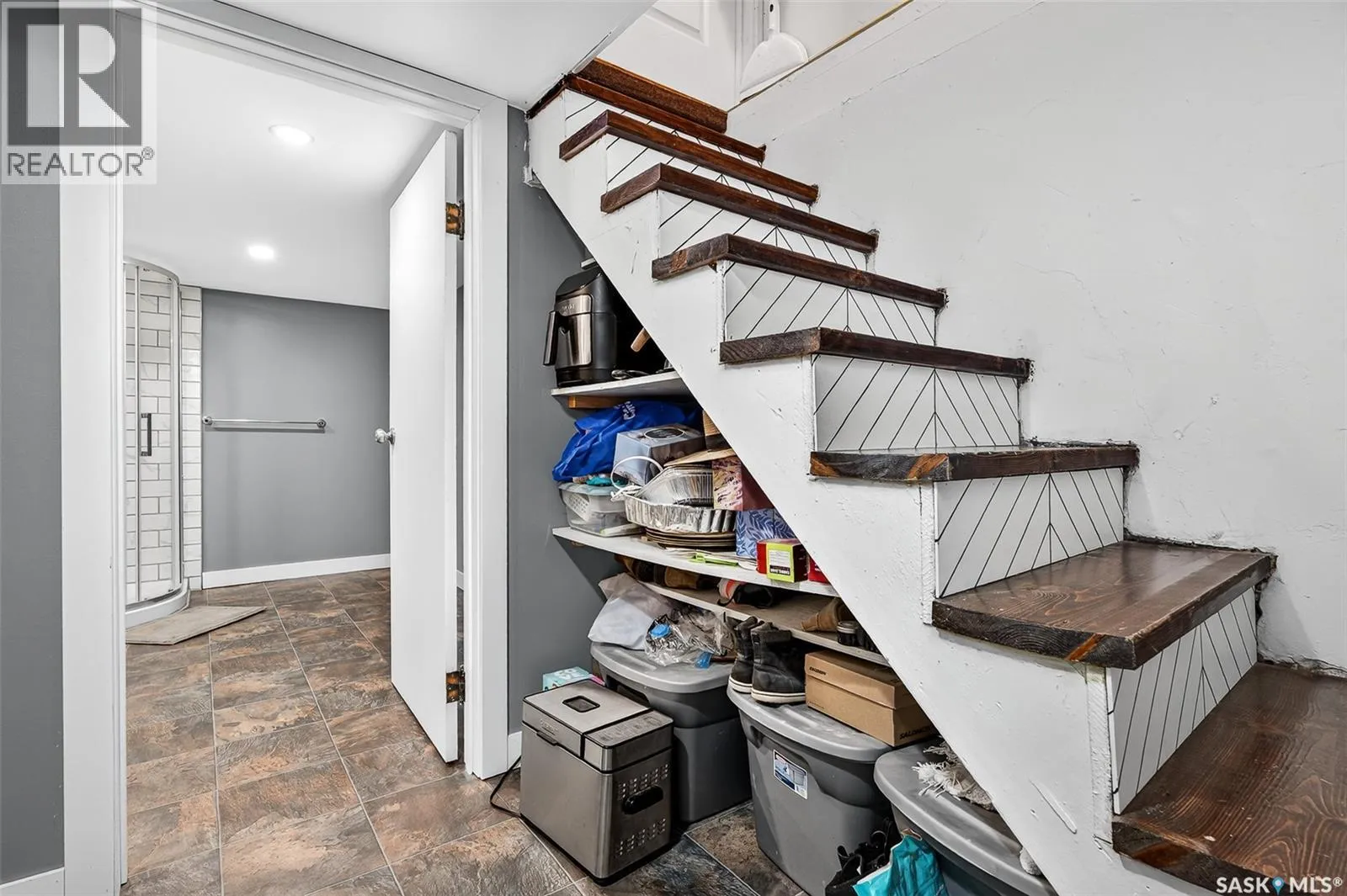 Beautiful home in our city's charming avenues, within walking distance to Saskpolytech, elementary and high schools and parks! This home hosts 3 bedrooms, 2 bathrooms, 1282 sq ft, and a huge 34' x 22' garage with in-floor heat (single car door with large workshop)!! This home hosts a spacious living room and dining room, with plenty of natural light. You have a large kitchen with beautiful oak cabinets - this kitchen has great storage! Coming in from the back of the home, you have a huge mudroom with custom built-in cupboards perfect for all your coats and shoes, and from the front you have a custom-built entryway bench! The main floor hosts also hosts a bedroom and 4 pc bathroom. Upstairs you will find two more spacious bedrooms, with built-in-cabinetry. The basement hosts a large, newer 3-pc bathroom, laundry room, and plenty of room for storage! Let's not forget about your massive garage! You have a 34' x 22' garage, complete with a single car bay, and large workshop, all with in-floor heat (and also additional parking spots in the back!) New metal roof on the garage this September! You have a fully-fenced yard, giving you plenty of room for activities! This home has a lot to offer at a great price point! Book your showing today! (id:27476)