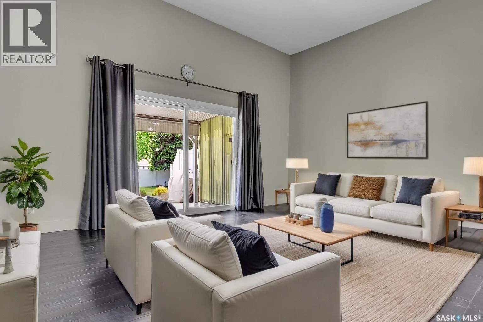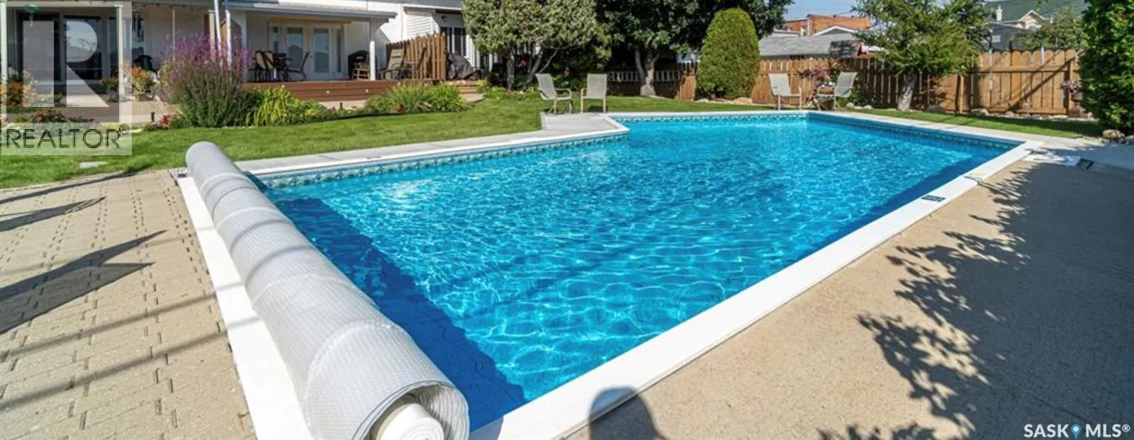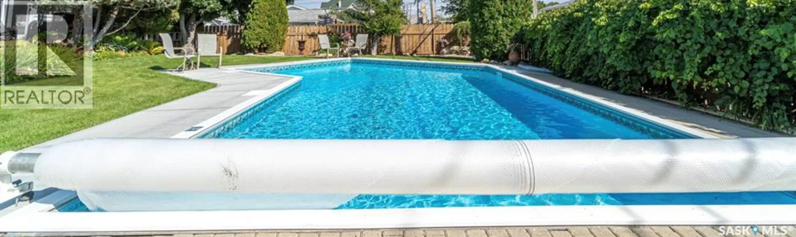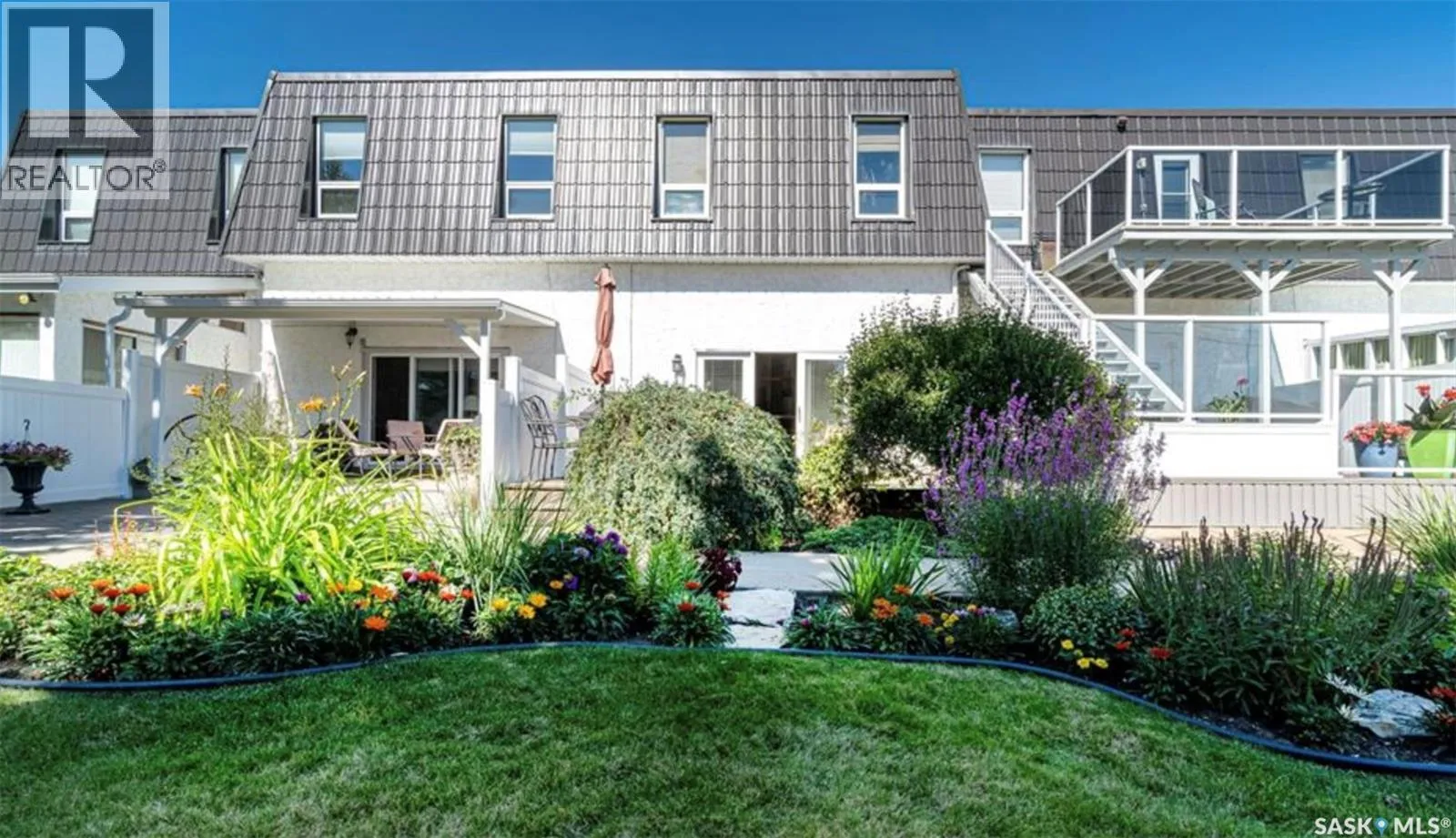 Are you seeking a unique property in the heart of Moose Jaw's vibrant downtown? Look no further! These exclusive condos are a rare find on the market and boast the only heated outdoor pool in Moose Jaw. Imagine inviting friends over for a poolside gathering or indulging in a serene afternoon dip on your own. This fabulous 2 bedrooms, 1.5 bathrooms unit is designed in a charming townhouse style w/4 finished floors, sure to captivate anyone seeking a stylish living space. Invited by the Foyer w/access to the heated att. single garage, you are led to the spacious living room w/hardwood floor, features sliding doors opening to a private covered deck w/natural gas bbq hook up & an open patio overlooking a lush courtyard teeming w/trees/perennials. This oasis opens into the outdoor heated pool! Also the entire complex has new PVC fencing. The dining room, overlooking the living room, has a built in China cabinet & the kitchen is updated w/quartz countertop, maple cabinetry w/large windows filling the room with light. This floor is complete w/a 2pc. bath. There are 2 Bedrooms & each have beautiful windows. The Primary enjoys 2 closets. This floor is complete w/Laundry/4pc. Bath combo fully updated & even has extra storage. The lower level of this impressive condo features a versatile bonus room that is a flex room to use for your lifestyle. Additional features include a single attached insulated garage for secure parking and extra storage, as well as a front driveway that provides extra parking for you or your guests. With low condo fees of just $350/month, essential services such as snow removal & lawn care are covered, offering you convenience and peace of mind. This exceptional property combines comfort & style, making it a rare gem in Moose Jaw's downtown area. Donât miss the chance to make this condo your new home! CLICK ON THE MULTI MEDIA LINK FOR A FULL VISUAL TOUR and Call Today! * Some photos of Living, Dining & Primary Bedroom are virtually staged. (id:27476)