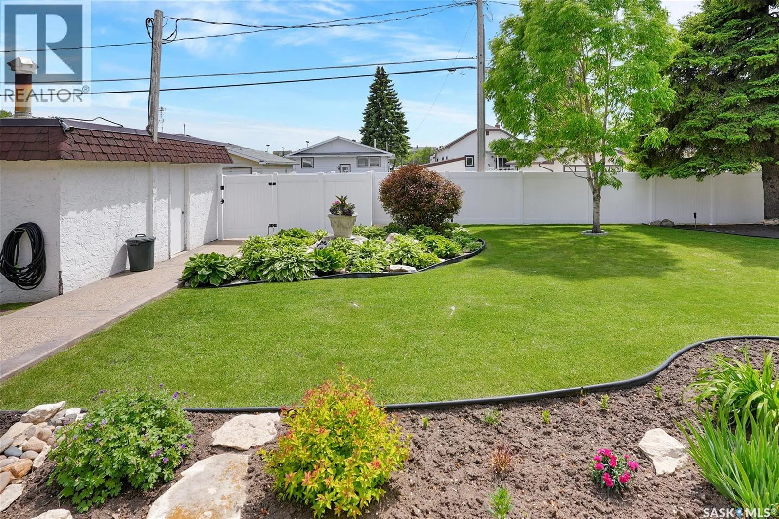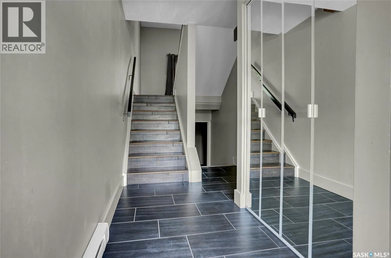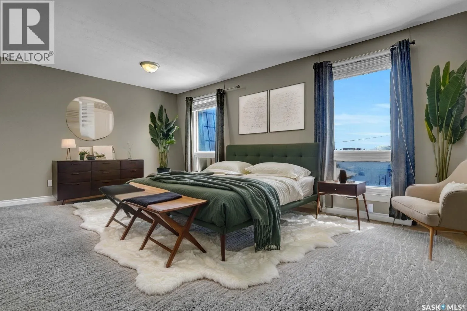 Are you seeking a unique property in the heart of Moose Jaw's vibrant downtown? Look no further! These exclusive condos are a rare find on the market and boast the only heated outdoor pool in Moose Jaw. Imagine inviting friends over for a poolside gathering or indulging in a serene afternoon dip on your own. This fabulous 2 bedrooms, 1.5 bathrooms unit is designed in a charming townhouse style w/4 finished floors, sure to captivate anyone seeking a stylish living space. Invited by the Foyer w/access to the heated att. single garage, you are led to the spacious living room w/hardwood floor, features sliding doors opening to a private covered deck w/natural gas bbq hook up & an open patio overlooking a lush courtyard teeming w/trees/perennials. This oasis opens into the outdoor heated pool! Also the entire complex has new PVC fencing. The dining room, overlooking the living room, has a built in China cabinet & the kitchen is updated w/quartz countertop, maple cabinetry w/large windows filling the room with light. This floor is complete w/a 2pc. bath. There are 2 Bedrooms & each have beautiful windows. The Primary enjoys 2 closets. This floor is complete w/Laundry/4pc. Bath combo fully updated & even has extra storage. The lower level of this impressive condo features a versatile bonus room that is a flex room to use for your lifestyle. Additional features include a single attached insulated garage for secure parking and extra storage, as well as a front driveway that provides extra parking for you or your guests. With low condo fees of just $350/month, essential services such as snow removal & lawn care are covered, offering you convenience and peace of mind. This exceptional property combines comfort & style, making it a rare gem in Moose Jaw's downtown area. Donât miss the chance to make this condo your new home! CLICK ON THE MULTI MEDIA LINK FOR A FULL VISUAL TOUR and Call Today! * Some photos of Living, Dining & Primary Bedroom are virtually staged. (id:27476)