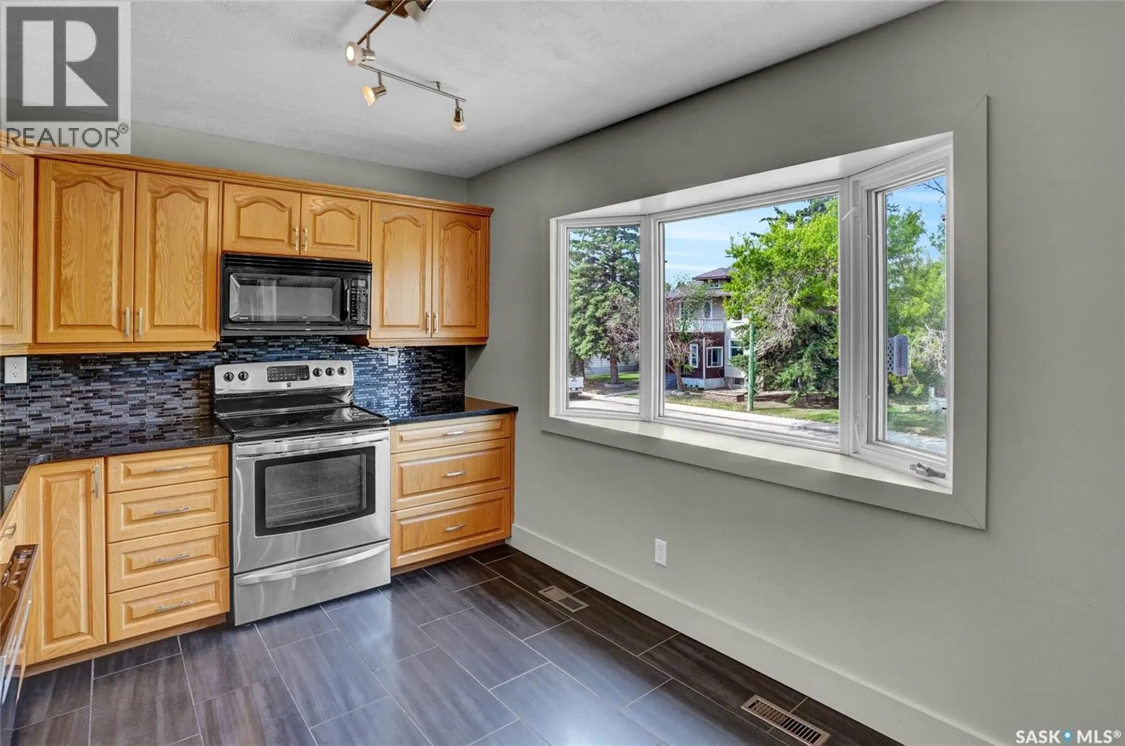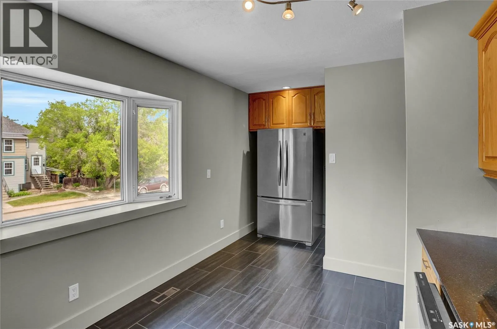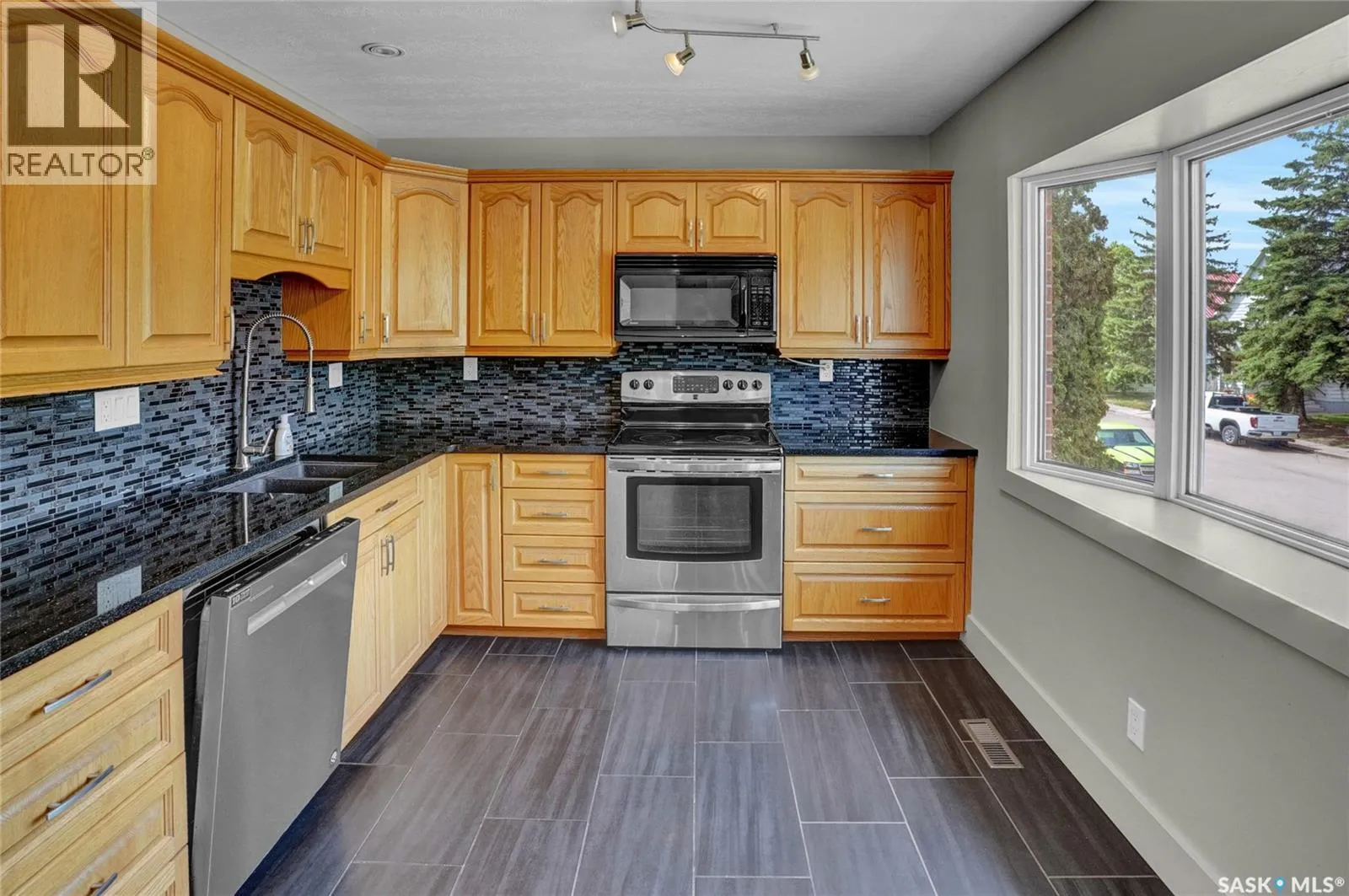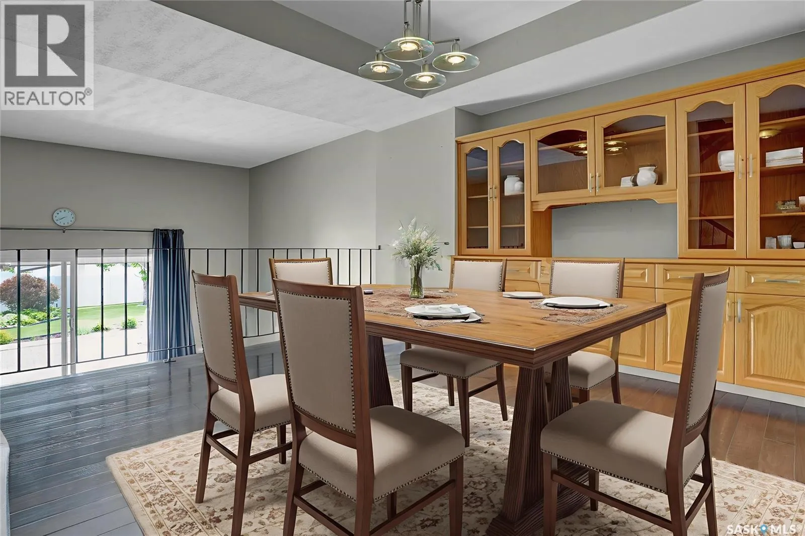 Are you seeking a unique property in the heart of Moose Jaw's vibrant downtown? Look no further! These exclusive condos are a rare find on the market and boast the only heated outdoor pool in Moose Jaw. Imagine inviting friends over for a poolside gathering or indulging in a serene afternoon dip on your own. This fabulous 2 bedrooms, 1.5 bathrooms unit is designed in a charming townhouse style w/4 finished floors, sure to captivate anyone seeking a stylish living space. Invited by the Foyer w/access to the heated att. single garage, you are led to the spacious living room w/hardwood floor, features sliding doors opening to a private covered deck w/natural gas bbq hook up & an open patio overlooking a lush courtyard teeming w/trees/perennials. This oasis opens into the outdoor heated pool! Also the entire complex has new PVC fencing. The dining room, overlooking the living room, has a built in China cabinet & the kitchen is updated w/quartz countertop, maple cabinetry w/large windows filling the room with light. This floor is complete w/a 2pc. bath. There are 2 Bedrooms & each have beautiful windows. The Primary enjoys 2 closets. This floor is complete w/Laundry/4pc. Bath combo fully updated & even has extra storage. The lower level of this impressive condo features a versatile bonus room that is a flex room to use for your lifestyle. Additional features include a single attached insulated garage for secure parking and extra storage, as well as a front driveway that provides extra parking for you or your guests. With low condo fees of just $350/month, essential services such as snow removal & lawn care are covered, offering you convenience and peace of mind. This exceptional property combines comfort & style, making it a rare gem in Moose Jaw's downtown area. Donât miss the chance to make this condo your new home! CLICK ON THE MULTI MEDIA LINK FOR A FULL VISUAL TOUR and Call Today! * Some photos of Living, Dining & Primary Bedroom are virtually staged. (id:27476)