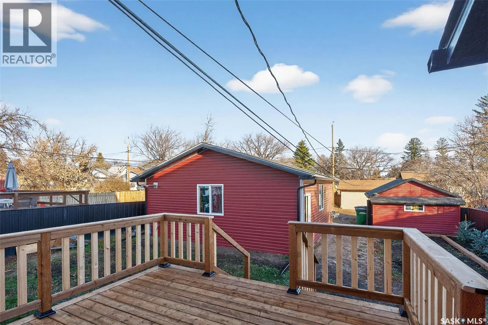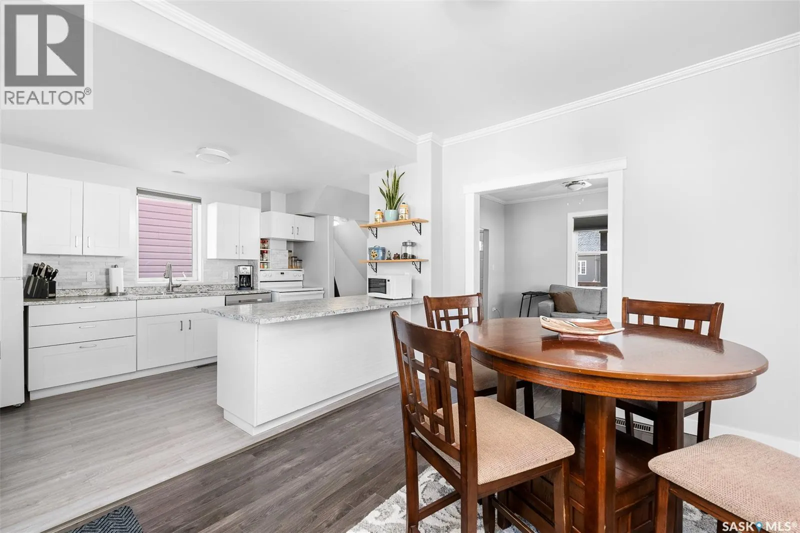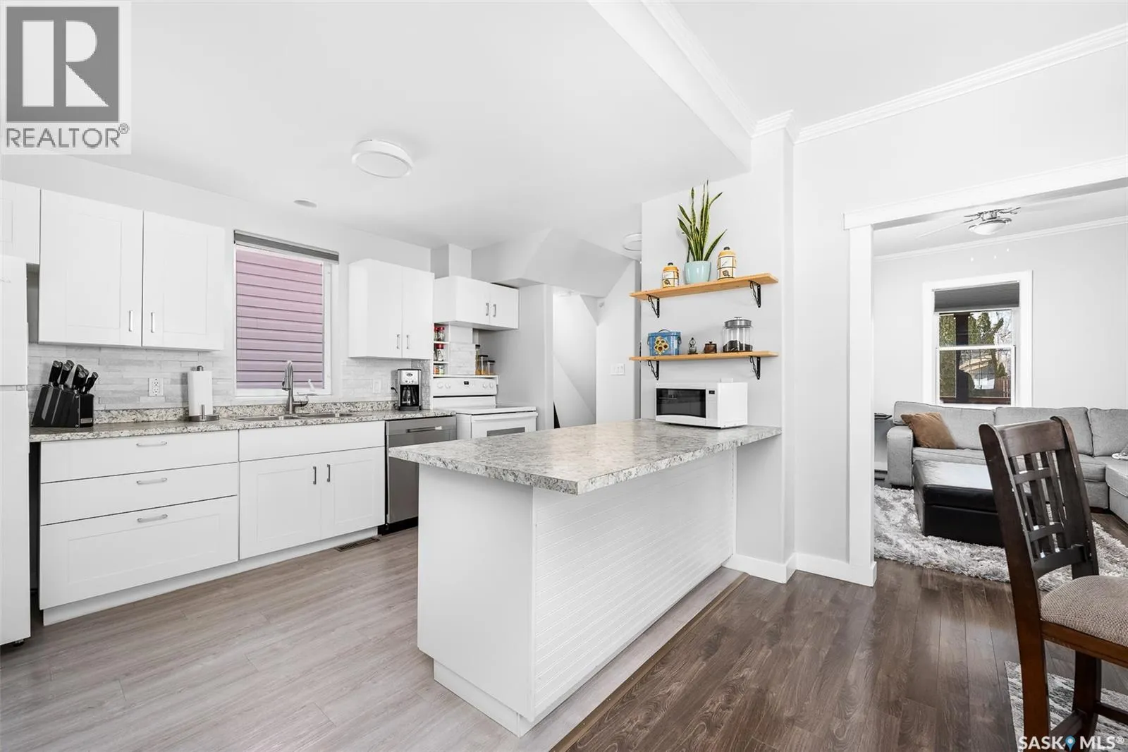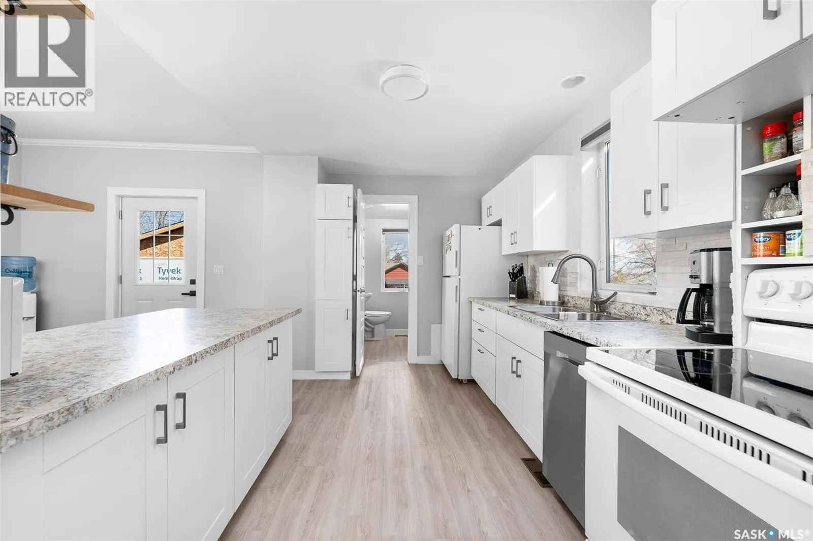 Are you looking for a beautiful character home in the avenues? This could be your dream home! This beautifully updated 2 story home boasts over 1,100 sq.ft. as well as a brand new heated 24'x24' garage and a workshop! With some of the best curb appeal on the block this home features a gorgeous new front deck perfect for that morning coffee. Coming inside you are greeted by a bright and spacious living room featuring engineered hardwood that flows into the dining space! The modern kitchen features heated floors, a large eat-up island and soft close drawers! At the back of the main floor is a cute 2 piece bath that also features a heated floor! Heading upstairs we have 3 good sized bedrooms all with good sized windows. As well as a updated 4 piece bathroom! In the basement we have a rubber floor throughout giving you a large storage area and laundry space. Outside we find a BRAND NEW insulated and heated garage with 2 8'x10' overhead doors, as well as a separate 12'x20' workshop! The yard is fenced and has parking space behind the garage. Some updates over the last couple years: New Furnace '22, New Hot Water on Demand '23, New Air Conditioner '23, new fridge, newer sewer and water lines in '24, plus the new garage! This beautiful character home is move-in ready! Reach out today to book your showing! (id:27476)