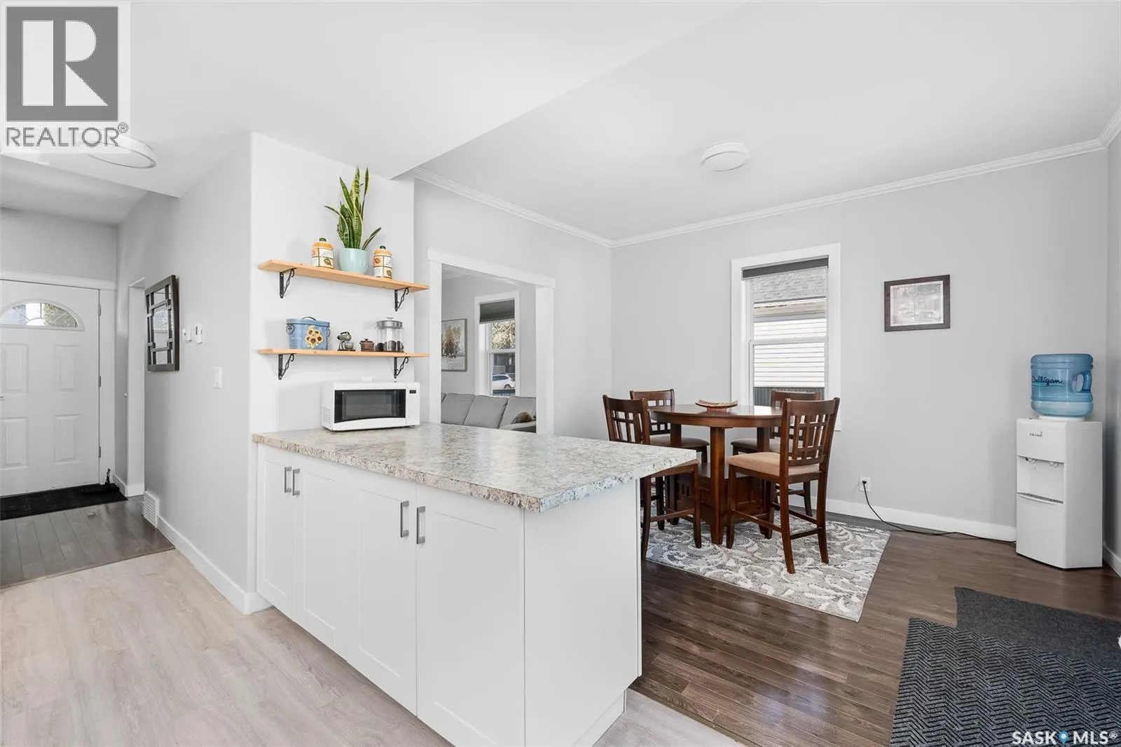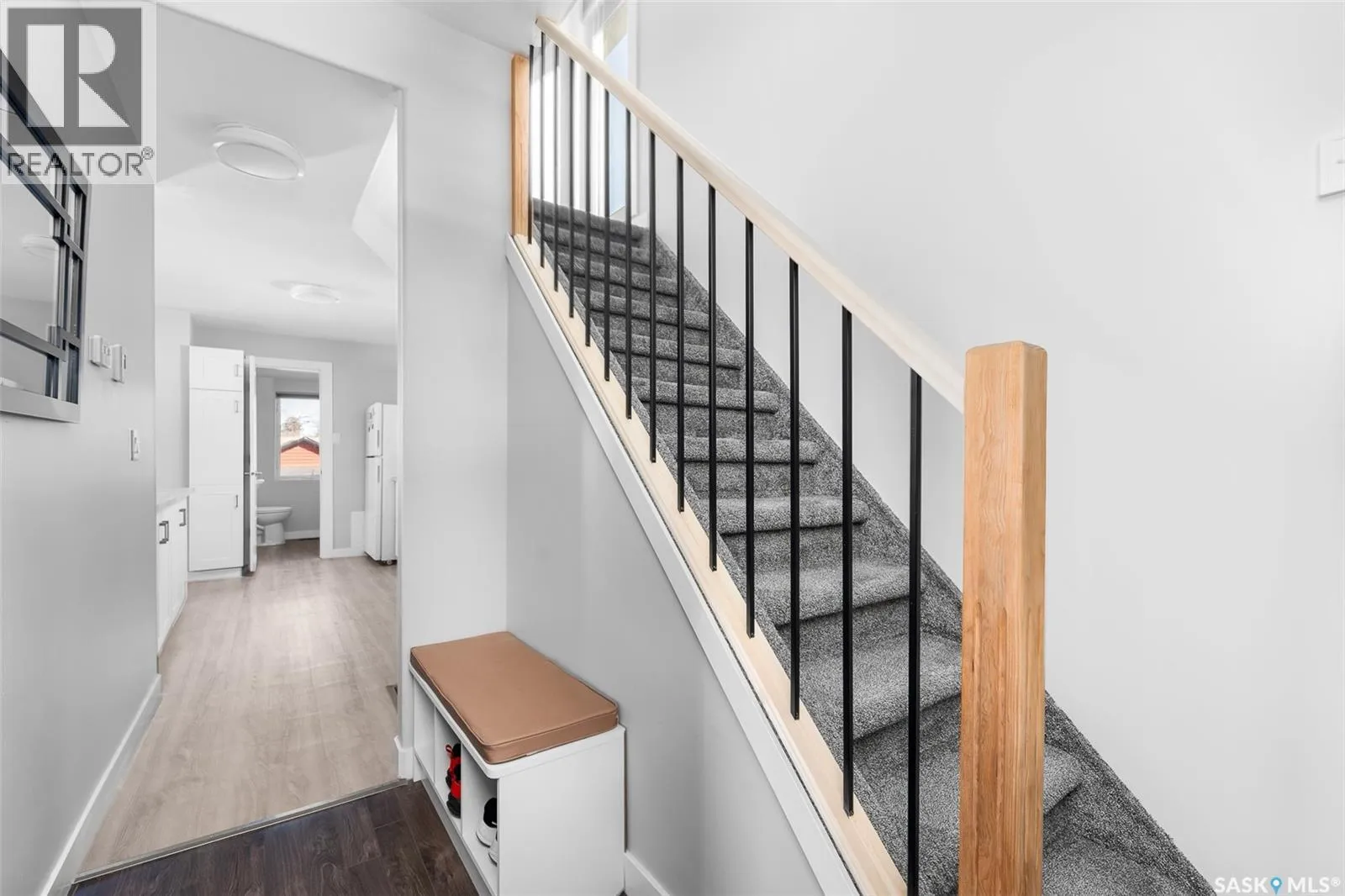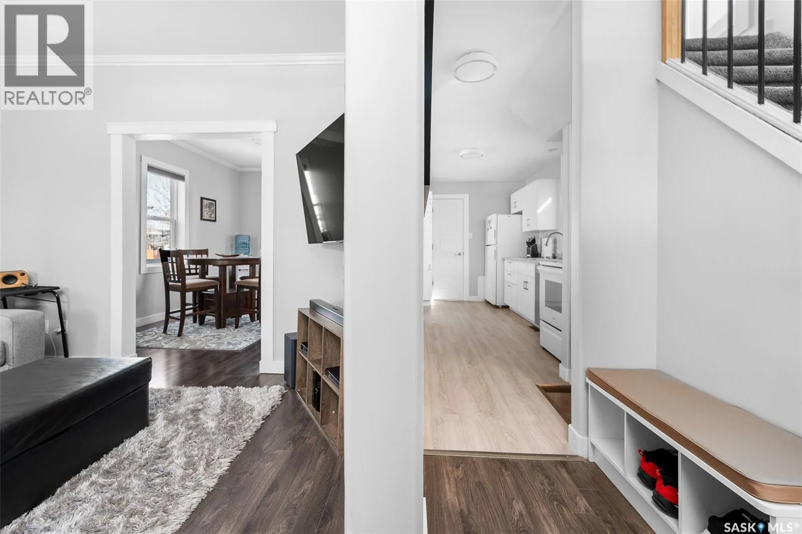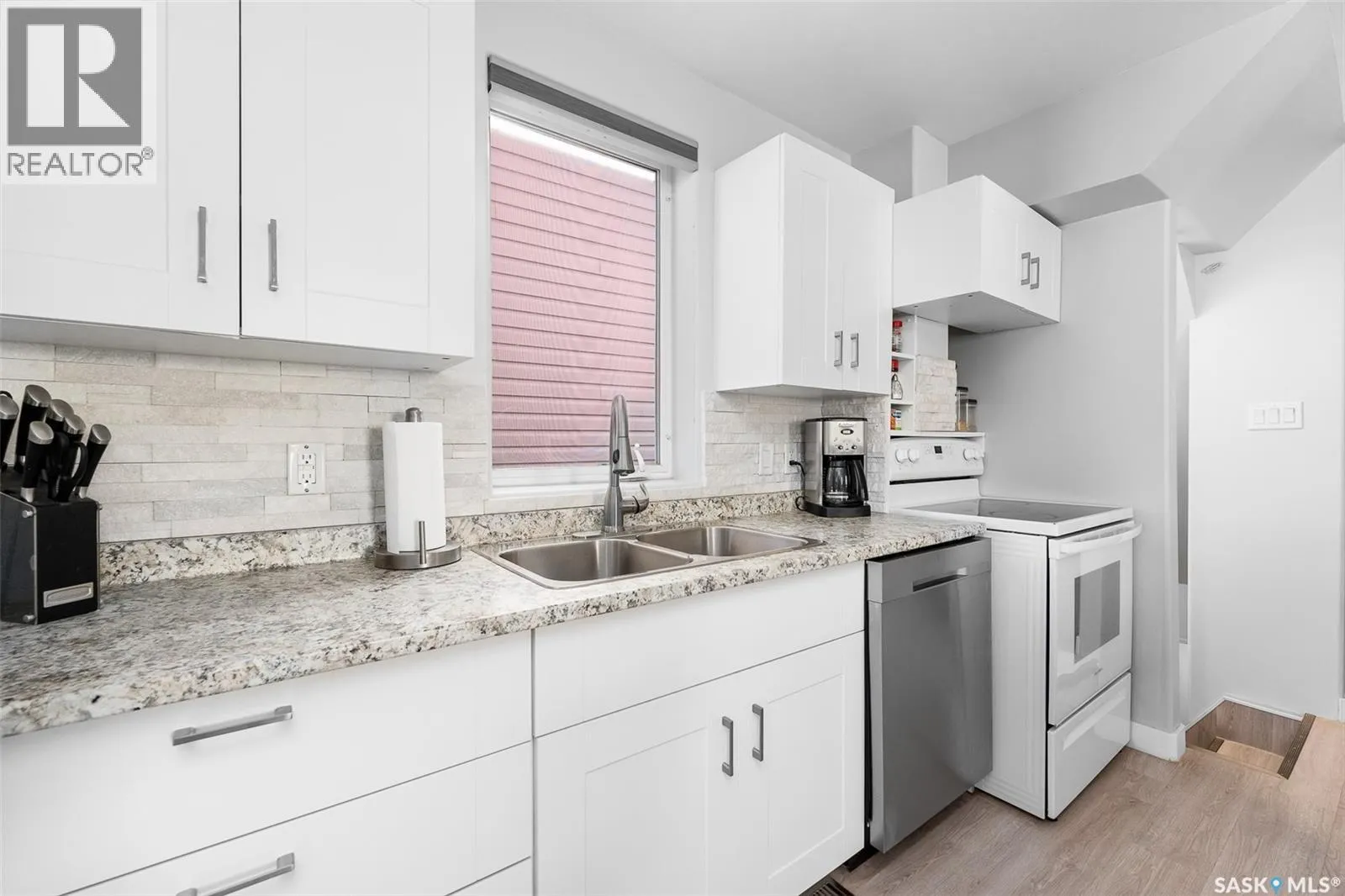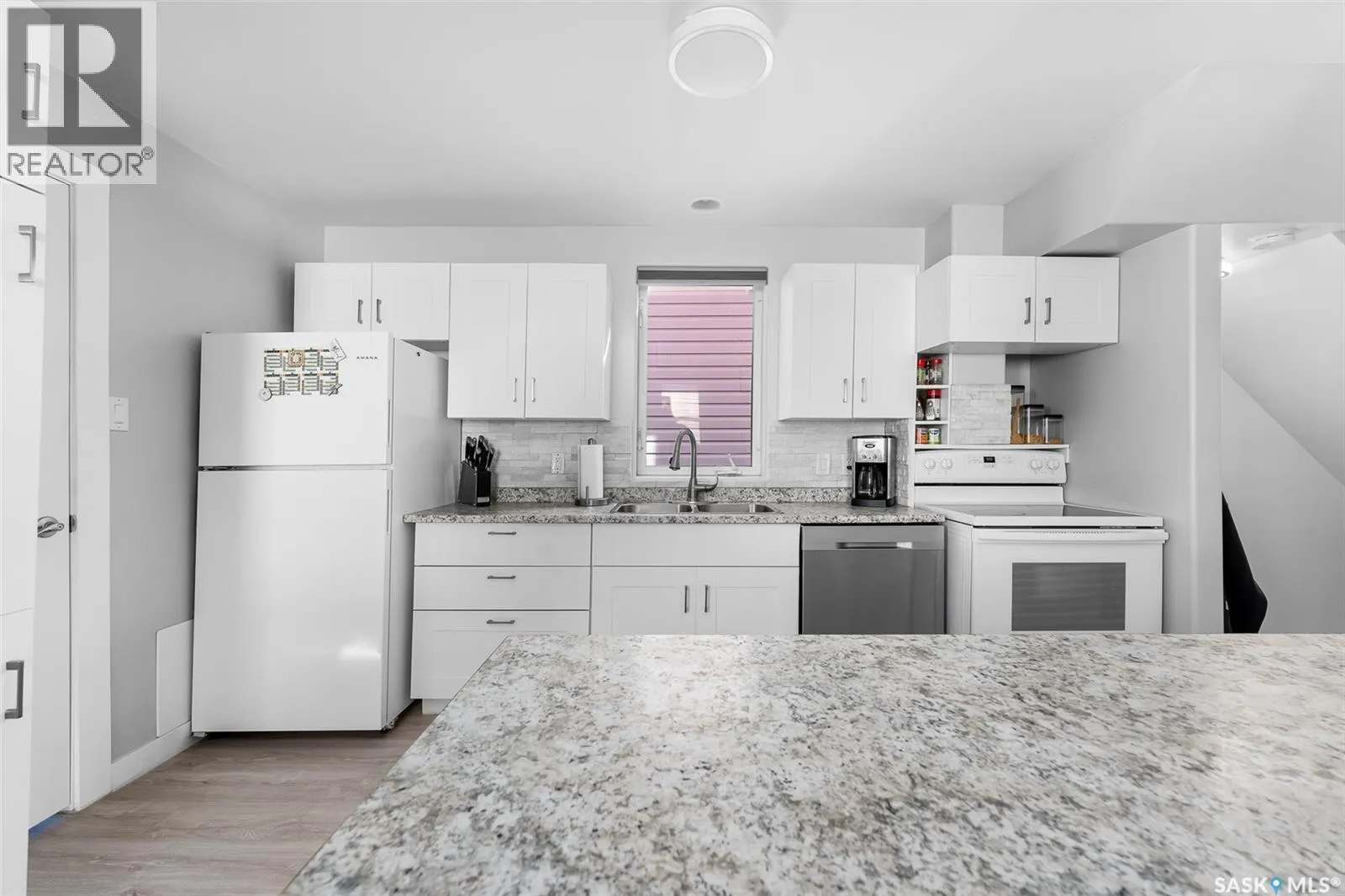 Are you looking for a beautiful character home in the avenues? This could be your dream home! This beautifully updated 2 story home boasts over 1,100 sq.ft. as well as a brand new heated 24'x24' garage and a workshop! With some of the best curb appeal on the block this home features a gorgeous new front deck perfect for that morning coffee. Coming inside you are greeted by a bright and spacious living room featuring engineered hardwood that flows into the dining space! The modern kitchen features heated floors, a large eat-up island and soft close drawers! At the back of the main floor is a cute 2 piece bath that also features a heated floor! Heading upstairs we have 3 good sized bedrooms all with good sized windows. As well as a updated 4 piece bathroom! In the basement we have a rubber floor throughout giving you a large storage area and laundry space. Outside we find a BRAND NEW insulated and heated garage with 2 8'x10' overhead doors, as well as a separate 12'x20' workshop! The yard is fenced and has parking space behind the garage. Some updates over the last couple years: New Furnace '22, New Hot Water on Demand '23, New Air Conditioner '23, new fridge, newer sewer and water lines in '24, plus the new garage! This beautiful character home is move-in ready! Reach out today to book your showing! (id:27476)