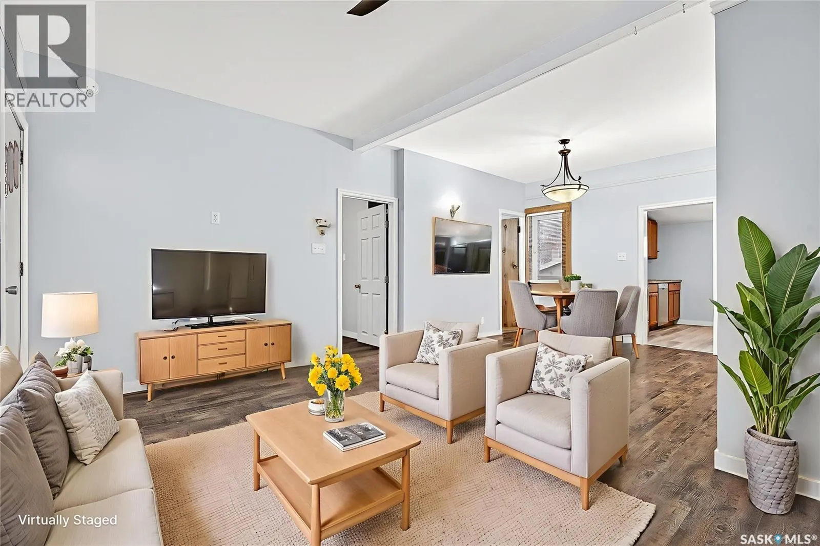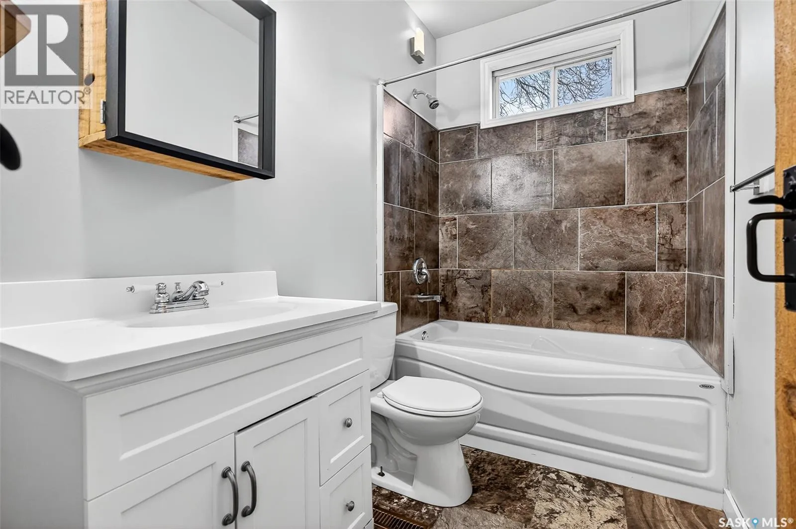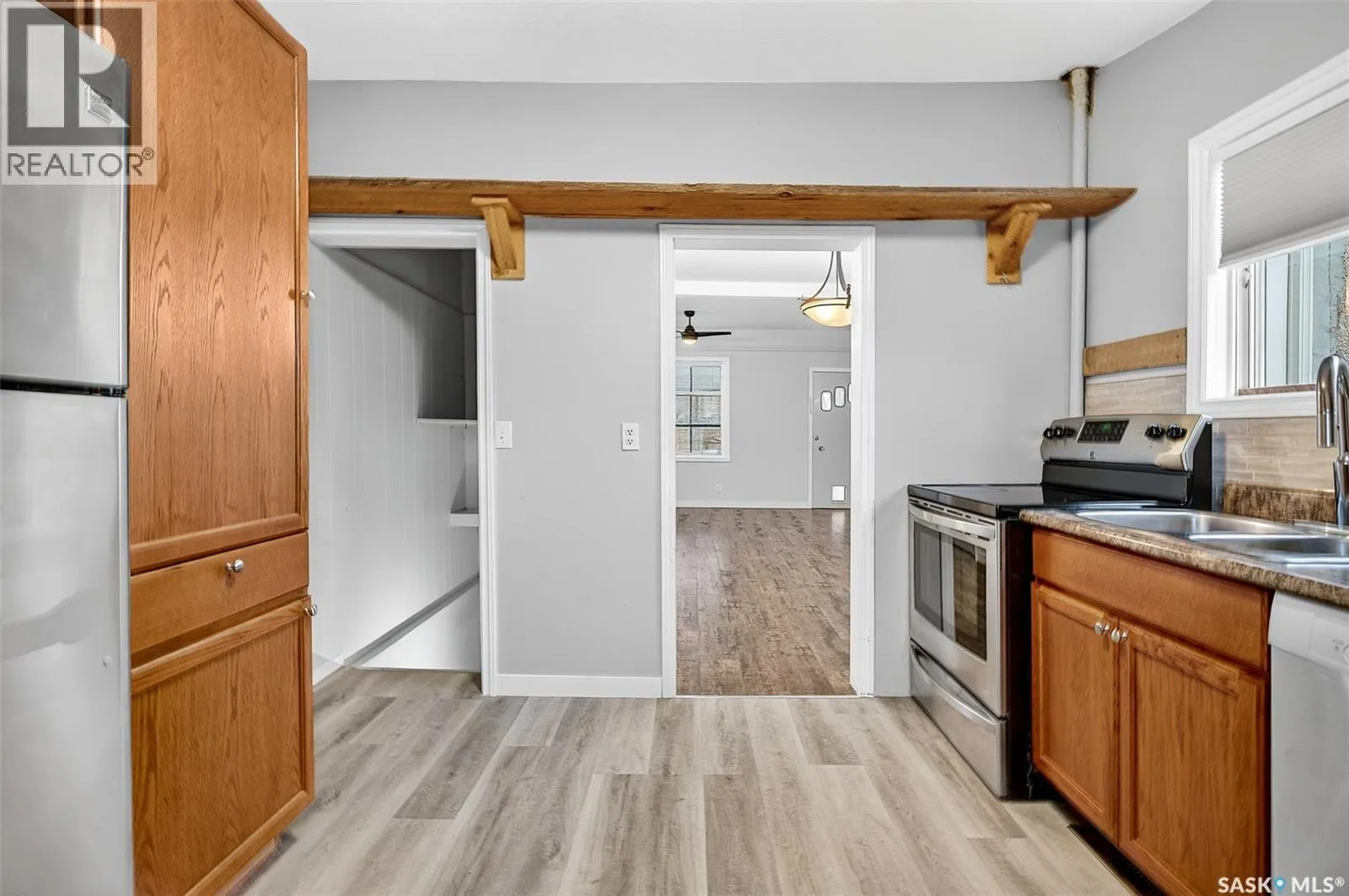Check out this excellent home! Perfect starter home! This 2 bed / 2 bath home has lots of updates and a large double garage! Sitting on a large 50' x 125' lot this home shows well as you arrive. Heading inside you are greeted by a timeless sunroom - the perfect spot for your morning coffee. Next we find the living and dining space boasting 9 foot ceilings! Heading back we find a galley style kitchen with a stainless steel appliance package - off the kitchen we find a deck with access to your patio and firepit. Back inside on the main floor we find one of our bedrooms complete with a walk-in closet and main floor laundry. Finishing off the main floor we find an updated 4 piece bathroom. Downstairs we have a small office space, a spacious bedroom, 2 piece bathroom and a large workshop space. Outside there is a detached 22' x 24' garage that has power, is insulated and is setup for a fireplace for heat. So many updates have been done to this home! Pride of ownership shows well! Quick possession is available! Reach out today to book your showing! (id:27476)