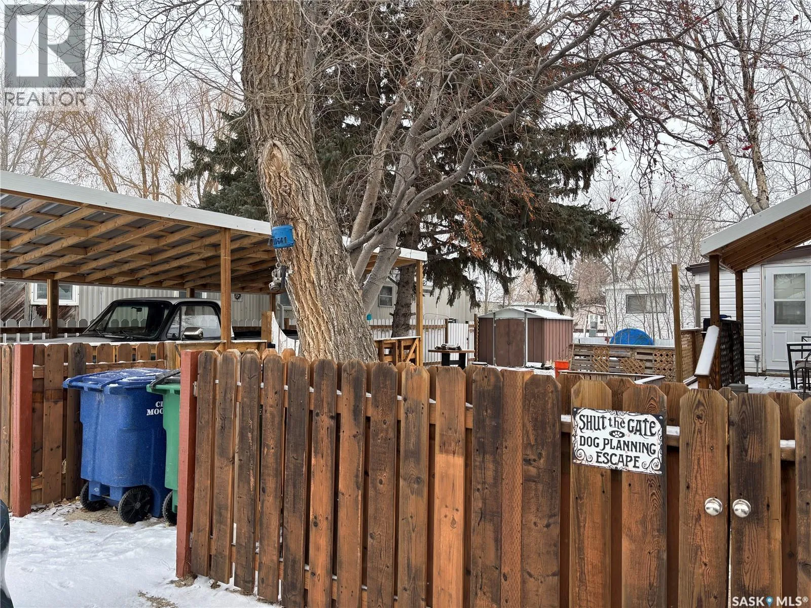 Cozy 2 bedroom mobile home in the Prairie Oasis Trailer Court. Most windows updated, siding, and some flooring and window air conditioner to stay. An exterior awning over the west facing window. Completely fenced yard with a carport and shed. Features a back entrance leading to a large mud room with laundry facilities. Monthly fee of $748.21 covers lot pad fees, taxes, garbage/recycling, water, sewer, park maintenance, and snow removal. Enjoy low-maintenance living in this welcoming community. (id:27476)