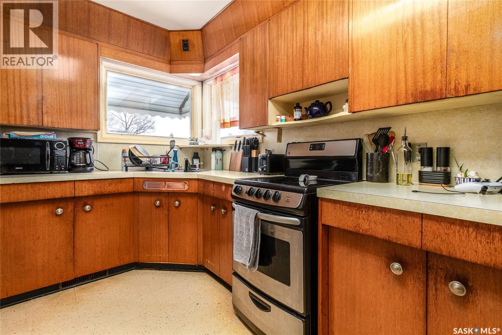Attention first-time buyers and investors! This home offers a fantastic opportunity with a basement kitchen and separate accessâperfect for added flexibility or potential income. Step in through the front door and youâre welcomed by a bright, south-facing living room. Down the hall are two spacious bedrooms and a 4-piece bathroom. The main-floor kitchen is well maintained, featuring classic oak cabinetry and a functional layout ideal for everyday family meals. Downstairs, youâll find one additional bedroom, a bathroom, laundry and utility area, plus a comfortable living room and kitchen space, creating a versatile lower level with great potential. This one wonât last longâcall your agent to book a showing today! (id:27476)