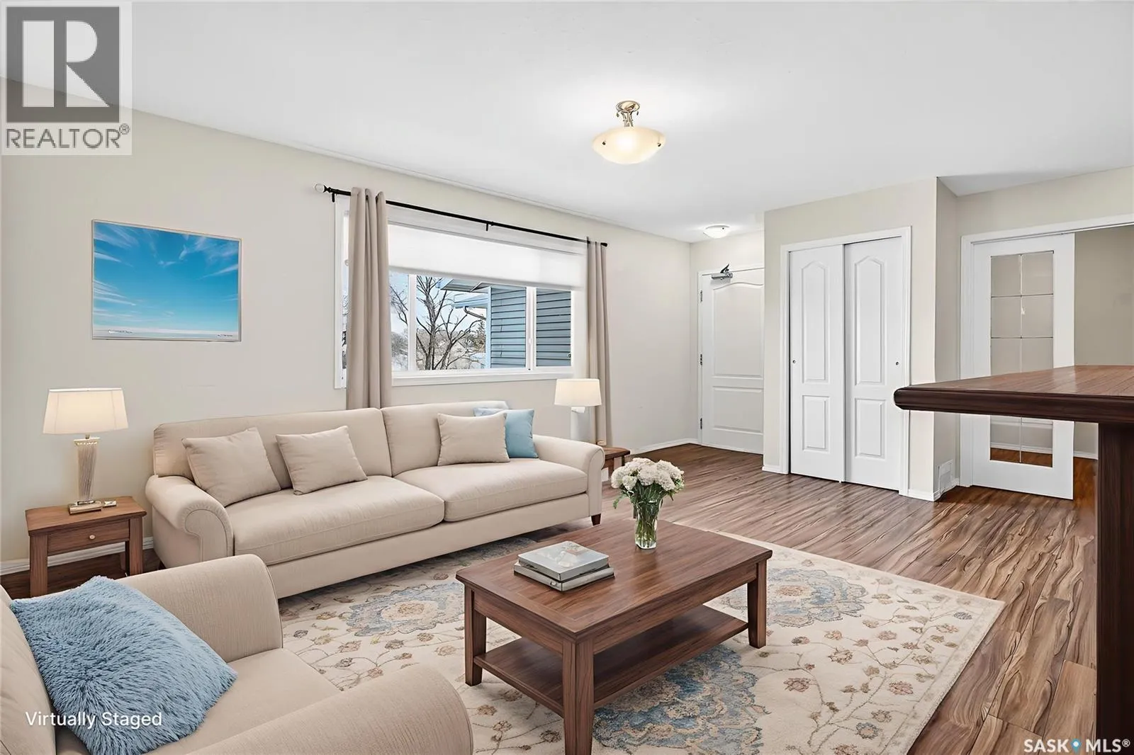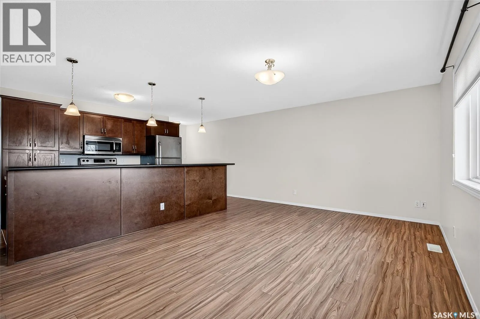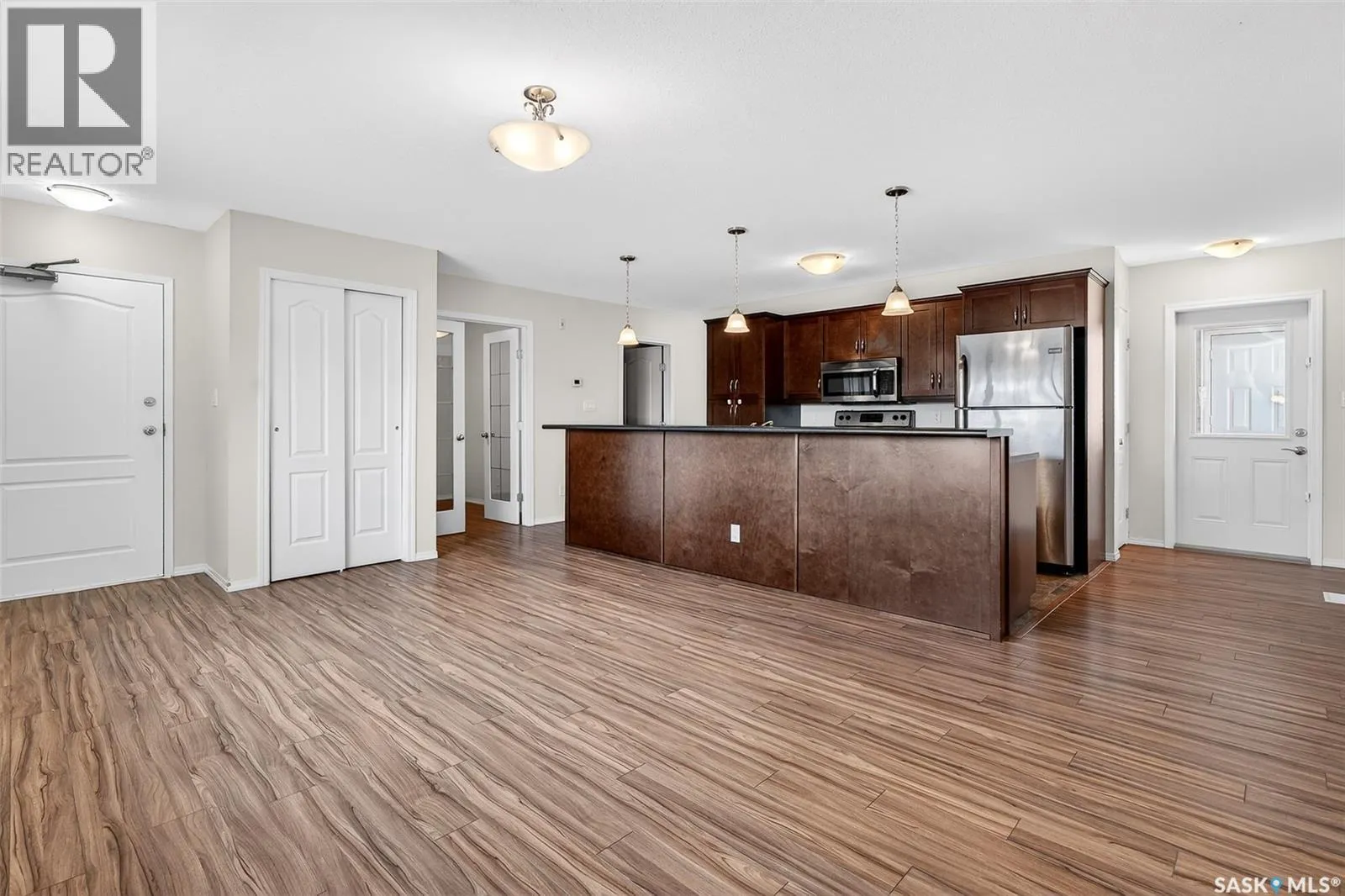 Penthouse living awaits at Plaxton Ridge Condos in this sunny 2-bedroom plus a den unit. With 826 sq.ft. of living space, this top-floor gem boasts a bright and open layout. The stylish kitchen features sleek dark cabinets, stainless steel appliances, and a spacious eating bar. French doors lead to a cozy office space, while the unit also includes convenient in-unit laundry and a charming northwest-facing deck. Enjoy peace of mind with the Intercom Security System for added security. Monthly condo fees of $306 include a reserve fund for building maintenance, lawn care, and more. Don't miss out on this vacant unit - it's ready for its lucky new owner! (id:27476)