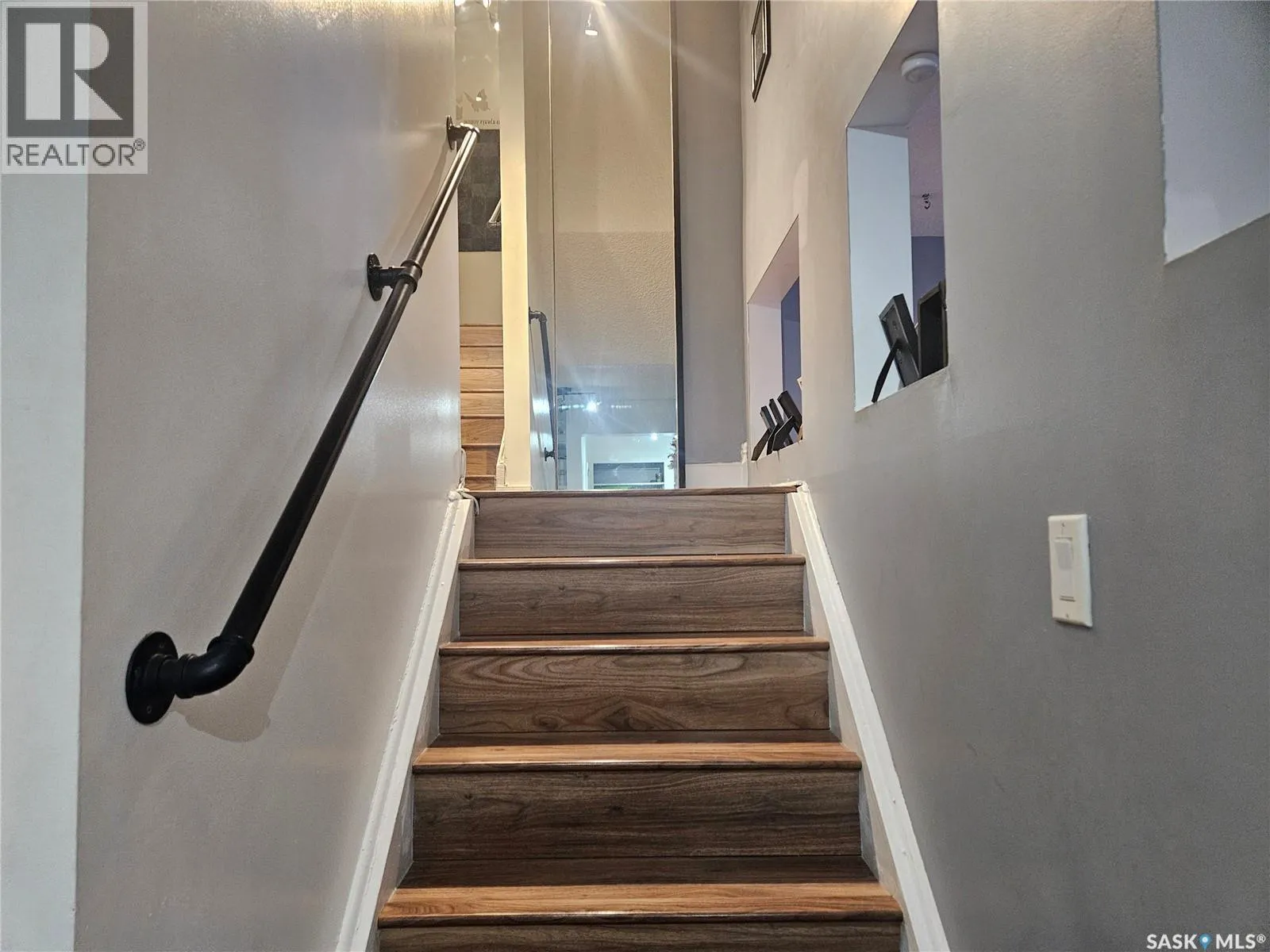 Great 2 bedroom townhouse condo in the desirable area of Palliser Heights. Front entry has a built-in-bench which then flows into the kitchen and dining room. Kitchen has ample cupboards, double sink, reverse osmosis system and a large pantry, dining area and living room benefit from large windows facing the south for lots of natural light! Upstairs you will find 2 large south facing bedrooms as well as a stunning bathroom with a corner jet tub and separate shower. Basement is open for development with washer and dryer. The private backyard boasts vinyl fence, grass and a patio spot perfect for family bbq's! Across the street you will find an outdoor rink, spray park, playground, ball diamond, soccer field and close to a convenience store, schools and bus routes. This condo in this area is a wonderful place to call home. (id:27476)