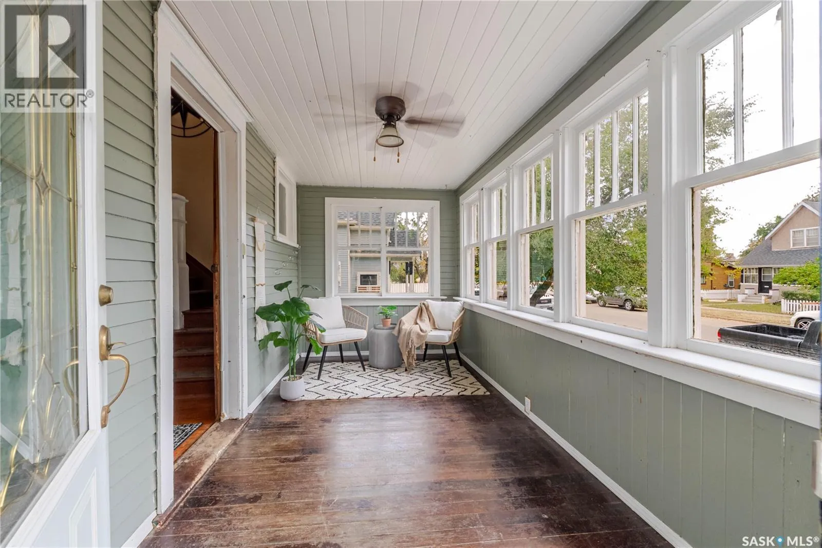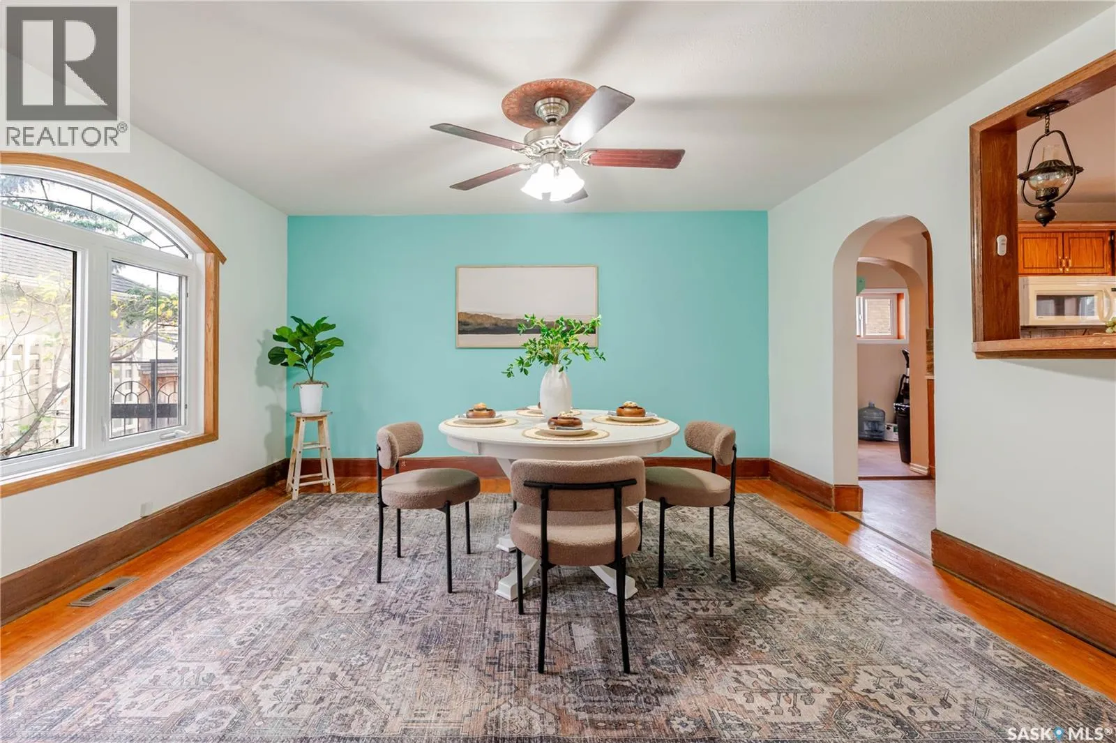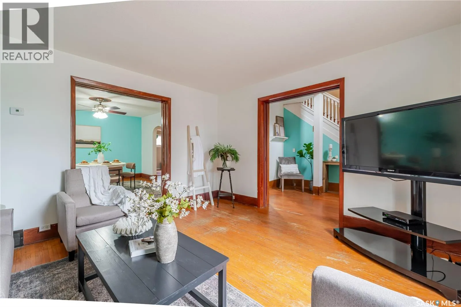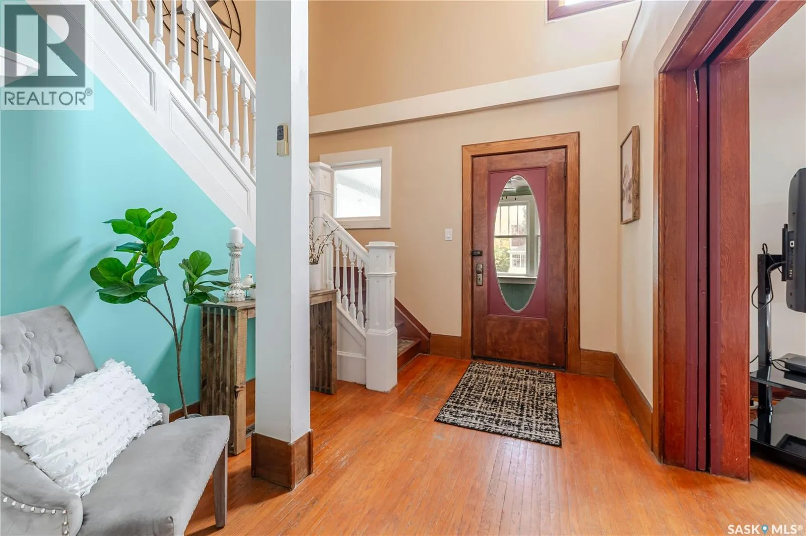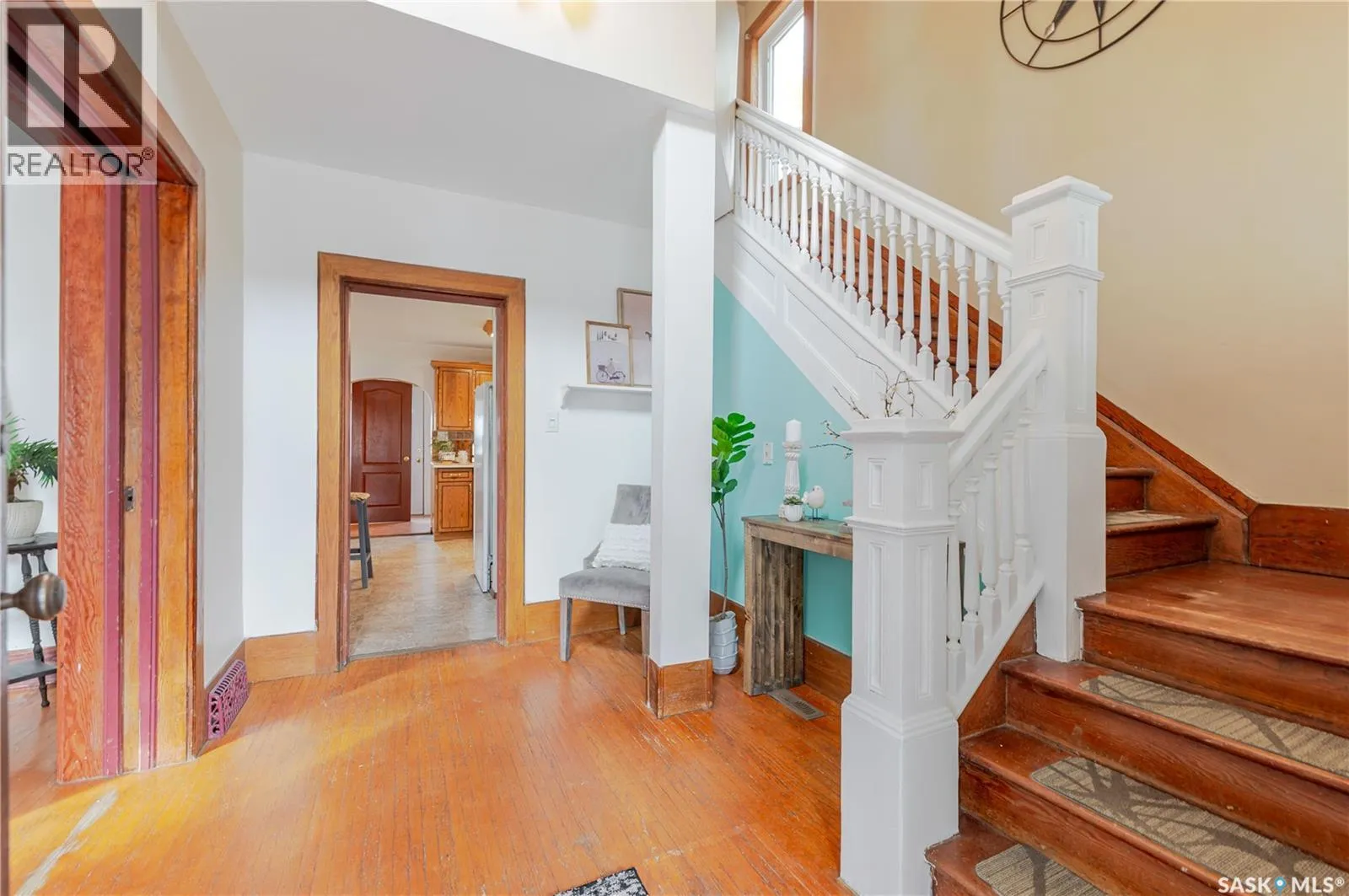 This character home is nestled on a quiet, tree-lined street near schools and downtown Moose Jaw, offering a timeless blend of charm and practical living. Throughout the home, original hardwood floors, a striking Victorian staircase, and vaulted ceilings create a warm and inviting atmosphere. The bright living and dining rooms are enhanced by large picture windows, bringing in ample natural light. The kitchen features generous counter space with a convenient breakfast bar, making it ideal for casual meals and entertaining. Additional main-floor highlights include a convenient laundry area, a 2-piece powder room, and an enclosed front veranda that adds to the homeâs welcoming appeal. Outside, the spacious backyard is perfect for relaxation or entertaining guests. It boasts a gazebo, a fire pit, and a dedicated garden space for those who enjoy outdoor activities or gardening. Upstairs, youâll find three comfortable bedrooms, a full bathroom, and a versatile landing area that can be used as a home office or a cozy reading nook. The basement offers extra living space with a family room and another 2-piece bathroom. Completing the property is a double detached garage with alley access and plumbing roughed in for in-floor heat, providing both convenience and comfort Offering a rare combination of character and convenience, this home is ready for you to make it your own. Book your showing today! (id:27476)
