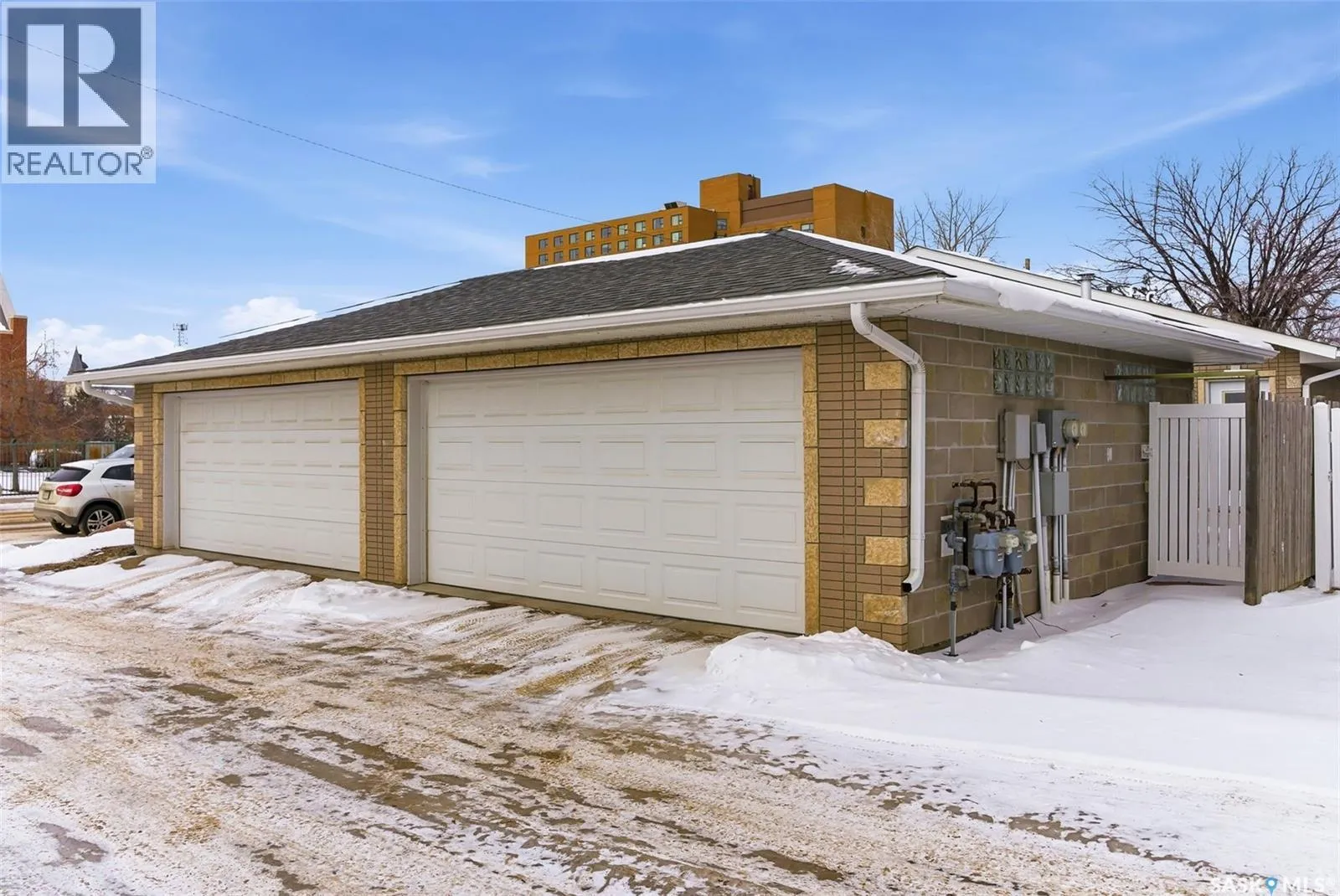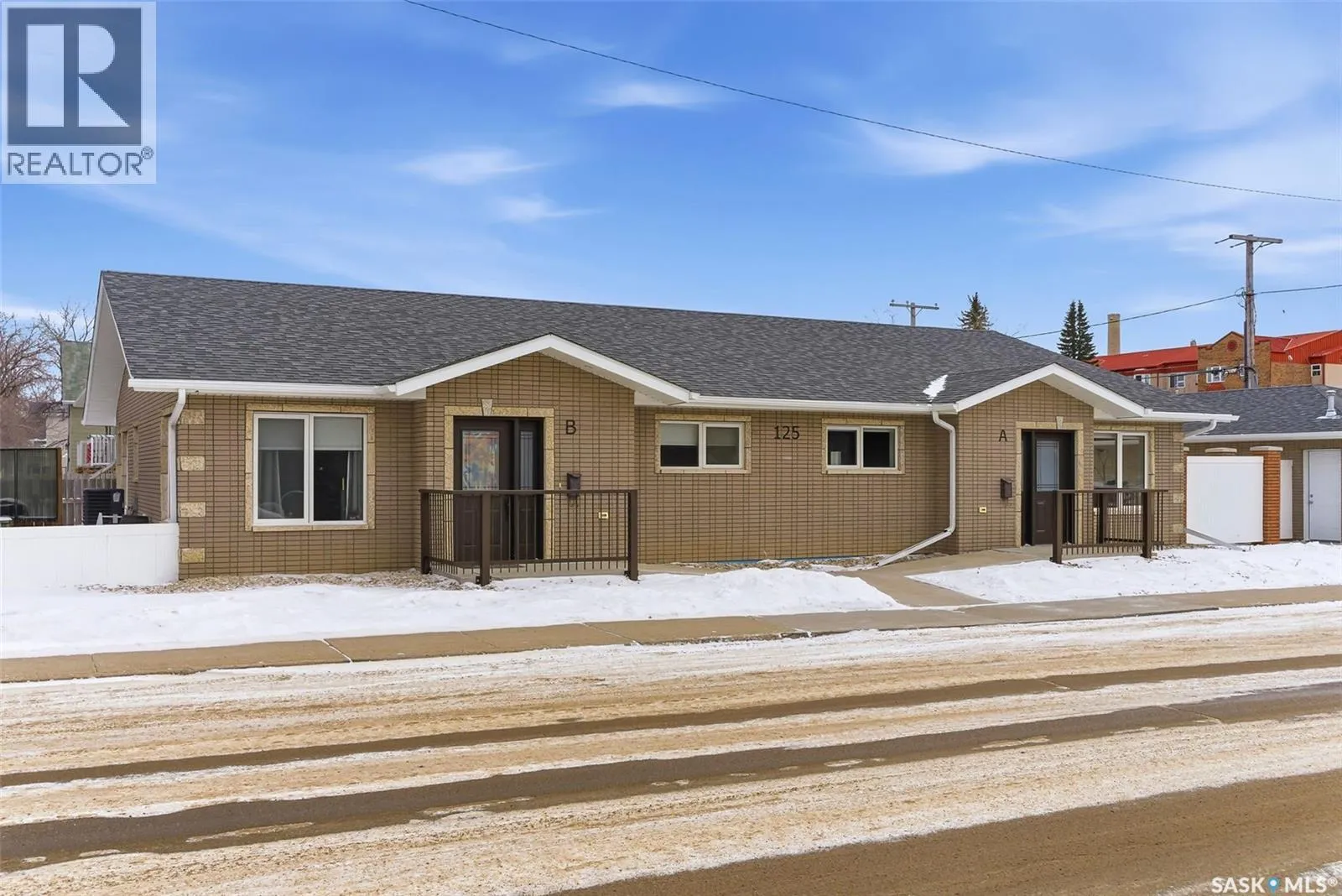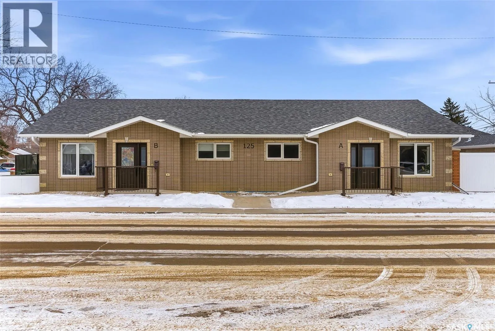 Truly one of a kind, this custom-built, all-brick, bungalow-style duplex offers 2,460 sq. ft. total of single-level, open-concept living and is fully wheelchair accessible to code. The bright living room features large windows with window treatments throughout. A functional open-concept kitchen with modern white cabinetry and ample storage flows seamlessly into the dining area, with garden doors leading to a private deck or patio. Each side offers two generous bedrooms, including a primary bedroom with a walk-in closet and 2-piece ensuite. The main bathroom features a walk-in shower for comfort and accessibility. A dedicated laundry room provides additional storage. Both units include their own double heated garage. The fully brick exterior on both the home and garages ensures maintenance-free living. The fenced, xeriscaped yard features interlocking brick patios, ideal for private outdoor entertaining. An excellent low-maintenance investment property with strong tenants in place, or an ideal opportunity to live in one side while renting the other. Prime location within walking distance to Crescent Park and Main Street. No expense was spared. (id:27476)