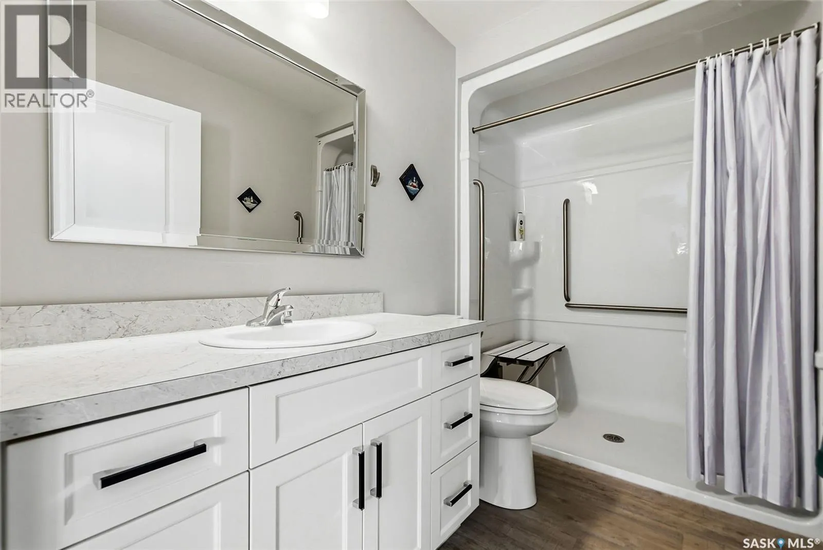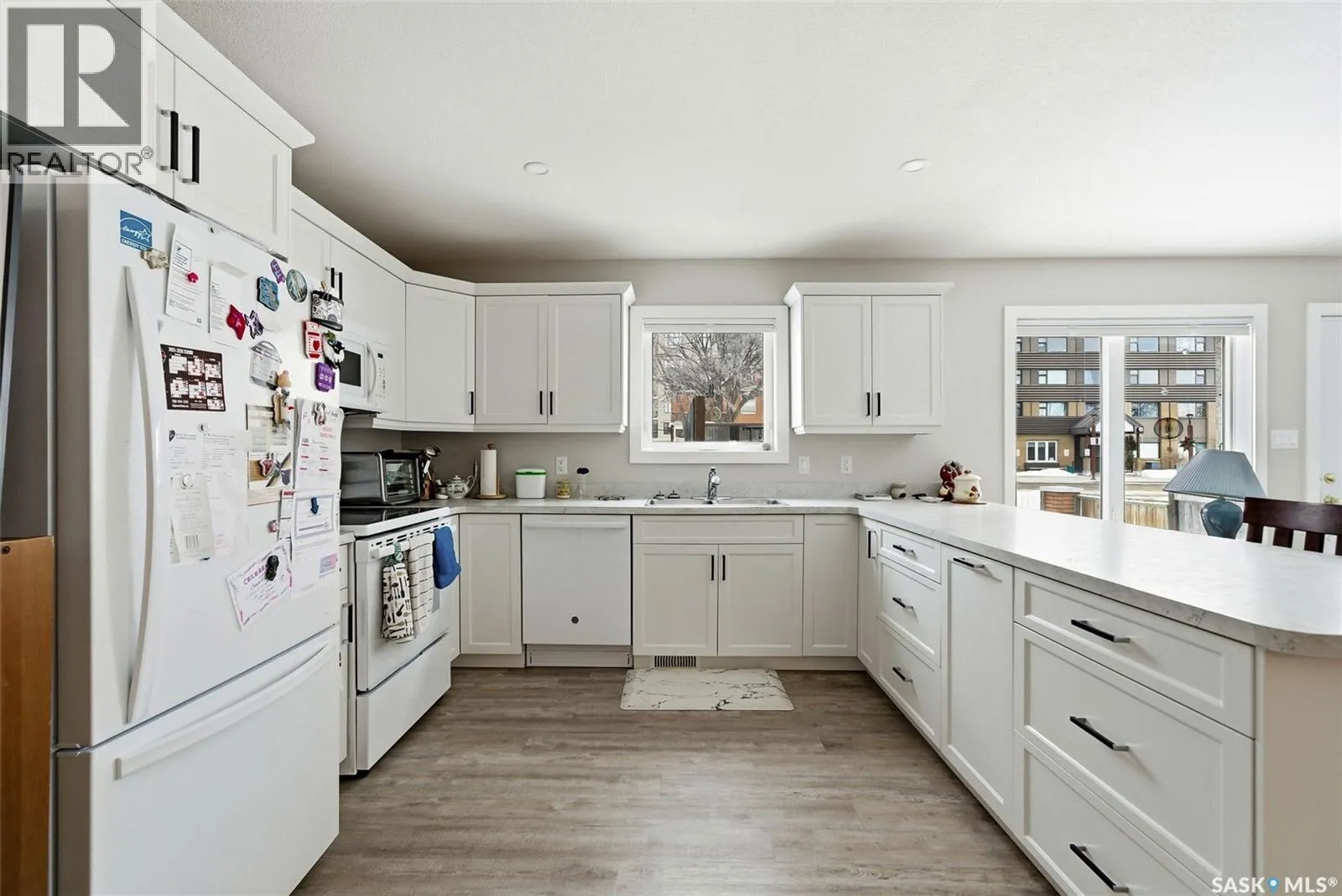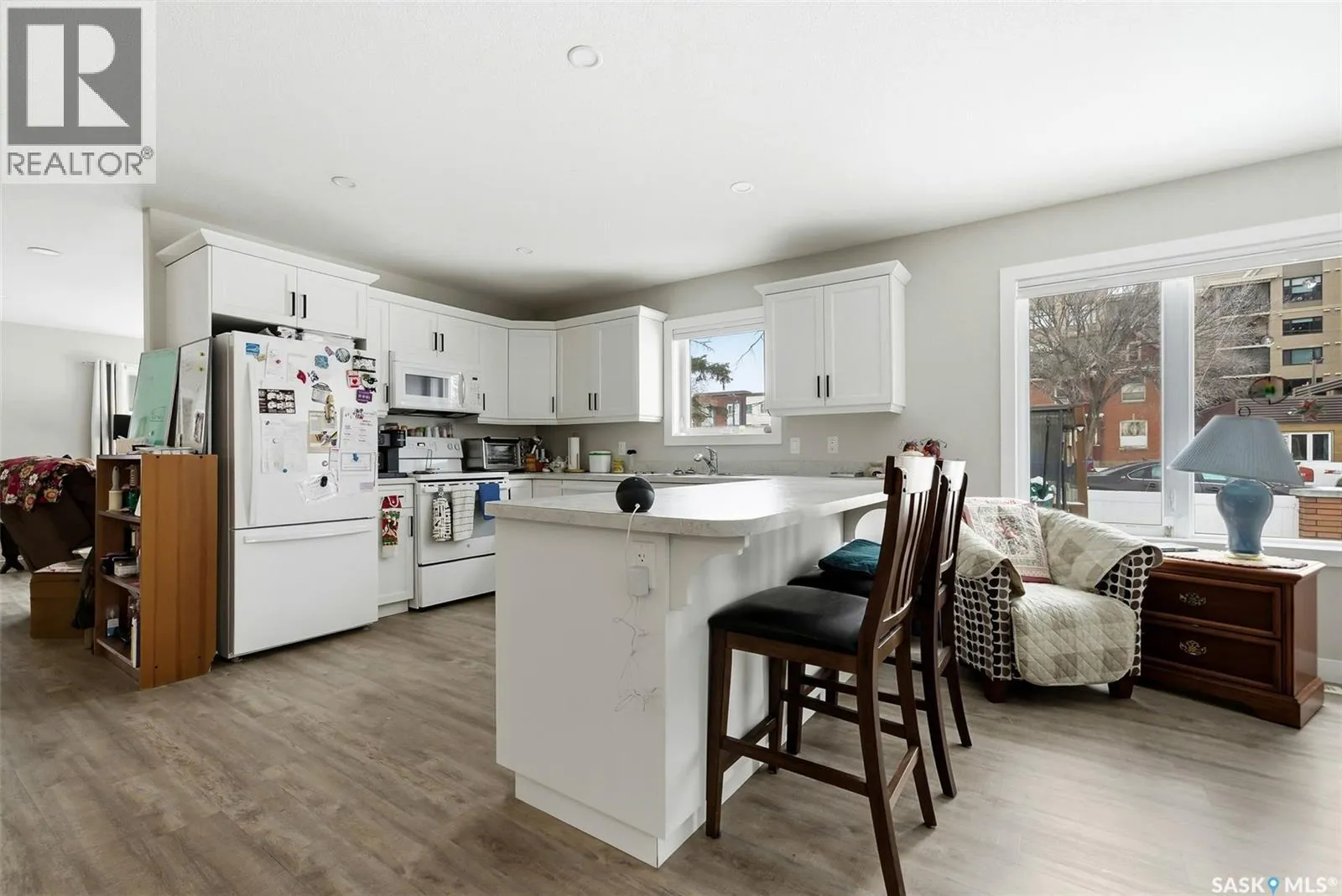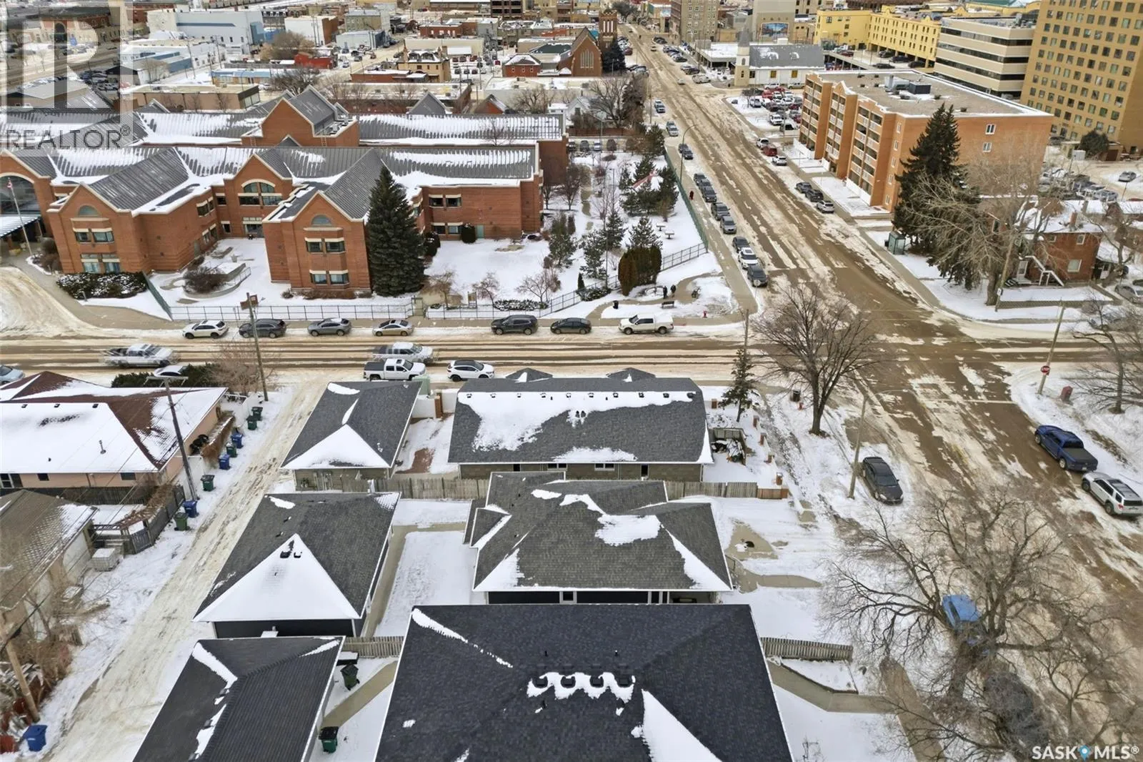 Truly one of a kind, this custom-built, all-brick, bungalow-style duplex offers 2,460 sq. ft. total of single-level, open-concept living and is fully wheelchair accessible to code. The bright living room features large windows with window treatments throughout. A functional open-concept kitchen with modern white cabinetry and ample storage flows seamlessly into the dining area, with garden doors leading to a private deck or patio. Each side offers two generous bedrooms, including a primary bedroom with a walk-in closet and 2-piece ensuite. The main bathroom features a walk-in shower for comfort and accessibility. A dedicated laundry room provides additional storage. Both units include their own double heated garage. The fully brick exterior on both the home and garages ensures maintenance-free living. The fenced, xeriscaped yard features interlocking brick patios, ideal for private outdoor entertaining. An excellent low-maintenance investment property with strong tenants in place, or an ideal opportunity to live in one side while renting the other. Prime location within walking distance to Crescent Park and Main Street. No expense was spared. (id:27476)