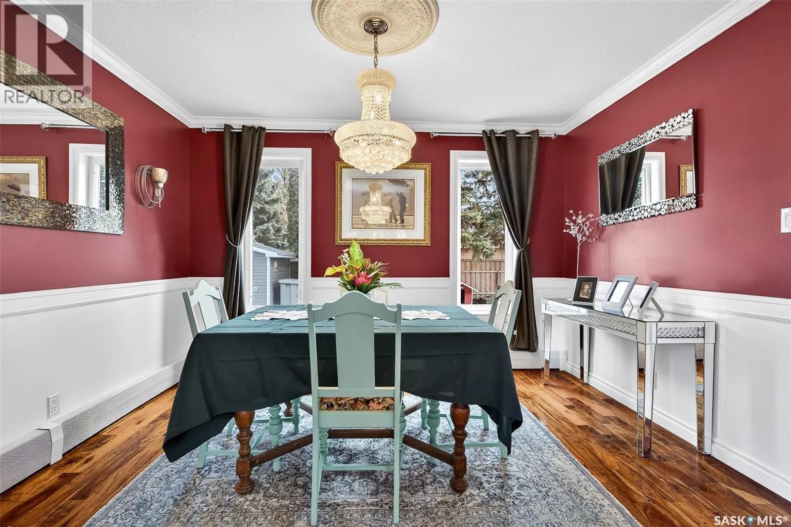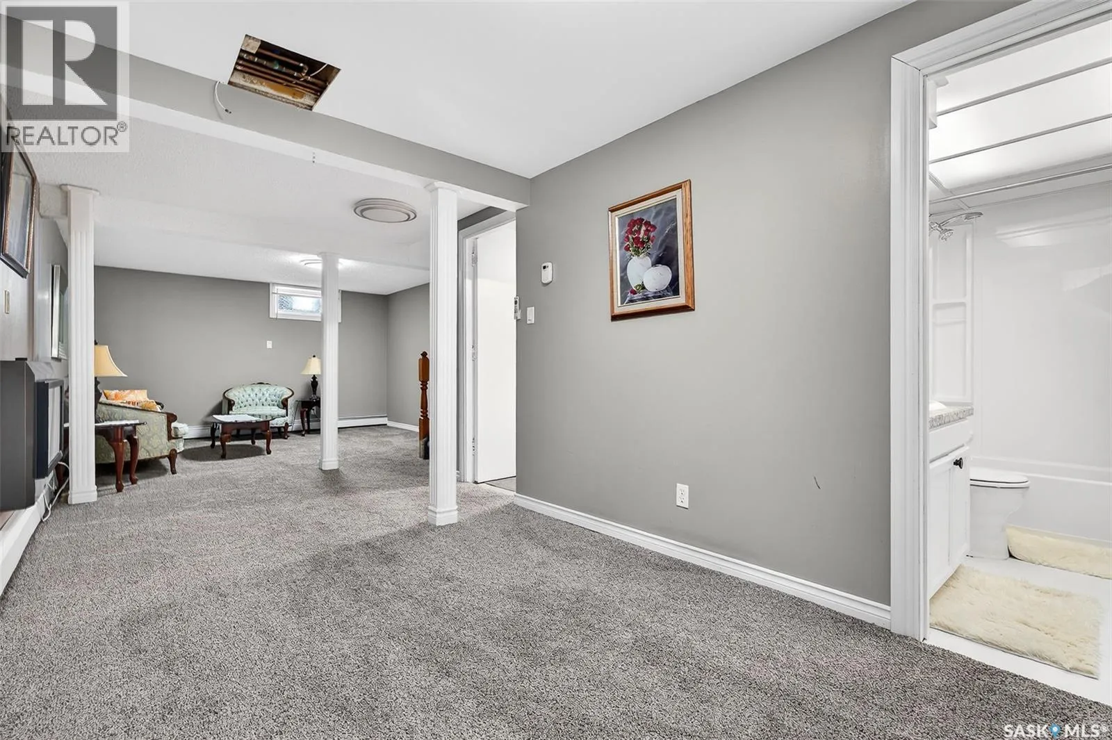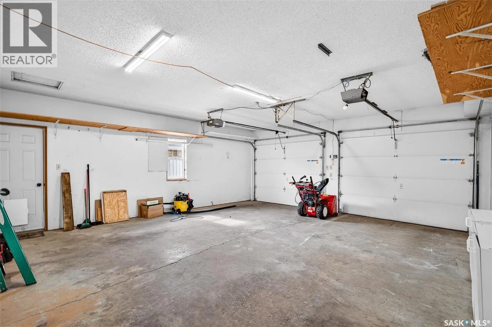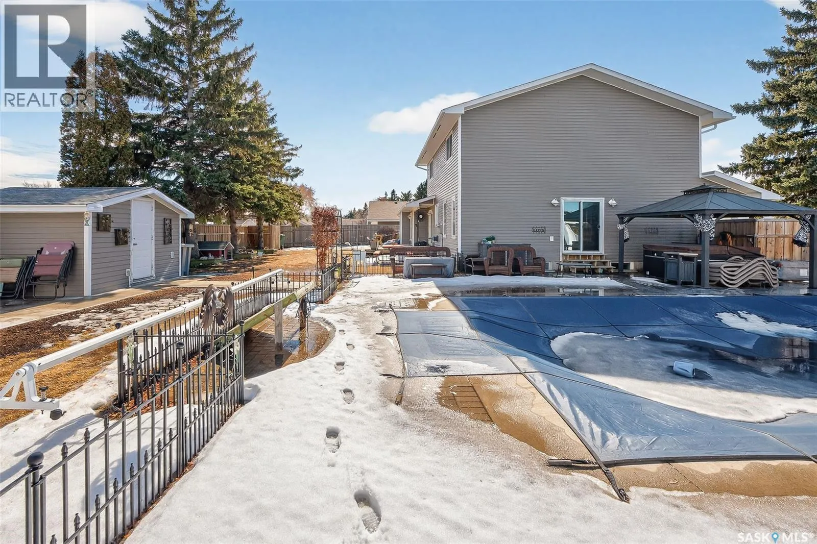 Welcome to 1345 Prince Crescent in the desirable Palliser area of Moose Jaw. This beautifully updated 2,280 sq ft two-storey home offers exceptional space and functionality for family living. The main floor features a bright open foyer with office space, a spacious living room, a formal dining area perfect for entertaining, and a large kitchen with abundant cabinetry and counter space, flowing into a comfortable Great Room ideal for relaxing. There is also convenient access to the double attached garage, along with a 3-piece bathroom off the entry. The upper level includes four bedrooms and a full 4-piece bathroom, highlighted by a generous primary bedroom with an updated 3-piece ensuite. The fully developed lower level provides additional living space with a large family room, an extra bedroom or office, a full 4-piece bathroom, and a spacious laundry room with plenty of storage. Situated on a massive 13,628 sq ft lot, the backyard is a true private retreat designed for both relaxation and entertaining. Enjoy long summer days in the impressive 18' x 36' heated in-ground poolâperfect for everything from morning swims to hosting unforgettable gatheringsâoffering plenty of space for family and guests alike. As the evening cools, unwind in the inviting hot tub, ideal for soaking under the stars or starting your day with a peaceful morning coffee. The yard also features a 30' RV or motorhome parking pad with back alley access, along with multiple outbuildings including a workshop with a 40-amp panel. The exterior is fully landscaped with a low-maintenance zero-scaped front yard and rubber-paved driveway and walkways sets the curb appeal for this home. Recent updates include a new Combi boiler (on-demand hot water) in (2021), water softener (2024), and an expanded 36-inch front entry door. This move-in-ready home offers incredible value and must be seen to be fully appreciated. (id:27476)
