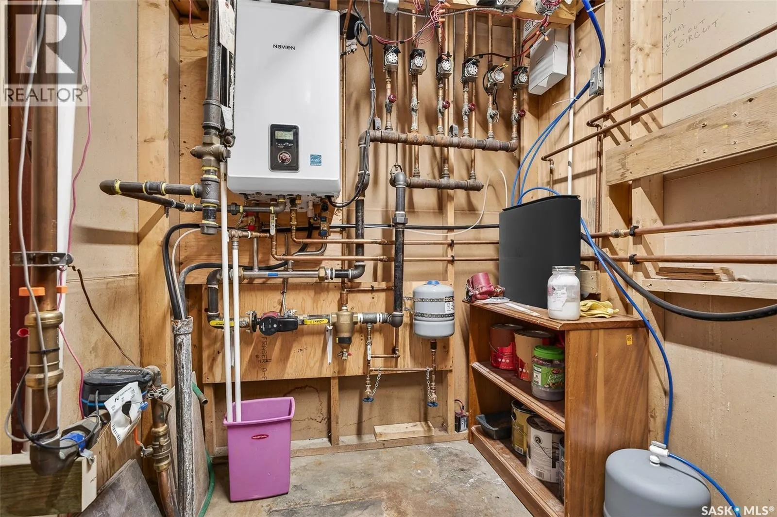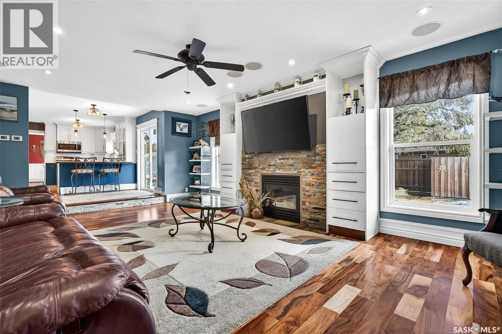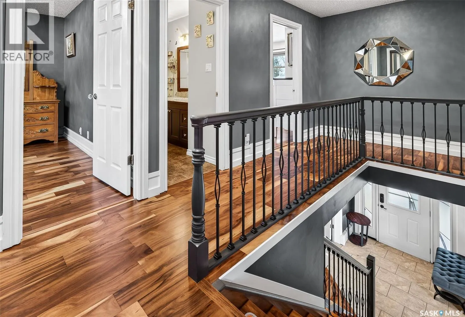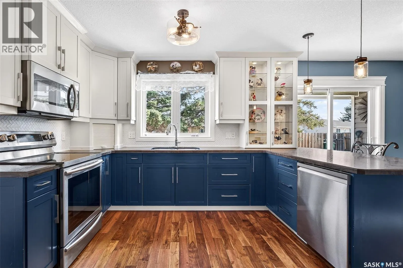 Welcome to 1345 Prince Crescent in the desirable Palliser area of Moose Jaw. This beautifully updated 2,280 sq ft two-storey home offers exceptional space and functionality for family living. The main floor features a bright open foyer with office space, a spacious living room, a formal dining area perfect for entertaining, and a large kitchen with abundant cabinetry and counter space, flowing into a comfortable Great Room ideal for relaxing. There is also convenient access to the double attached garage, along with a 3-piece bathroom off the entry. The upper level includes four bedrooms and a full 4-piece bathroom, highlighted by a generous primary bedroom with an updated 3-piece ensuite. The fully developed lower level provides additional living space with a large family room, an extra bedroom or office, a full 4-piece bathroom, and a spacious laundry room with plenty of storage. Situated on a massive 13,628 sq ft lot, the backyard is a true private retreat designed for both relaxation and entertaining. Enjoy long summer days in the impressive 18' x 36' heated in-ground poolâperfect for everything from morning swims to hosting unforgettable gatheringsâoffering plenty of space for family and guests alike. As the evening cools, unwind in the inviting hot tub, ideal for soaking under the stars or starting your day with a peaceful morning coffee. The yard also features a 30' RV or motorhome parking pad with back alley access, along with multiple outbuildings including a workshop with a 40-amp panel. The exterior is fully landscaped with a low-maintenance zero-scaped front yard and rubber-paved driveway and walkways sets the curb appeal for this home. Recent updates include a new Combi boiler (on-demand hot water) in (2021), water softener (2024), and an expanded 36-inch front entry door. This move-in-ready home offers incredible value and must be seen to be fully appreciated. (id:27476)