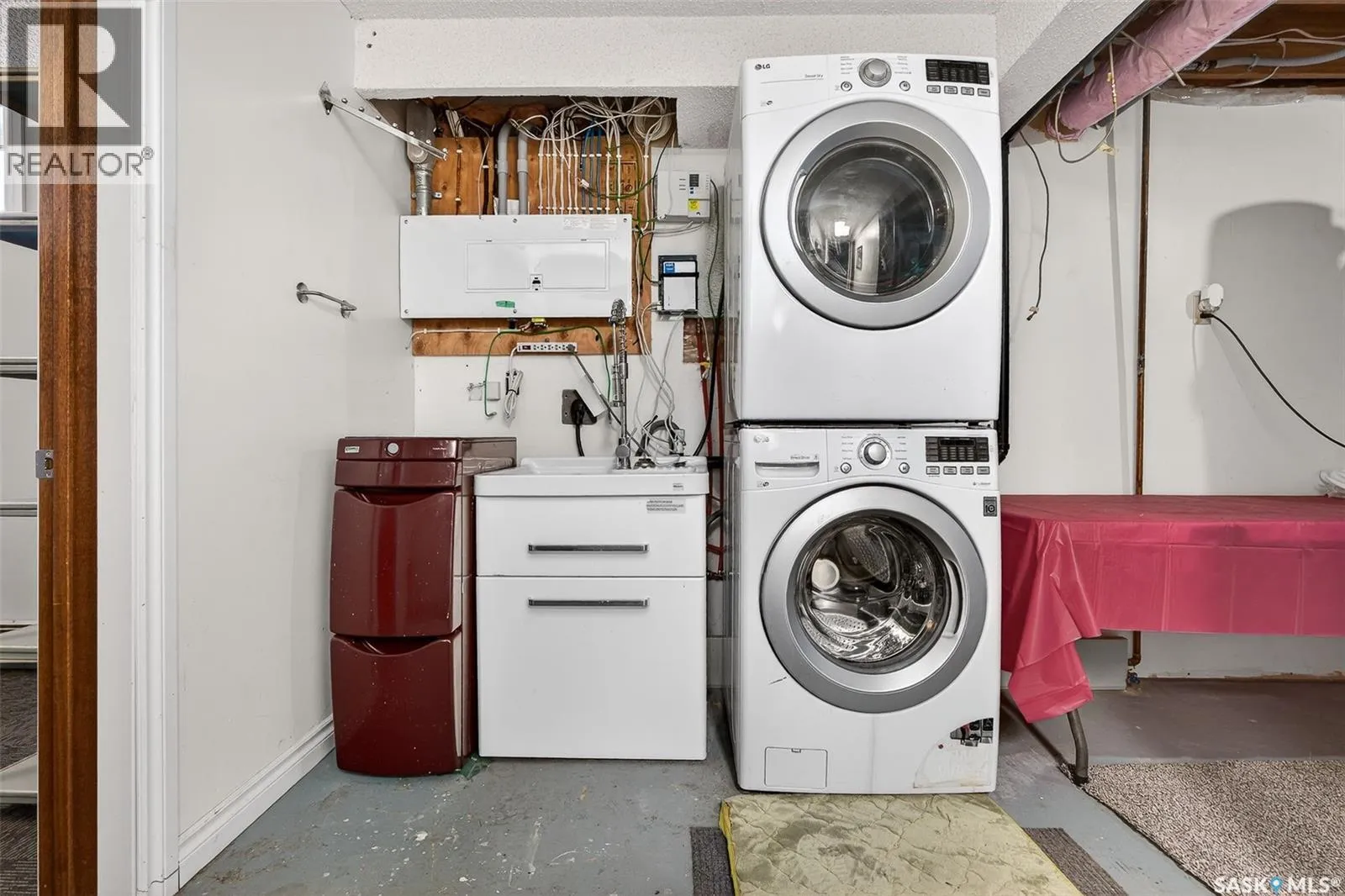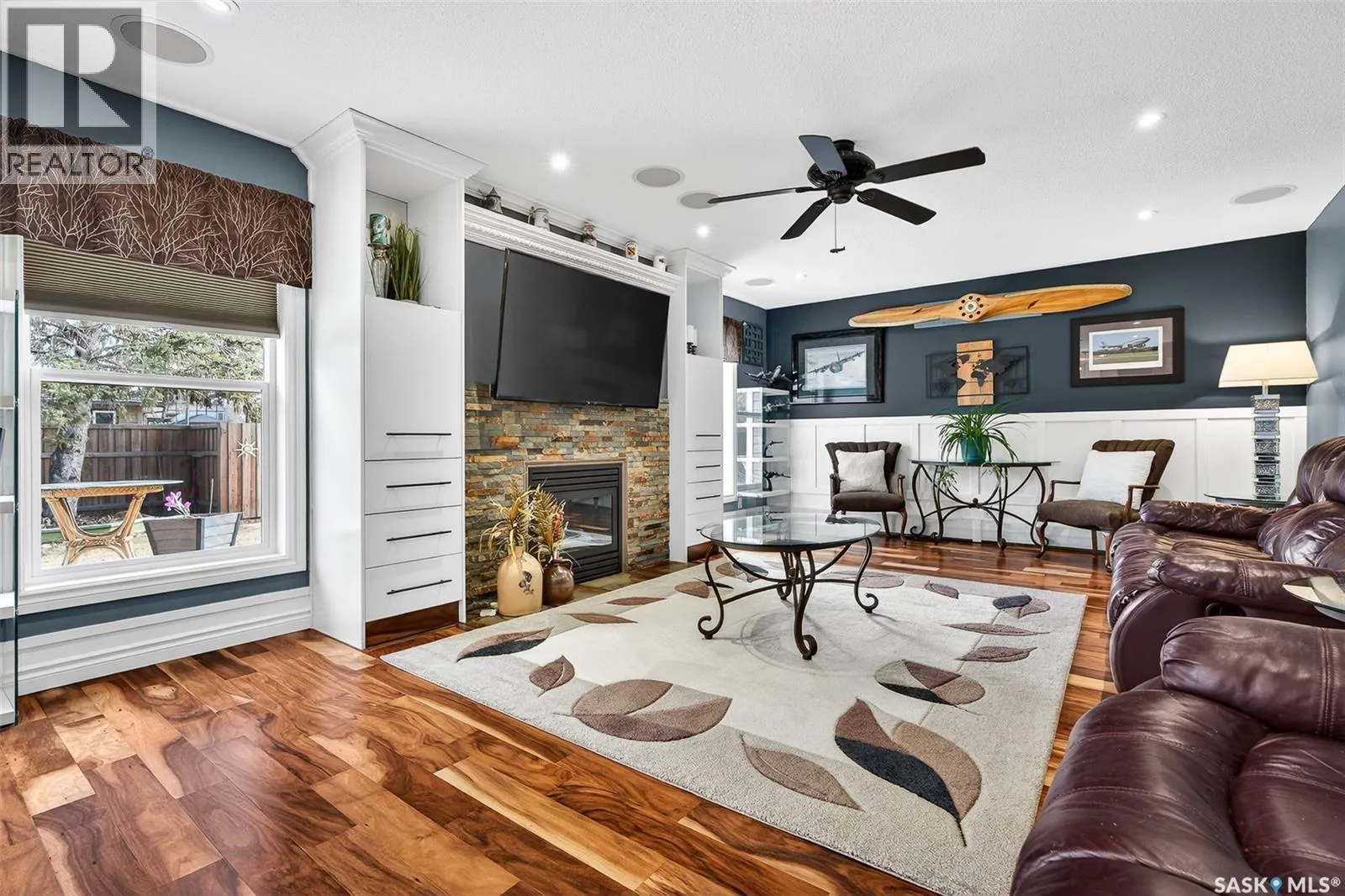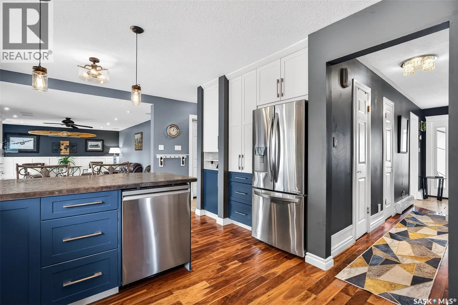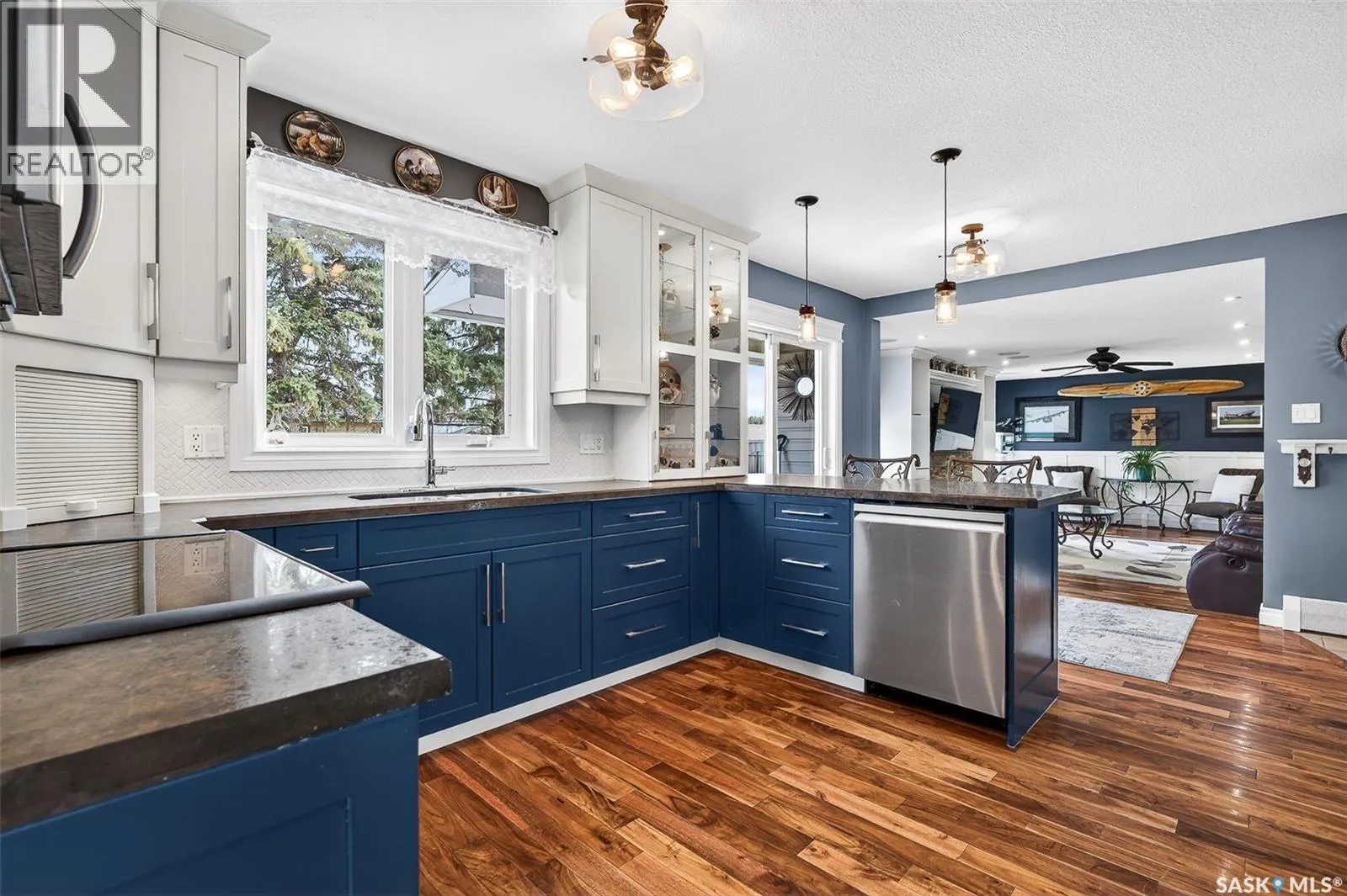 Welcome to 1345 Prince Crescent in the desirable Palliser area of Moose Jaw. This beautifully updated 2,280 sq ft two-storey home offers exceptional space and functionality for family living. The main floor features a bright open foyer with office space, a spacious living room, a formal dining area perfect for entertaining, and a large kitchen with abundant cabinetry and counter space, flowing into a comfortable Great Room ideal for relaxing. There is also convenient access to the double attached garage, along with a 3-piece bathroom off the entry. The upper level includes four bedrooms and a full 4-piece bathroom, highlighted by a generous primary bedroom with an updated 3-piece ensuite. The fully developed lower level provides additional living space with a large family room, an extra bedroom or office, a full 4-piece bathroom, and a spacious laundry room with plenty of storage. Situated on a massive 13,628 sq ft lot, the backyard is a true private retreat designed for both relaxation and entertaining. Enjoy long summer days in the impressive 18' x 36' heated in-ground poolâperfect for everything from morning swims to hosting unforgettable gatheringsâoffering plenty of space for family and guests alike. As the evening cools, unwind in the inviting hot tub, ideal for soaking under the stars or starting your day with a peaceful morning coffee. The yard also features a 30' RV or motorhome parking pad with back alley access, along with multiple outbuildings including a workshop with a 40-amp panel. The exterior is fully landscaped with a low-maintenance zero-scaped front yard and rubber-paved driveway and walkways sets the curb appeal for this home. Recent updates include a new Combi boiler (on-demand hot water) in (2021), water softener (2024), and an expanded 36-inch front entry door. This move-in-ready home offers incredible value and must be seen to be fully appreciated. (id:27476)
