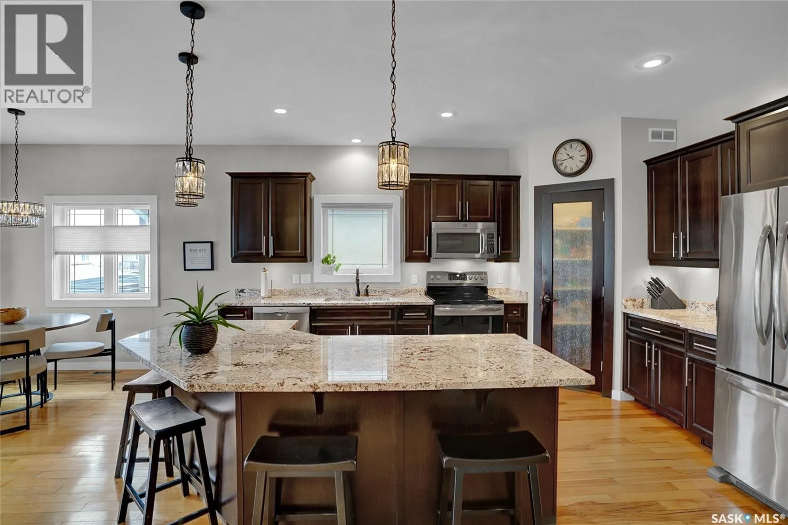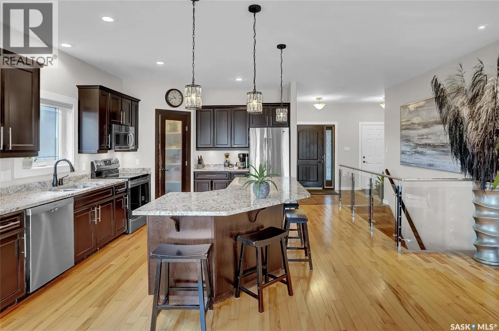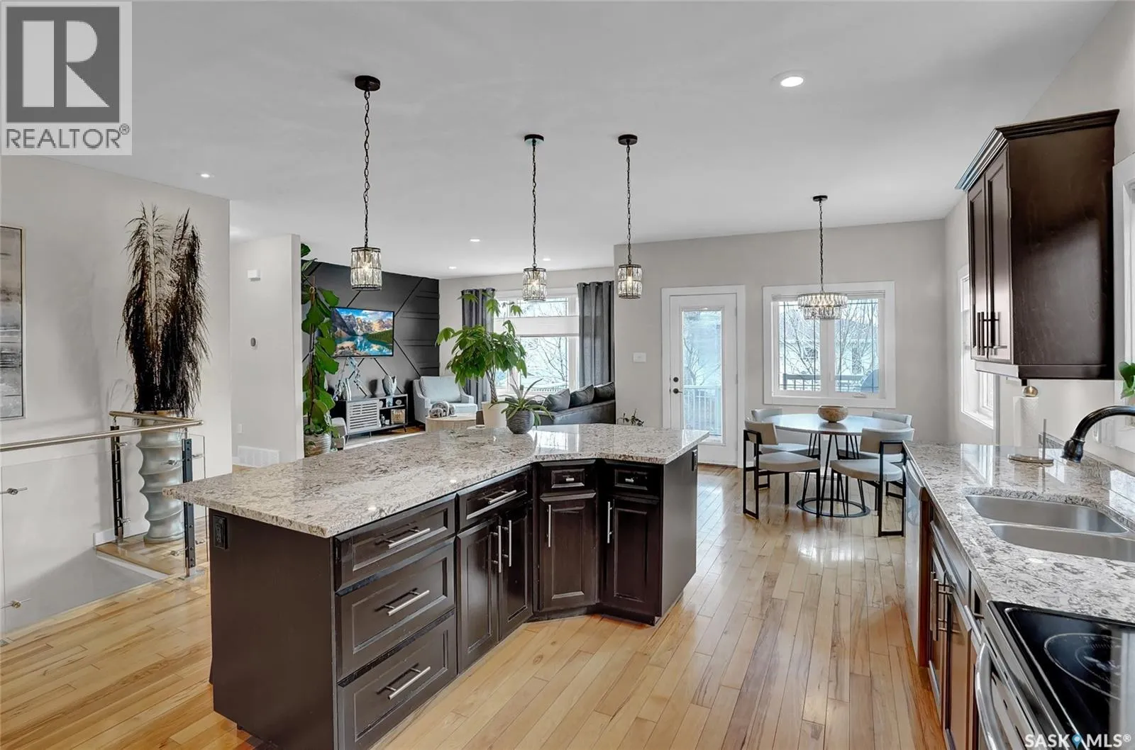 Welcome to upscale living in the heart of Sunningdale neighbourhood. This exceptional custom-built bungalow offers the perfect blend of design, functionality & comfortâideal for families & those who love to entertain. From the moment you arrive, the curb appeal, manicured landscaping & inviting entrance set the tone for what awaits. Step into a bright, open-concept main floor featuring expansive windows that flood the space w/natural light & the hardwood flooring only enhances your living. The elegant living room showcases refined finishes in a feature wall & flows seamlessly into the dining area & the beautifully appointed kitchen. Designed with both style & practicality in mind, the kitchen boasts fantastic cabinetry, granite countertops, pantry, a large island & ample storageâperfect for everyday living & hosting. The main level offers generously sized bedrooms, including the primary retreat complete w/walk-in closet & a spa-inspired ensuite w/heated floor & towel rack. To complete this floor is the 4pc. bath & laundry w/cabinetry. Thoughtful layout & quality craftsmanship are evident throughout. The fully developed lower level expands your living space w/a large family room w/gas fireplace, game & wet bar area, 2 additional bedrooms, 4pc. bath & storage. Many versatile areas to be tailored to your lifestyle. Step outside to your private backyard oasis, w/tiered deck partially covered that has natural gas hook ups. This is where you will really enjoy the beautifully landscaped yard, which is quite private in bloom, perfect for relaxing or entertaining. Whether itâs summer BBQs or quiet evenings, this outdoor space delivers. The oversized dbl. att. heated garage also features an electric car charger. This is a home located in the highly sought-after Sunningdale neighbourhood, youâre close to parks, schools, walking paths, and all amenitiesâmaking this an exceptional place to call home. CLICK ON MULTI MEDIA TOUR FOR A VISUAL TOUR. (id:27476)
