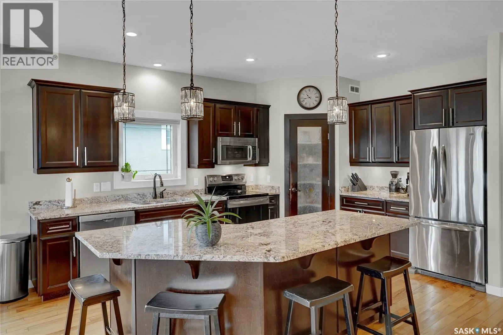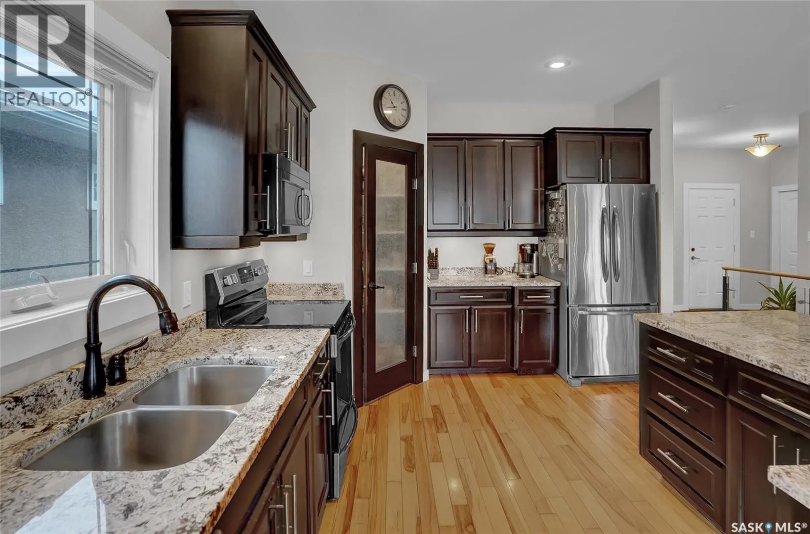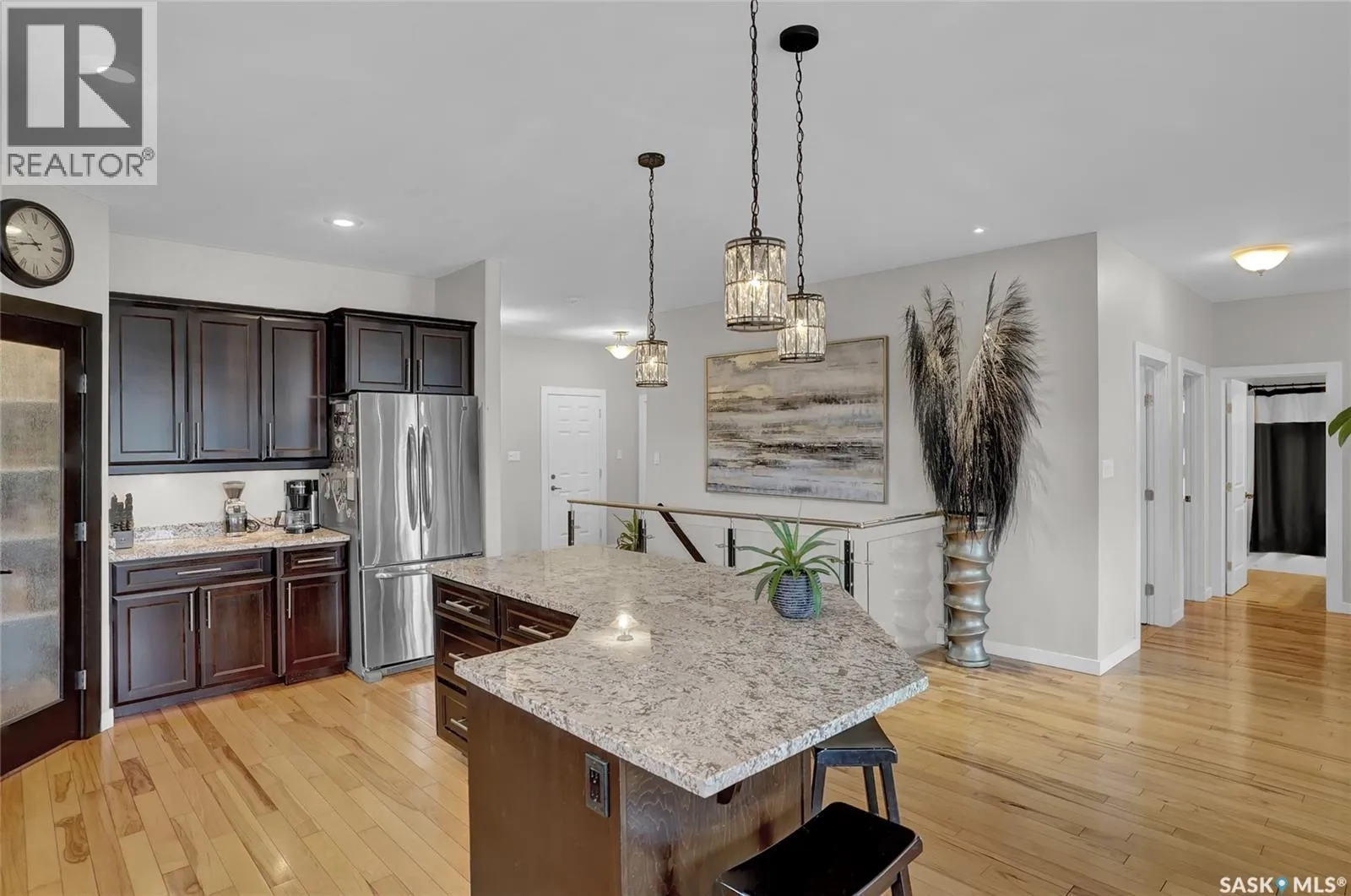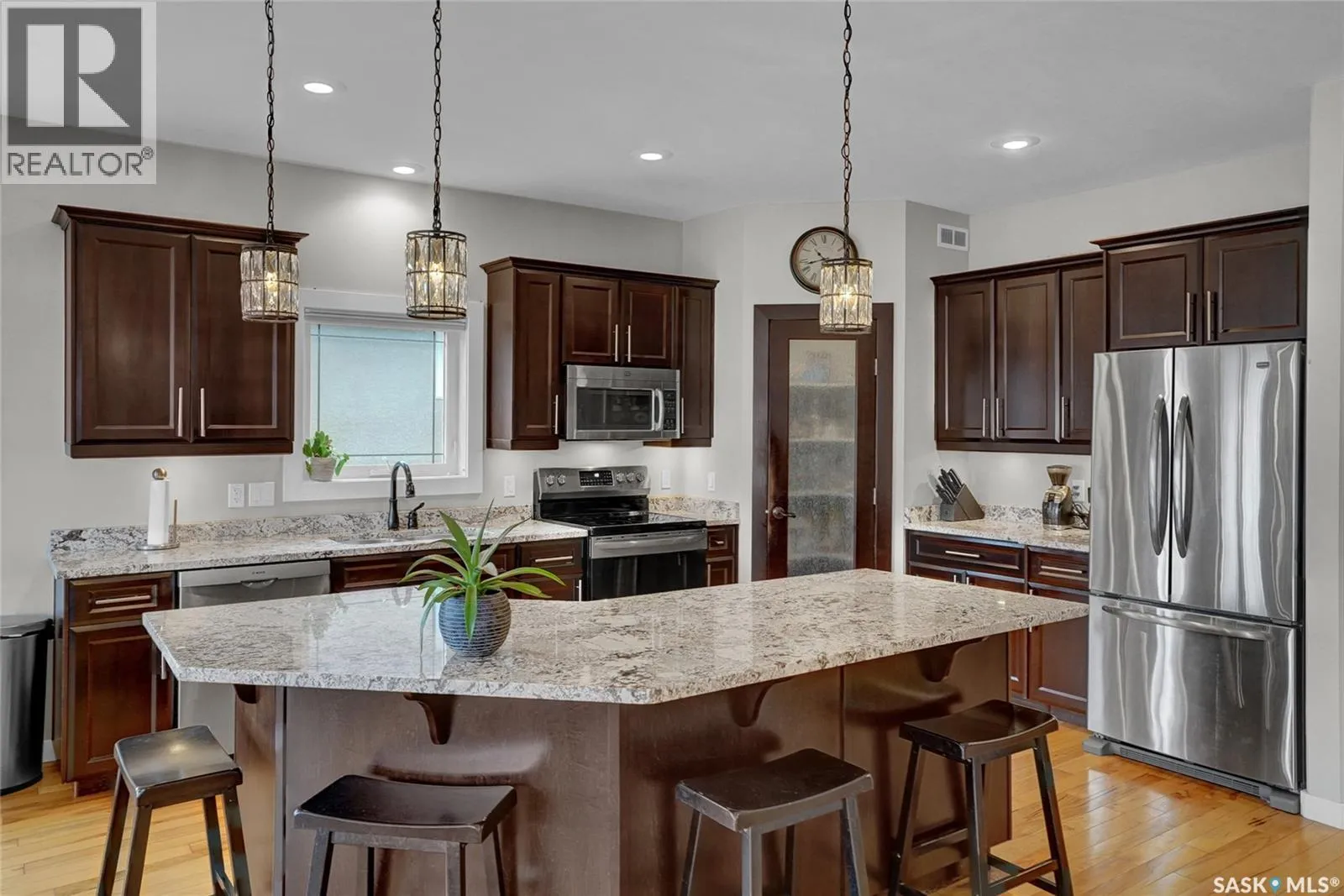 Welcome to upscale living in the heart of Sunningdale neighbourhood. This exceptional custom-built bungalow offers the perfect blend of design, functionality & comfortâideal for families & those who love to entertain. From the moment you arrive, the curb appeal, manicured landscaping & inviting entrance set the tone for what awaits. Step into a bright, open-concept main floor featuring expansive windows that flood the space w/natural light & the hardwood flooring only enhances your living. The elegant living room showcases refined finishes in a feature wall & flows seamlessly into the dining area & the beautifully appointed kitchen. Designed with both style & practicality in mind, the kitchen boasts fantastic cabinetry, granite countertops, pantry, a large island & ample storageâperfect for everyday living & hosting. The main level offers generously sized bedrooms, including the primary retreat complete w/walk-in closet & a spa-inspired ensuite w/heated floor & towel rack. To complete this floor is the 4pc. bath & laundry w/cabinetry. Thoughtful layout & quality craftsmanship are evident throughout. The fully developed lower level expands your living space w/a large family room w/gas fireplace, game & wet bar area, 2 additional bedrooms, 4pc. bath & storage. Many versatile areas to be tailored to your lifestyle. Step outside to your private backyard oasis, w/tiered deck partially covered that has natural gas hook ups. This is where you will really enjoy the beautifully landscaped yard, which is quite private in bloom, perfect for relaxing or entertaining. Whether itâs summer BBQs or quiet evenings, this outdoor space delivers. The oversized dbl. att. heated garage also features an electric car charger. This is a home located in the highly sought-after Sunningdale neighbourhood, youâre close to parks, schools, walking paths, and all amenitiesâmaking this an exceptional place to call home. CLICK ON MULTI MEDIA TOUR FOR A VISUAL TOUR. (id:27476)
