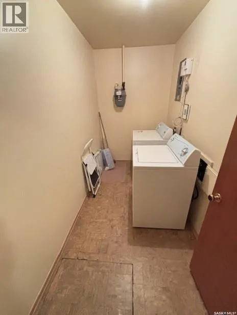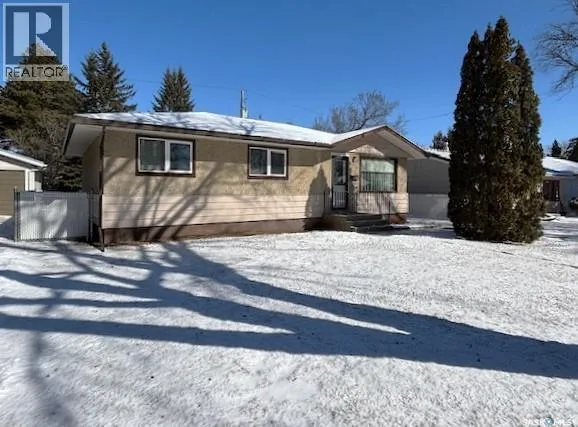 Welcome to this 950 sq ft bungalow in the sought-after Palliser neighborhood of Moose Jaw, perfectly suited for those seeking the ease of single-level living in a quiet, family-friendly area close to schools and parks. This home offers a bright and spacious living room, a large kitchen with plenty of cabinetry, and a dedicated dining area ideal for both everyday living and entertaining. Featuring three ample sized bedrooms, a full 4-piece bathroom, and a separate laundry room, the layout is both practical and comfortable. Numerous updates add value and peace of mind, including a sewer line replacement (2024), water heater (2020), updated front and rear exterior doors. All appliances are includedârefrigerator, stove, washer, and dryer. 100 amp Electrical Service. Step outside to a landscaped yard with mature trees, a gardening area, and fencing for privacy. A storage shed adds extra convenience. Whether you're downsizing, purchasing your first home, or simply looking for stair-free living, this property checks all the boxes. Donât miss your chance to own a comfortable and affordable home in a desirable neighborhood. (id:27476)