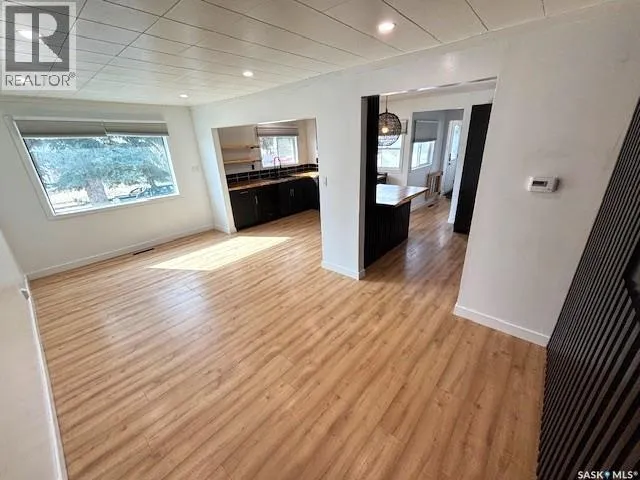 Welcome to this charming 840 sq ft bungalow located in the desirable North West Palliser area of Moose Jaw, close to schools and parksâperfect for first-time home buyers or those looking to downsize. The main floor features a bright, open-concept layout with a beautifully renovated kitchen (2022), complete with darker-toned cabinetry, updated sink, dishwasher, ample counter space, and a functional breakfast bar/islandâideal for everyday living and entertaining. Laminate flooring runs throughout the kitchen, dining area, and bedrooms, while a large south-facing picture window fills the space with natural light. The main level also includes a full 4-piece bathroom and two ample sized bedrooms. The fully developed lower level offers additional living space with a comfortable family room, a versatile den perfect for a home office or playroom, and a utility/laundry area. Outside, enjoy the fully landscaped yard featuring a wood deck, a designated garden area, and a storage shed. A long single detached garage provides excellent parking, storage, or workshop potential. Immediate possession is availableâdonât miss this opportunity to own a well-updated home in a great location! (id:27476)