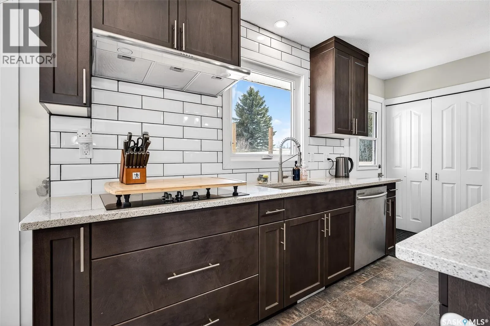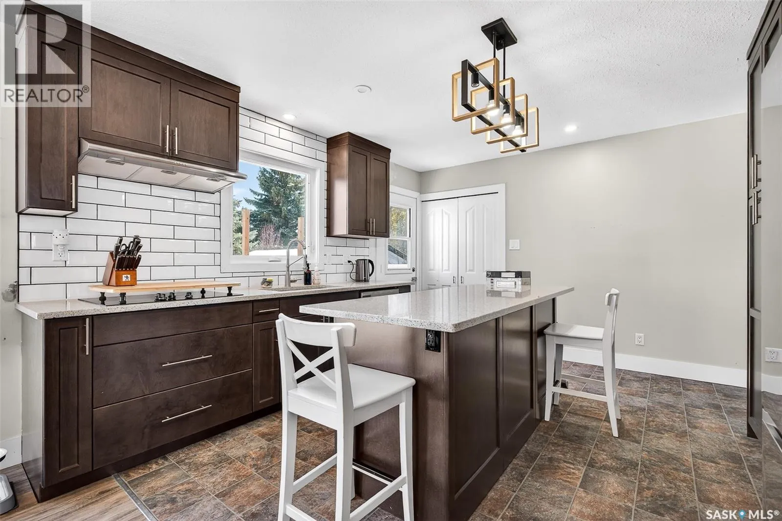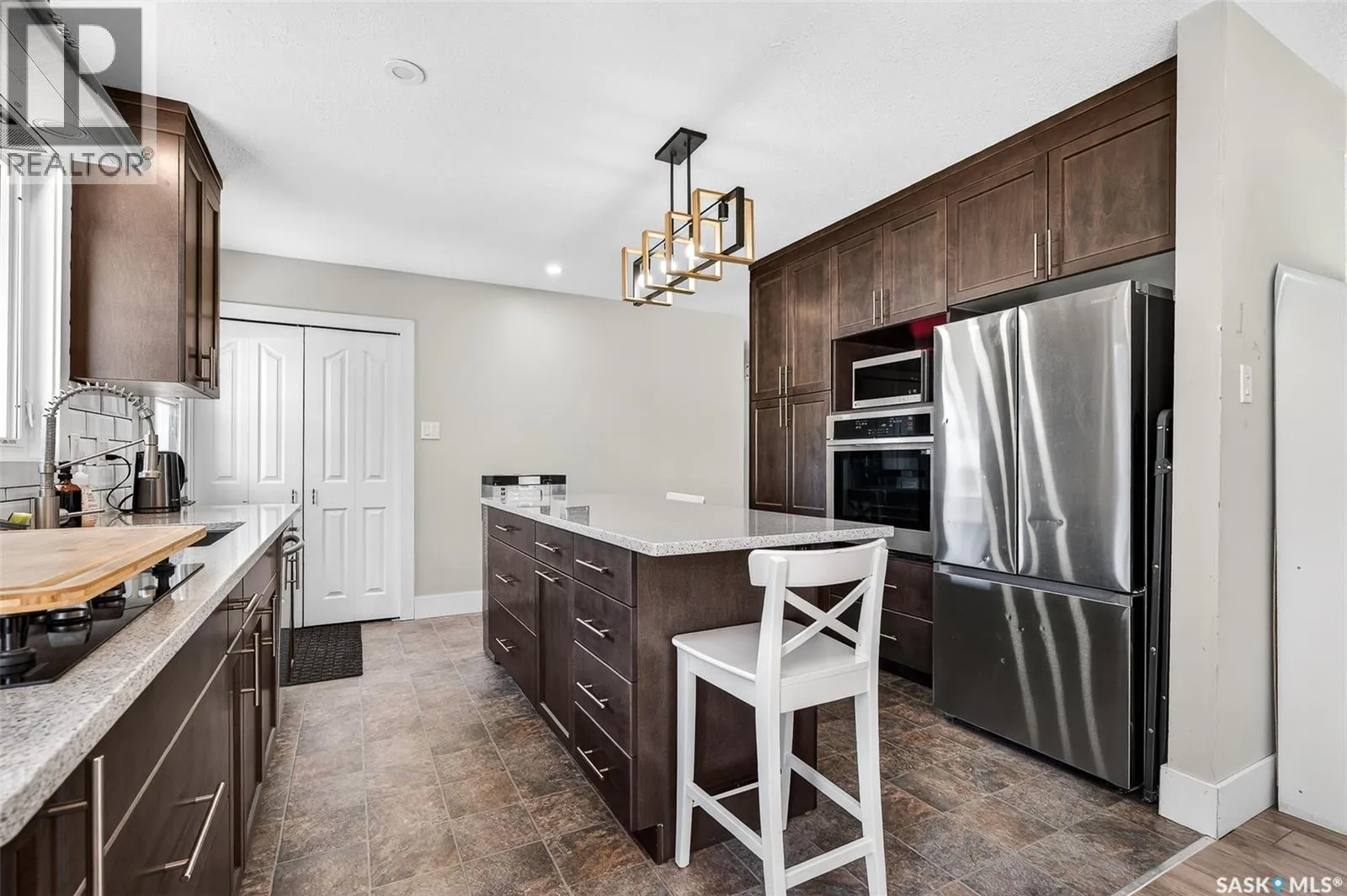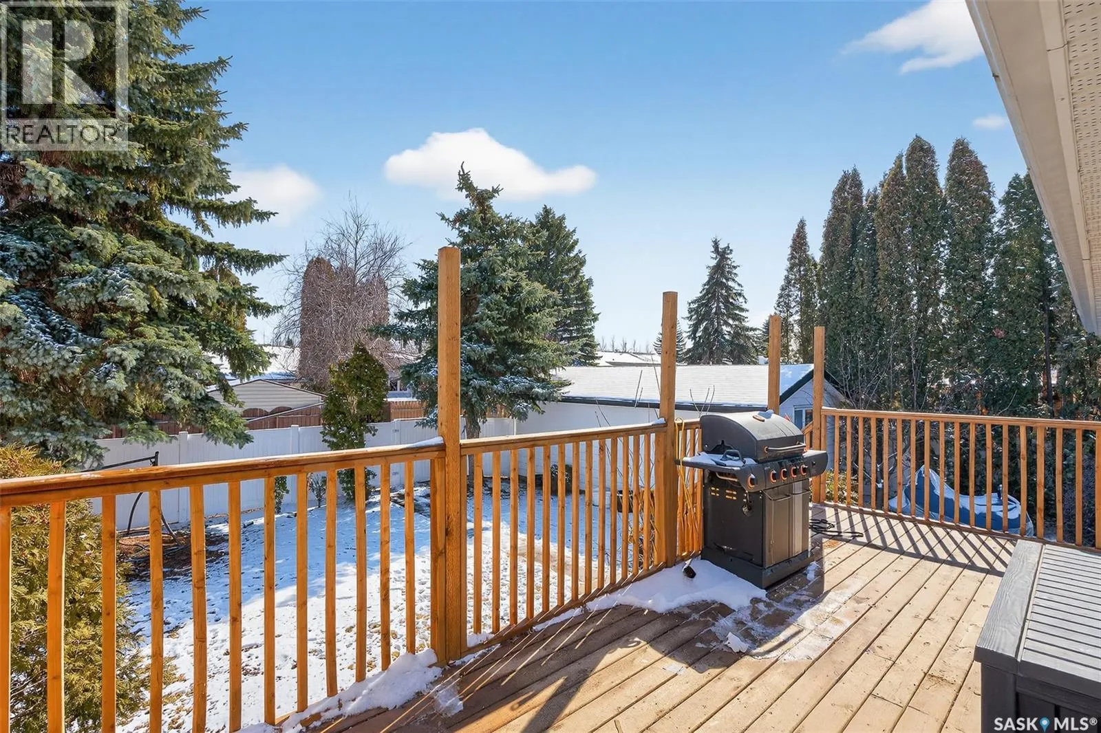 Family friendly! This 4 Bedroom Bi-level is situated on a quiet crescent in the highly desired Palliser Heights neighbourhood where you are walking distance to schools, parks, playgrounds, convenience store, ball diamonds & more! This home has seen numerous updates with the main focus being a Kitchen renovation with ample storage including pot drawers, pantry with pull-outs, soft close feature, quartz countertops, built-in wall oven & cooktop with range hood all centered around the island with room to pull up extra seating. Adjacent Dining Room with patio doors to new deck overlooking the mature back yard with new vinyl fencing & single detached garage. The lower level is developed with an L-shaped Family Room, Den, 2 Bedrooms, 3 pc Bath & utility room. A great home to consider for your next move â call to book a personal showing! (id:27476)