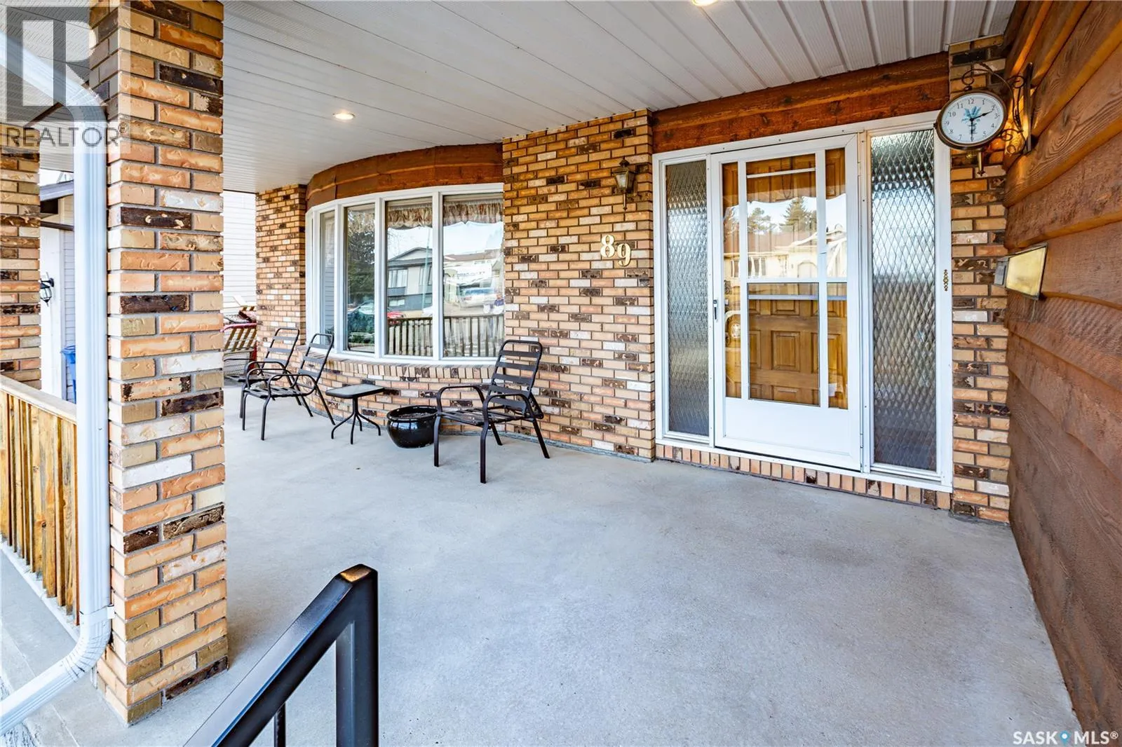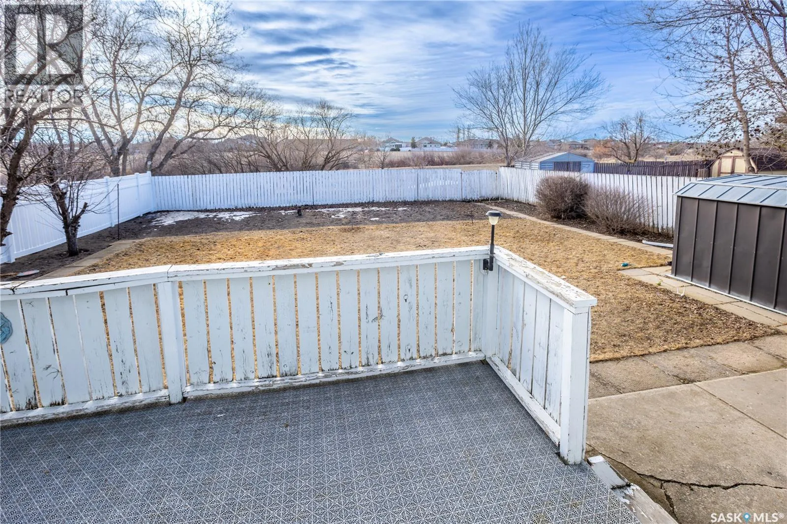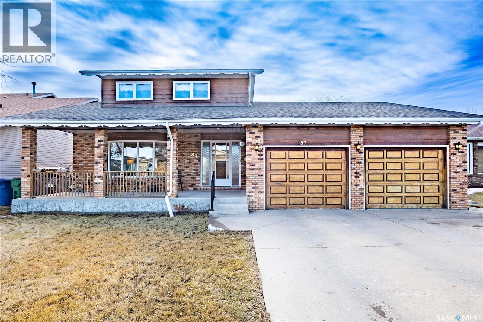 Lot 63 Block 10 Plan 77MJ07702 Ext 0 Located in the heart of Sunningdale, this is a rare opportunity to own a 2-storey home backing directly onto Sunningdale Parkâone of the most desirable settings in Moose Jaw. As you arrive, thereâs an immediate sense of quality. The home features a timeless brick and cedar exterior along with a welcoming front patio. Inside, the main level is over 1,000 square feet, beginning with a bright, spacious living room anchored by a bow window that floods the space with natural light. The layout flows naturally into the dining area, where patio doors lead out to the back deck and a well-kept yard with two apple trees, garden space, and direct access to Sunningdale Park. Walking paths, biking, and disc golf are all just steps from your backyard. The dining area connects seamlessly to the kitchen, creating a practical layout with everything within easy reach. From the dining area, you move down the hall to a main-floor bathroom featuring a walk-in tub. Continuing down the hall, just off the garage entrance, is the family roomâa bright, versatile space with large windows overlooking the backyard. Off the family room is a rear entrance, along with main floor laundry. Upstairs, the primary bedroom offers double closets and a view overlooking the yard and park. Two additional bedrooms and a full bathroom complete this level. The insulated double attached garage provides excellent space for parking, storage, or projects. This home has been very well cared for and remains largely original, offering the option to move in as is or update and add value. The basement is open for future development. A very well-cared-for home in a truly standout Sunningdale location. Come see it in person. (id:27476)