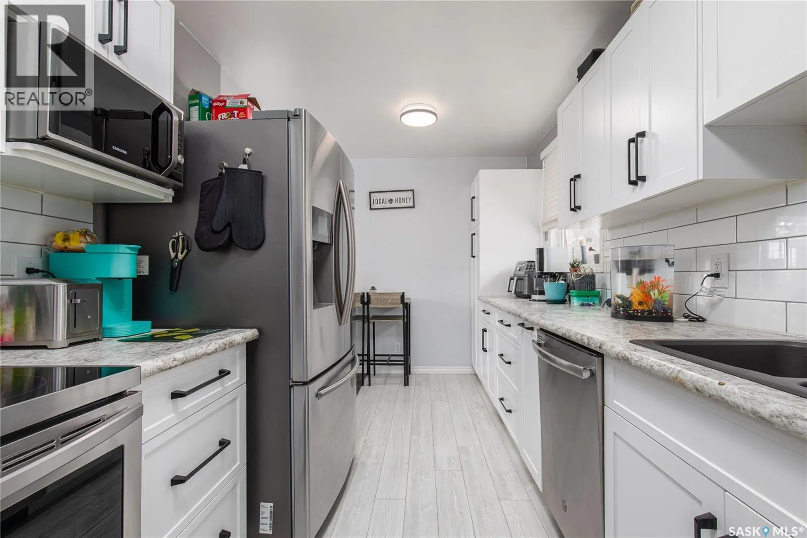 Step inside this adorable home! Bright and welcoming living room, where new whitewashed flooring flows seamlessly into a beautifully renovated custom kitchen by Kopp Cabinets designed for everyday living. Down the hall, youâll find three comfortable bedrooms along with an updated 4-piece bathroom, offering a functional layout for families of all sizes. The fully finished basement (completed in 2021) adds even more living space, featuring a cozy family room perfect for movie nights or a play area for the kids. Thereâs also a versatile nook currently set up as a bar and office space, giving you flexibility to suit your lifestyle. A large fourth bedroom, 3-piece bathroom, and dedicated laundry room complete the lower level. Outside, enjoy a fully fenced yard with a newer composite deck and fire pit area ideal for relaxing or entertaining. With plenty of parking and major mechanical updates already taken care of (furnace, air conditioning), this home offers peace of mind and convenience. All thatâs left to do is move in and make it your own. (id:27476)