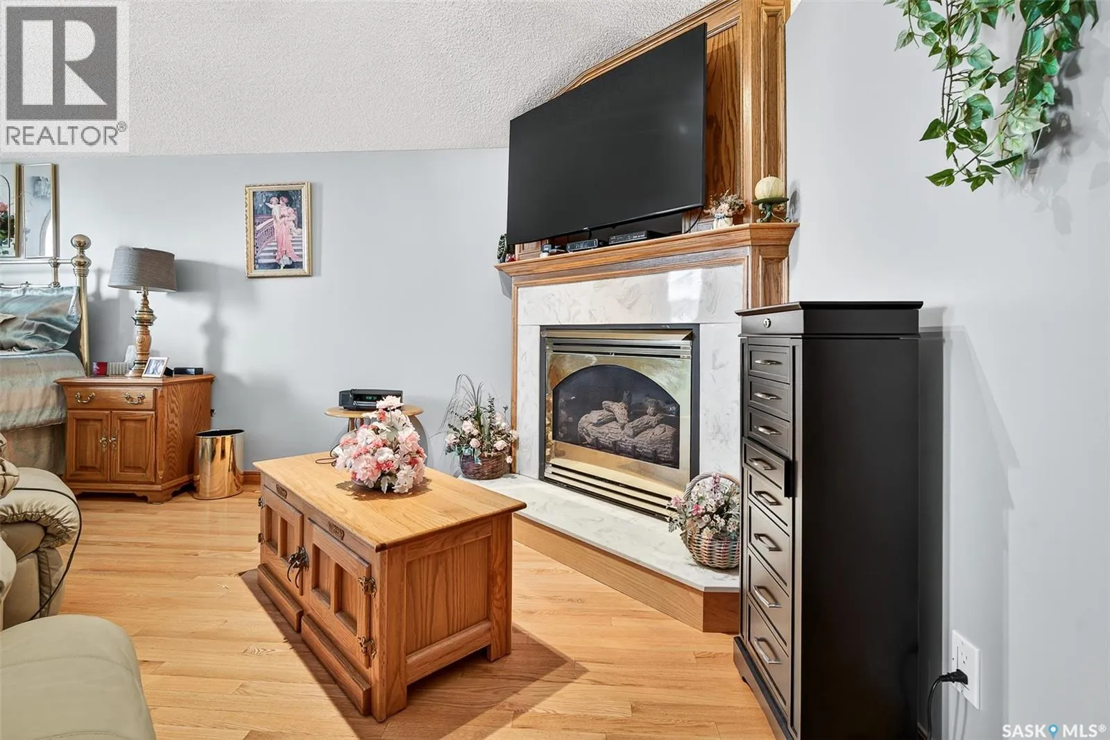 Custom...Comfort...Space!! Perfectly designed space in this modified bi-level home on popular NW crescent. Welcoming immense foyer leads to 3 levels of over 2400 sq feet of elegance. Large living room with bow window flows into a formal dining area with pillars and a bay window. The "chef" kitchen has an abundance of darker cabinetry, pantry, appliances and adjoins a bright southern facing sun room with skylights and overlooks a park-like yard. 2 bedrooms and a full bath complete this level. A few steps up to a custom designed primary bedroom that boasts a fireplace, window seat and mirrored french doors that lead to a 22x9 walk-in closet with built-in dressers, providing a quiet retreat. There's a 5pc ensuite that would make anyone envious with in-floor heat, jetted tub and make-up counters and table. Enjoy the finished basement! Family room has a wet bar, a bedroom/den with a gas fireplace, full bath and utility room. The large laundry/mud room has access to the double heated garage and the back yard oasis. You can access the manicured, fenced back yard from either level. Enjoy the large comfortable deck and patio for relaxing or the brick fireplace/BBQ on those special days!! (id:27476)