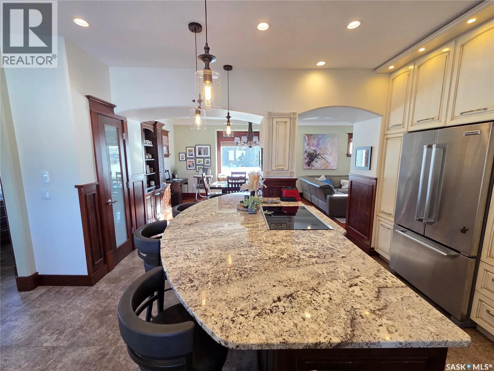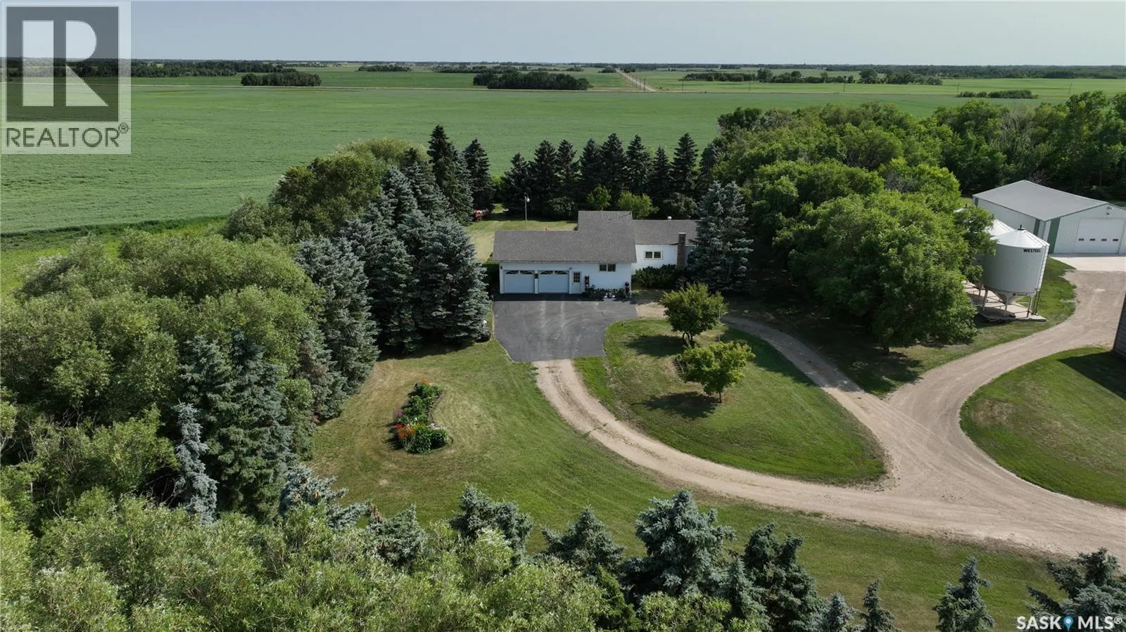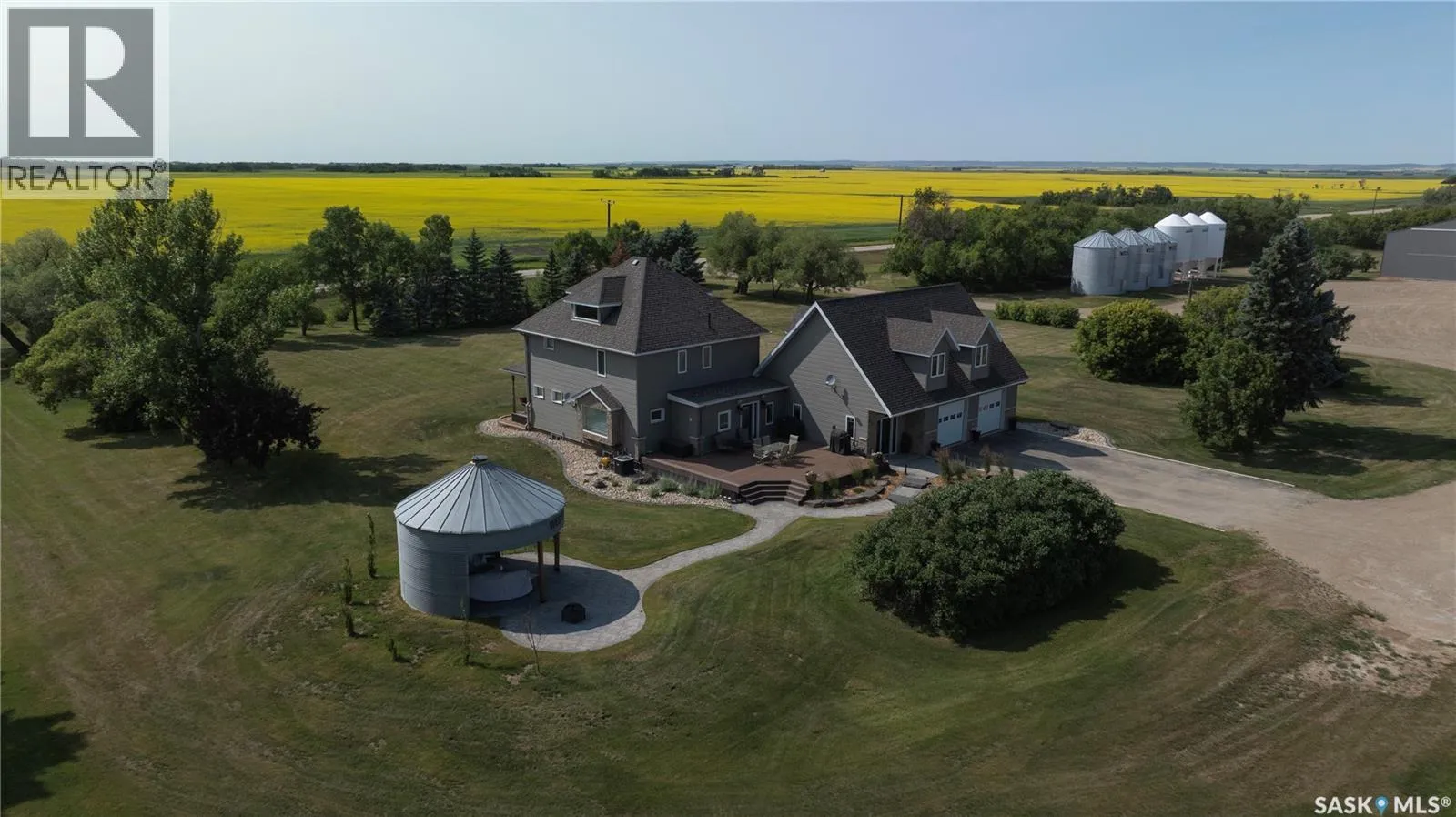 Stunning 10 acres located just south of Carlyle off Hwy #9, offering space, versatility, and income potential. The main character home offers approx. 3,100 sq. ft. with 4 bedrooms and 3 bathrooms. A spacious foyer provides direct access to the heated 30â x 30â garage with in-floor heat. Above the garage is a private living area featuring a large bedroom and generous rec/living room with cozy gas fireplace and dormers that add natural light and character. The kitchen is the heart of the home with abundant custom cabinetry, granite countertops, built-in stovetop and oven, stainless steel appliances, and a large island ideal for gathering. Two archways lead to a bright dining room with bay window. Hardwood floors add warmth throughout the main living areas. The living room offers great space for family and guests, plus a sitting area with access to the veranda. Upstairs features three sizable bedrooms, an office, and a beautiful main bath with antique soaker tub. The basement includes a spacious rec room, 3-piece bath, laundry/utility area, and storage. Additional features include in-floor heat, central A/C, RO water system, fibre optic internet, Generac backup system, underground sprinklers, composite deck with natural gas BBQ hookup, and a landscaped yard with mature trees and grain bin gazebo with fire pit. The property also includes a 1,400 sq. ft. home with finished basement, 3 bedrooms, 2 bathrooms, heated double garage, A/C, composite deck, and paved driveway. The yard site includes a 54âx40â heated shop, 20âx24â building, and 30âx40â cold storage. Potential rental income of $15,000/year. Seller is willing to sell the home quarter with approx. 155 cultivated acres, as well as the bin yard featuring a 60âx140â metal clad cold storage shed with bi-fold door, 40âx60â quonset, (7) 5,900 bu. flat bottom bins, (2) 20,000 bu. flat bins with aeration, (4) 10,000 bu. hopper bins with aeration, plus 20âx30â and 30âx30â metal clad sheds. Current rental income $60,000/year. (id:27476)