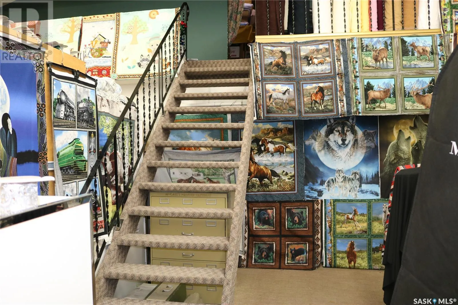 What a wonderful opportunity! Lovingly maintained historic building on Moosomin's Main Street. The front facade was upgraded with beautiful brick work. Upon entering, there are two doors - one to enter into the leased office space and the other to enter into the retail side. This very well established retail fabric business has been running for 35 years with the current owner, serving a very large trade area. It's a fantastic opportunity for anyone that loves sewing, quilting and crafts, with room to expand to your specific interests. The basement of the building has been renovated and has great retail potential. The second floor has another rental space with a two piece bath. Lots of options here. Part of the second floor is workspace for the current business, and is spacious for doing draperies and alterations. An opportunity like this doesn't come around very often. Sale includes the building and inventory is flexible at an additional cost. Contact your agent to check it out! (id:27476)