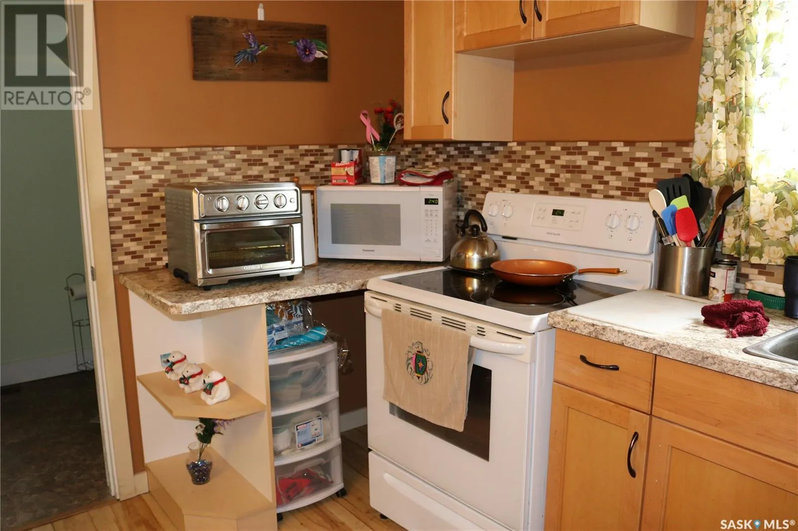 An affordable one bedroom home with many updates, on a huge lot just down the street from the school! You'll be pleasantly surprised with the features inside. Nicely updated kitchen with new cabinetry. Renovated three piece bathroom. Beautiful laminate floors throughout the kitchen, living room and bedroom. Large laundry room with tons of storage space. The home is also wheelchair accessible with an upgraded deck and ramp at the front door. Plenty of parking space and lots of yard if you want a garden! New water heater in 2023. Contact your agent to view the property! (id:27476)