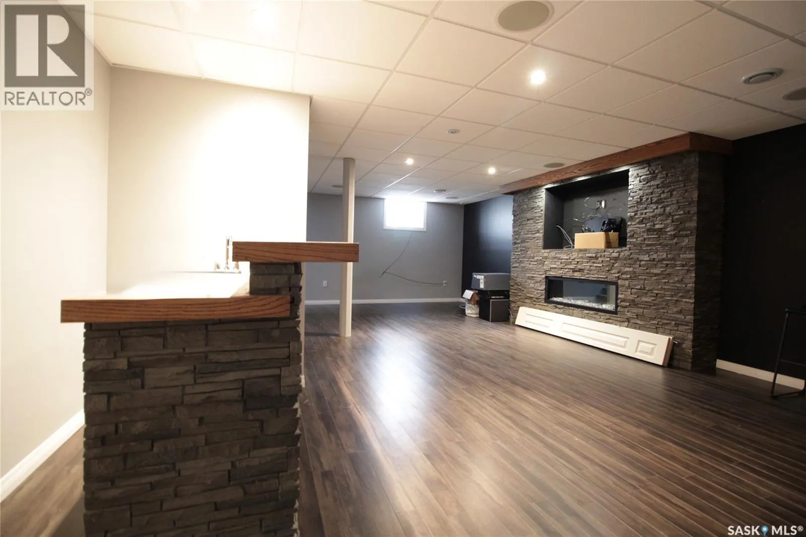 Amazing property in a great neighborhood! This gorgeous home has it all; a fenced in yard, detached double car garage, and lots of updates! Inside, you're greeted by a bright open-concept layout, spacious living room w/ a beautiful electric fireplace as the focal point, and the most eye-catching kitchen! This gorgeous kitchen features quartz counter tops, grey tiled backsplash, white cabinetry, and plenty of counter space including an eat-at island! You'll also find 2 spacious bedrooms and a 4pc bathroom complete w/ a sunken jet tub. The large back entrance is a great addition to this house and leads out onto the east-facing deck. The renovated basement provides you with a huge family room complete with a wet bar and another beautiful electric fireplace accented w/ stone. There's also 2 additional bedrooms and a 3pc bathroom. Outside you'll find a large fenced in yard, patio, and detached double car garage. Don't miss out on this great property! (id:27476)
