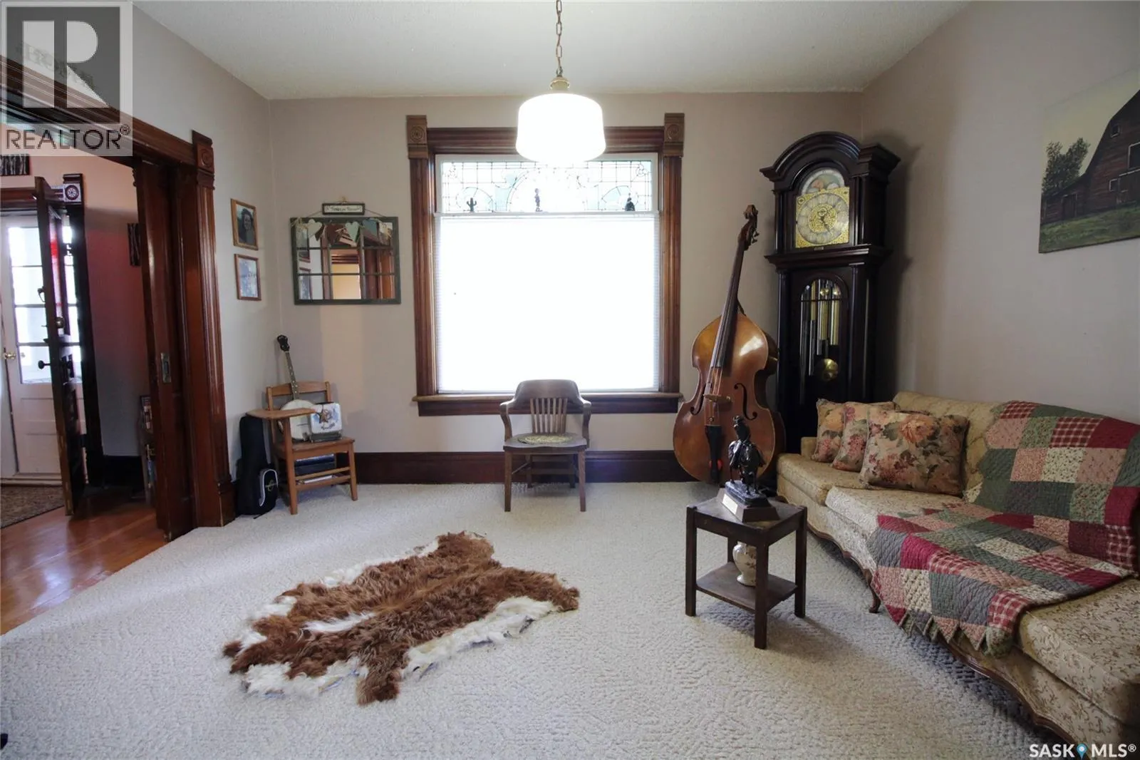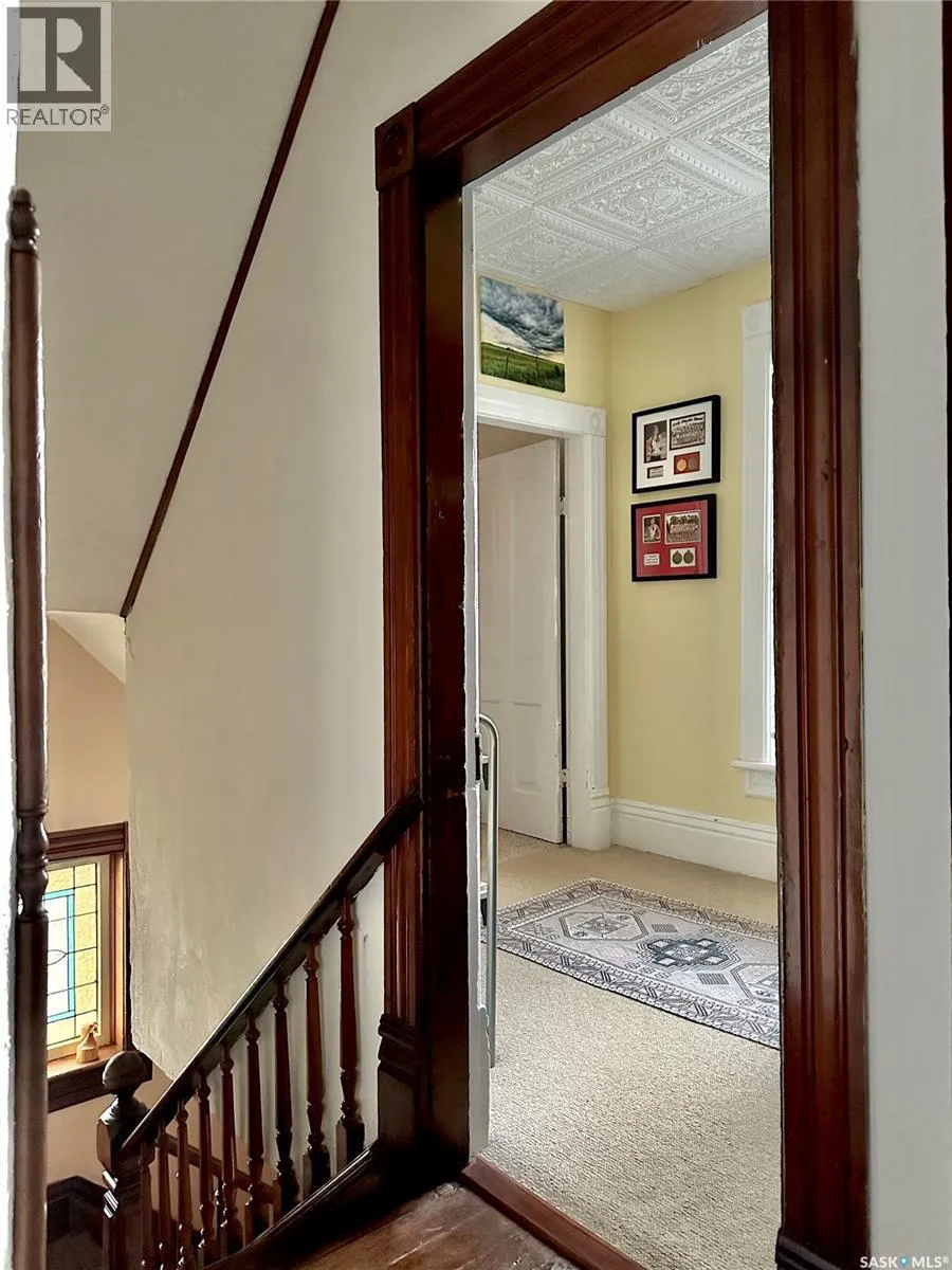 This GORGEOUS home is nothing short of amazing! Featuring ORIGINAL hardwood flooring/trim/baseboards, pocket doors, stained glass windows, NEW ceilings throughout, and 10 ft ceilings; itâs sure to leave you speechless! It sits on 1 1/2 BEAUTIFULLY LANDSCAPED lots with fruit trees, perennials, peaceful deck area, and itâs just a short walk to the schools, daycare, and downtown! Once inside youâll be greeted by a beautiful entrance with a staircase leading to the second level. Thereâs also access from here into the parlour, living room, and dining room with 3 original pocket doors dividing the spaces. Through the dining room youâll find the nice, BRIGHT kitchen with white cabinetry, along with a servants stairway to the second floor and access to the insulated garage/deck. The second level provides you with 3 SPACIOUS bedrooms, storage room, large 4pc bathroom, and an office leading up to the attic. This EXTRA living space is perfect and even features an additional 4pc bathroom and bedroom. Currently set up as a studio, you can convert it to whatever you so choose! You can tell just how much the owners have loved this property; it has been METICULOUSLY cared for and it shows the second you drive up to it. UPDATES INCLUDE: water heater (2024) and shingles (2022). **This home belongs to Canadian Recording Artist Eli Barsi** SMOKE FREE and PET FREE home! LINK for VIDEO available upon request! (id:27476)