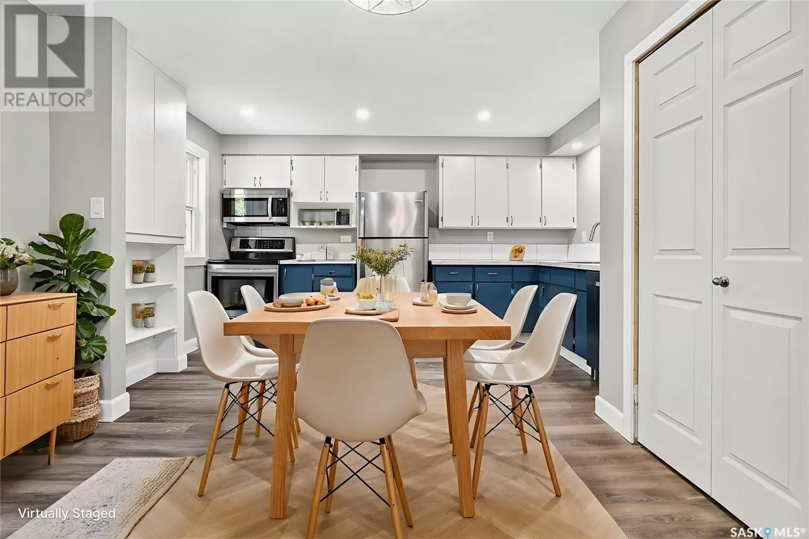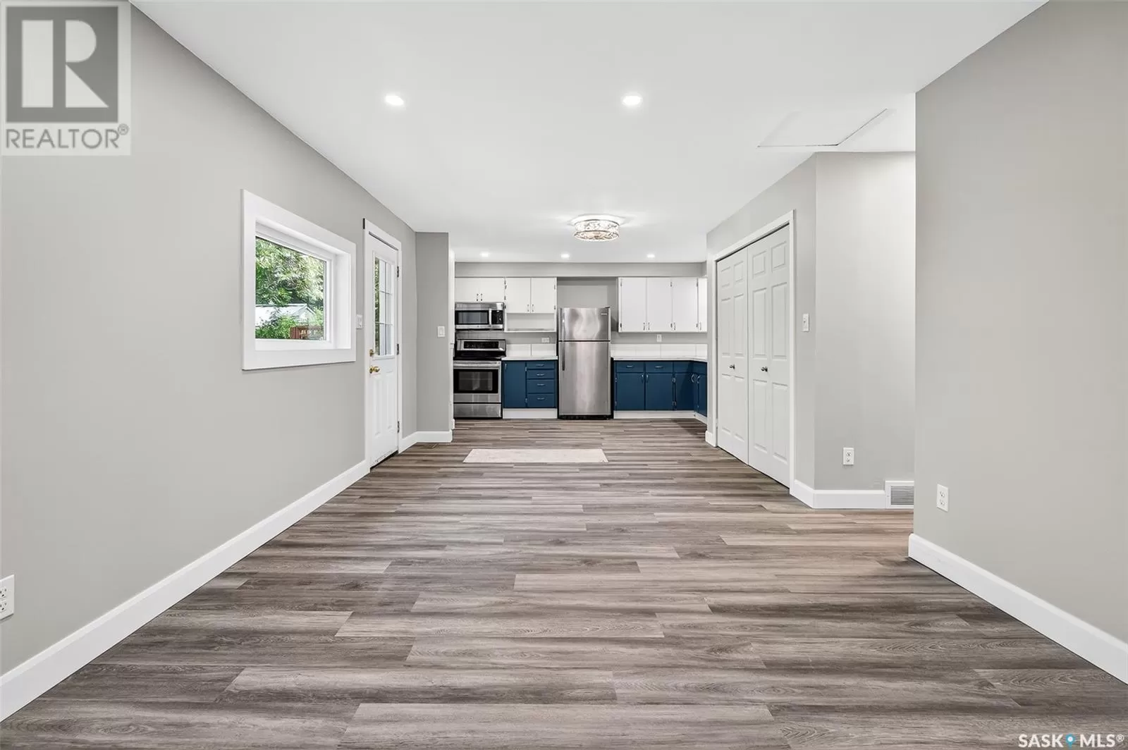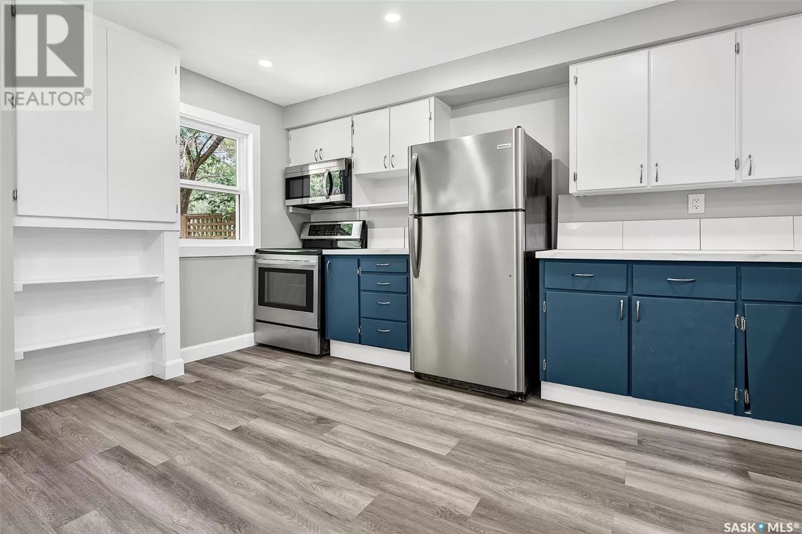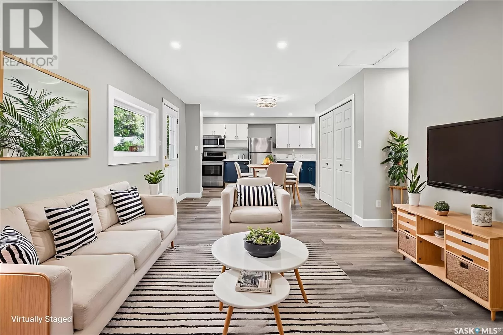 Are you looking for an updated starter home? This super cute 2 bed and 1 bath boasts just over 700 sq.ft. has just been extensively renovated. Excellent curb appeal as you pull up with one of the cutest decks! Situated on a beautifully treed corner lot! Heading in the back door you are greeted by an open concept living area with a living space to one side and kitchen on the other leaving space for a dining room in the middle. The kitchen boasts 2 tone cabinets, lots of counter space and a stainless steel appliance package. Down the hall we find 2 bedrooms as well as a stunning 4 piece bath and main floor laundry! So much work has just been done to this home - all that is left is too move in and enjoy it! Outside we have a 14'x22' garage complete with a new door and opener. You are sure to love the shade from all of the trees on your back deck or patio! So many updates just done - new appliances, new furnace, hot water tank, new bathroom, new drywall, updated electrical and plumbing, new flooring and paint throughout! If you are looking for easy and affordable living this could be the home for you! Reach out today to book your showing! (id:27476)