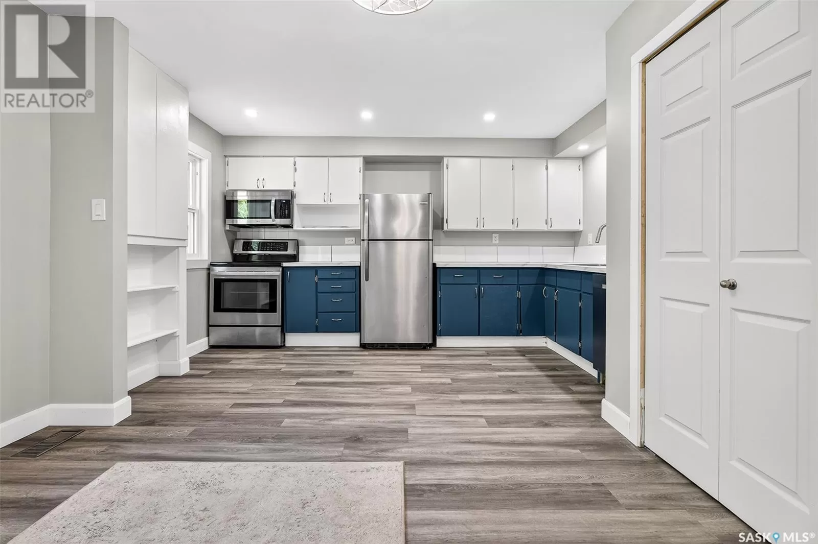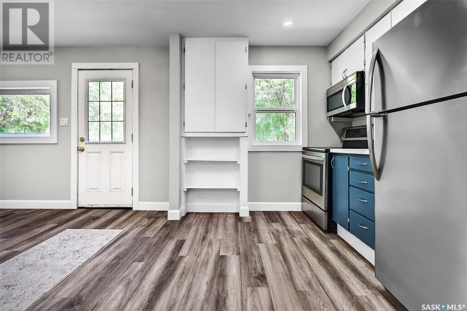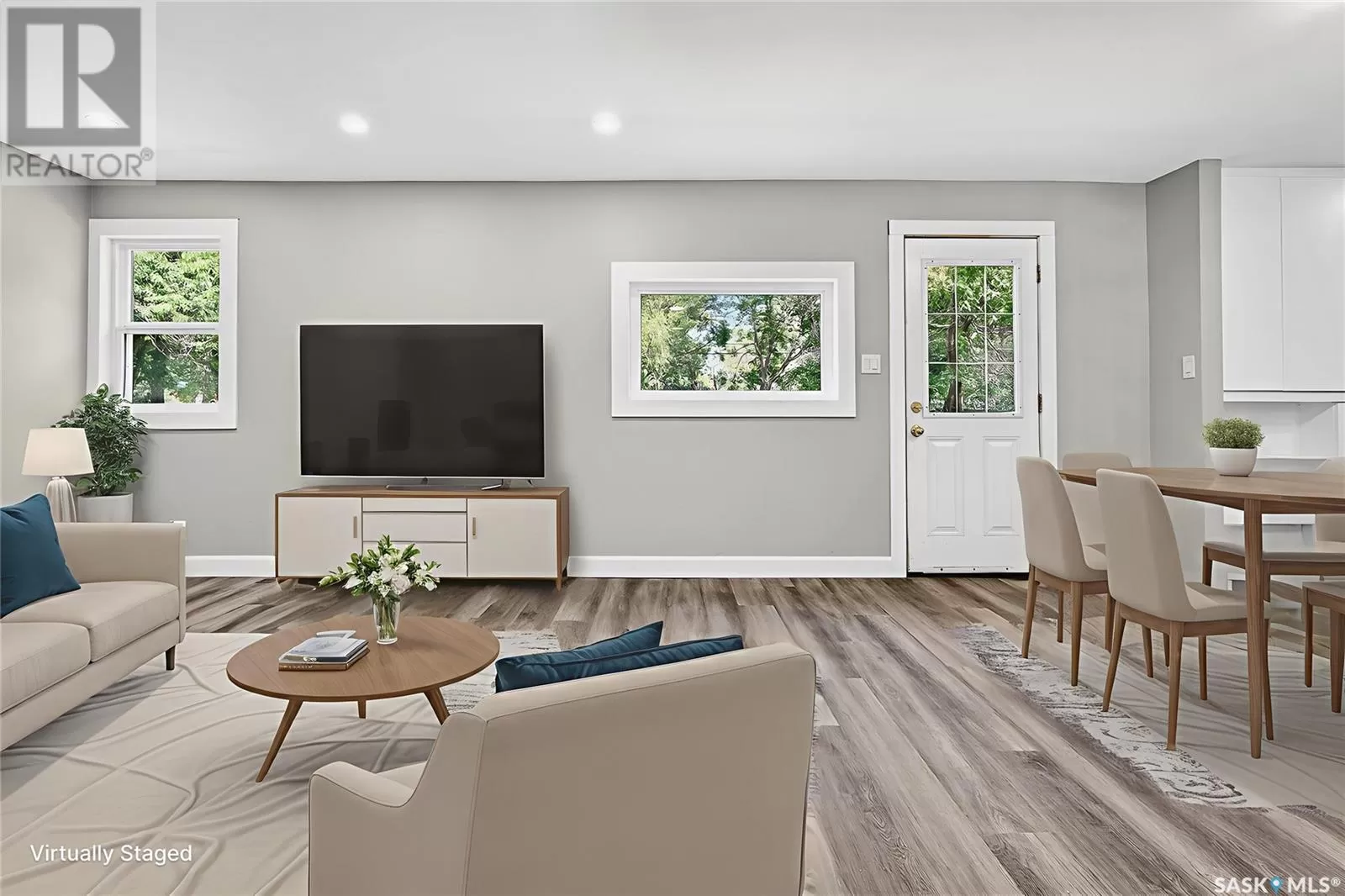 Are you looking for an updated starter home? This super cute 2 bed and 1 bath boasts just over 700 sq.ft. has just been extensively renovated. Excellent curb appeal as you pull up with one of the cutest decks! Situated on a beautifully treed corner lot! Heading in the back door you are greeted by an open concept living area with a living space to one side and kitchen on the other leaving space for a dining room in the middle. The kitchen boasts 2 tone cabinets, lots of counter space and a stainless steel appliance package. Down the hall we find 2 bedrooms as well as a stunning 4 piece bath and main floor laundry! So much work has just been done to this home - all that is left is too move in and enjoy it! Outside we have a 14'x22' garage complete with a new door and opener. You are sure to love the shade from all of the trees on your back deck or patio! So many updates just done - new appliances, new furnace, hot water tank, new bathroom, new drywall, updated electrical and plumbing, new flooring and paint throughout! If you are looking for easy and affordable living this could be the home for you! Reach out today to book your showing! (id:27476)