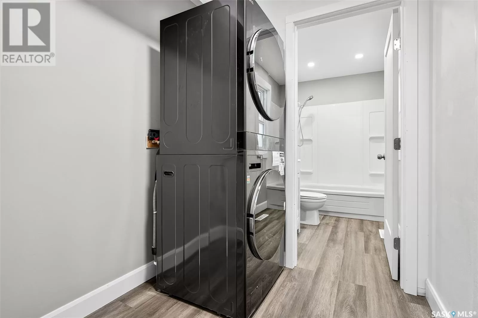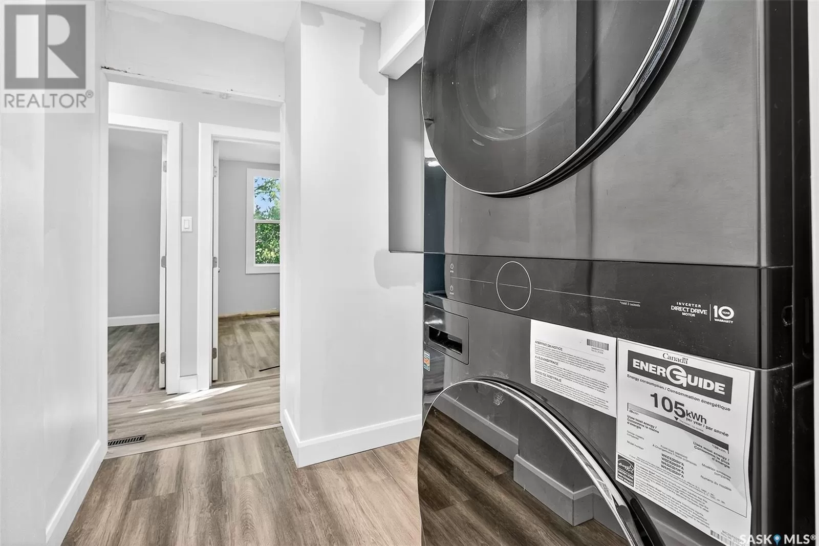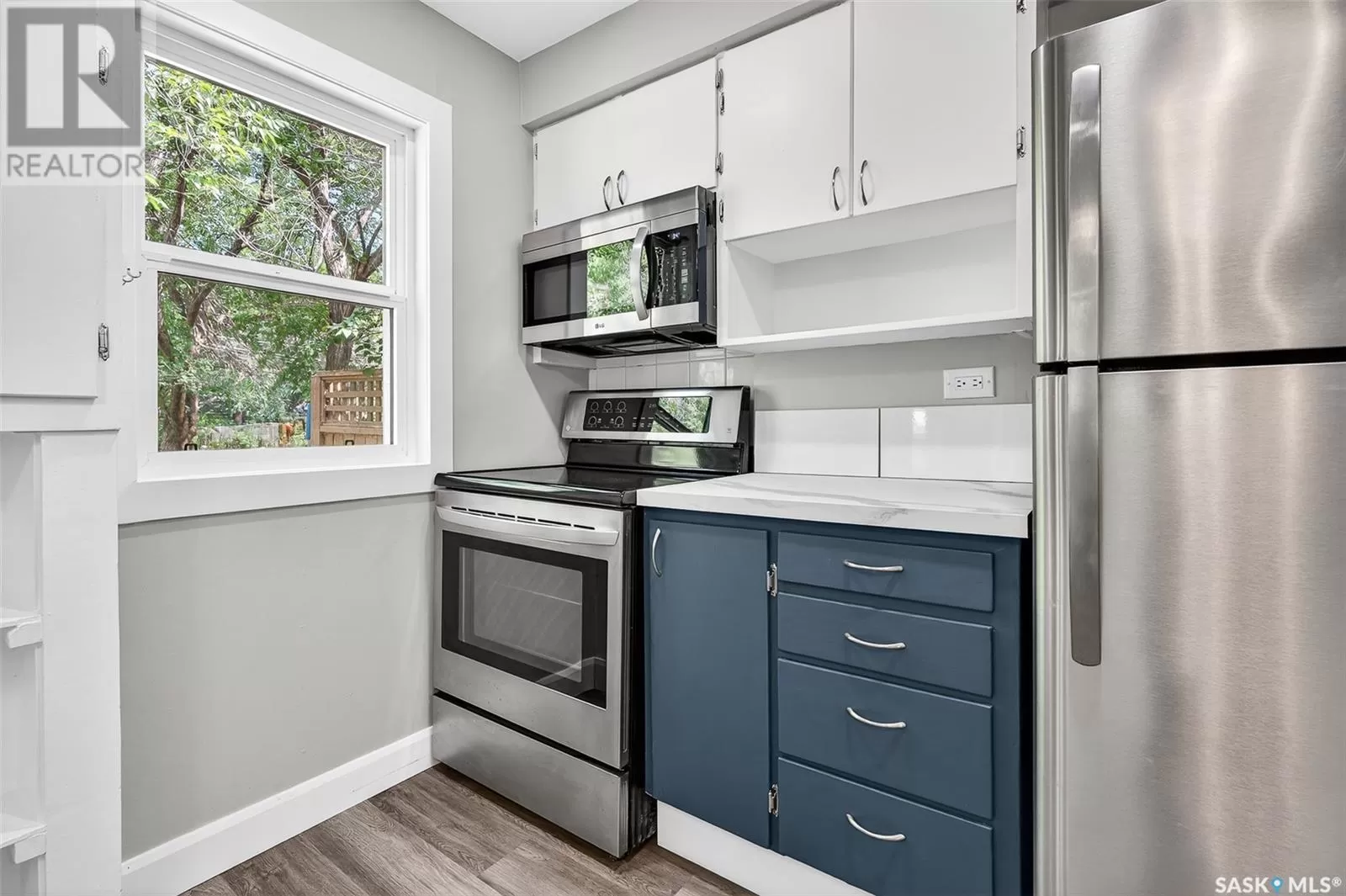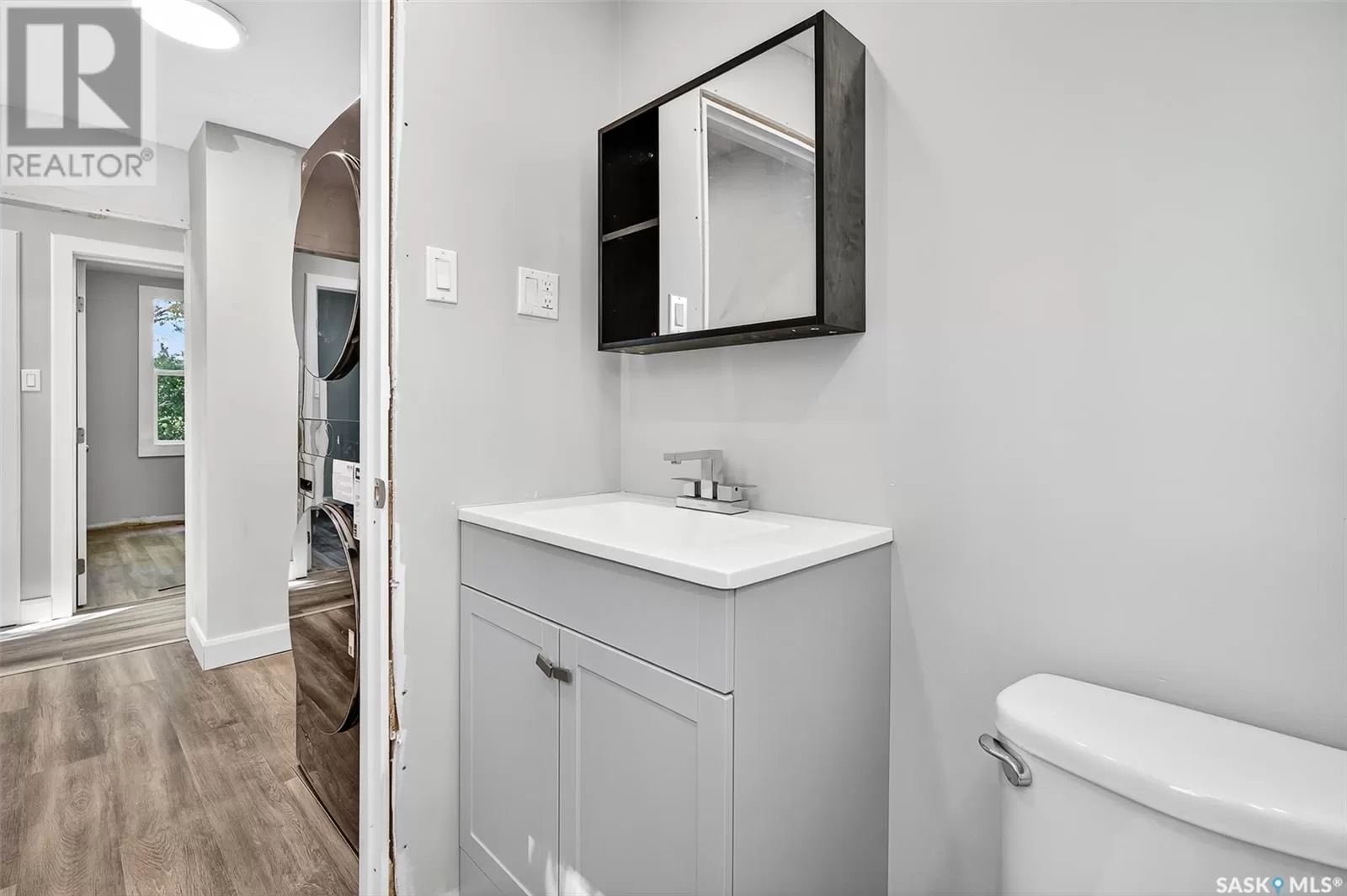 Are you looking for an updated starter home? This super cute 2 bed and 1 bath boasts just over 700 sq.ft. has just been extensively renovated. Excellent curb appeal as you pull up with one of the cutest decks! Situated on a beautifully treed corner lot! Heading in the back door you are greeted by an open concept living area with a living space to one side and kitchen on the other leaving space for a dining room in the middle. The kitchen boasts 2 tone cabinets, lots of counter space and a stainless steel appliance package. Down the hall we find 2 bedrooms as well as a stunning 4 piece bath and main floor laundry! So much work has just been done to this home - all that is left is too move in and enjoy it! Outside we have a 14'x22' garage complete with a new door and opener. You are sure to love the shade from all of the trees on your back deck or patio! So many updates just done - new appliances, new furnace, hot water tank, new bathroom, new drywall, updated electrical and plumbing, new flooring and paint throughout! If you are looking for easy and affordable living this could be the home for you! Reach out today to book your showing! (id:27476)