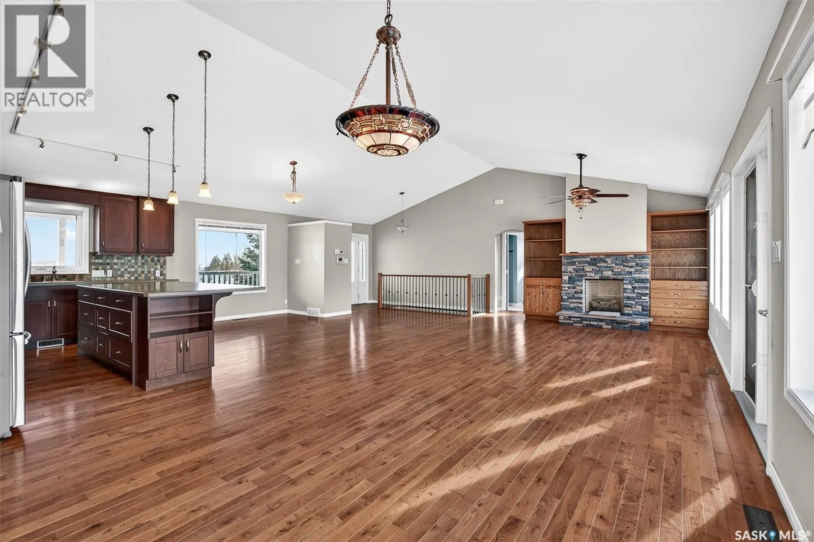 Welcome to country living on the edge of the Village of Mortlach! This home is East facing with a sunrise view of pasture & open fields from your front veranda while you sip your morning coffee! This spacious Bungalow sits on a large lot & just feels like âhomeâ. The main Living Area is open concept & is anchored with a gas fireplace on one wall & stunning Kitchen at the opposite end. The Kitchen is well appointed with ample cabinetry, large island, gas range & a walk-in Pantry (noted in room sizes as âotherâ). The space allows room for a formal Dining Area along the wall of windows & space for a breakfast nook overlooking the front deck. At one end of the main floor is the Primary Suite with garden doors to separate deck, a walk-in closet & Ensuite with separate shower, jetted tub & heated floors. At the opposite end of the home, you will find a Mudroom with 2 pc Bath & Laundry adjacent to the attached heated double Garage (man doors at 2 sides for easy access to a fenced area perfect for dog run). The lower level is finished with options for more living space with a Family Room, 2 Bedrooms, 4 pc Bath & 3 other rooms that could be utilized as office, craft/hobby space, home gym or whatever suits your needs best! You will love the in-floor heat in basement & garage! Outside is a shed that would work well for a potting shed or playhouse! Come discover what this home has to offer along with the amenities the Village of Mortlach provides including K-12 school (steps away!), post office, rink, spray park & golf course along with small town hospitality! (id:27476)