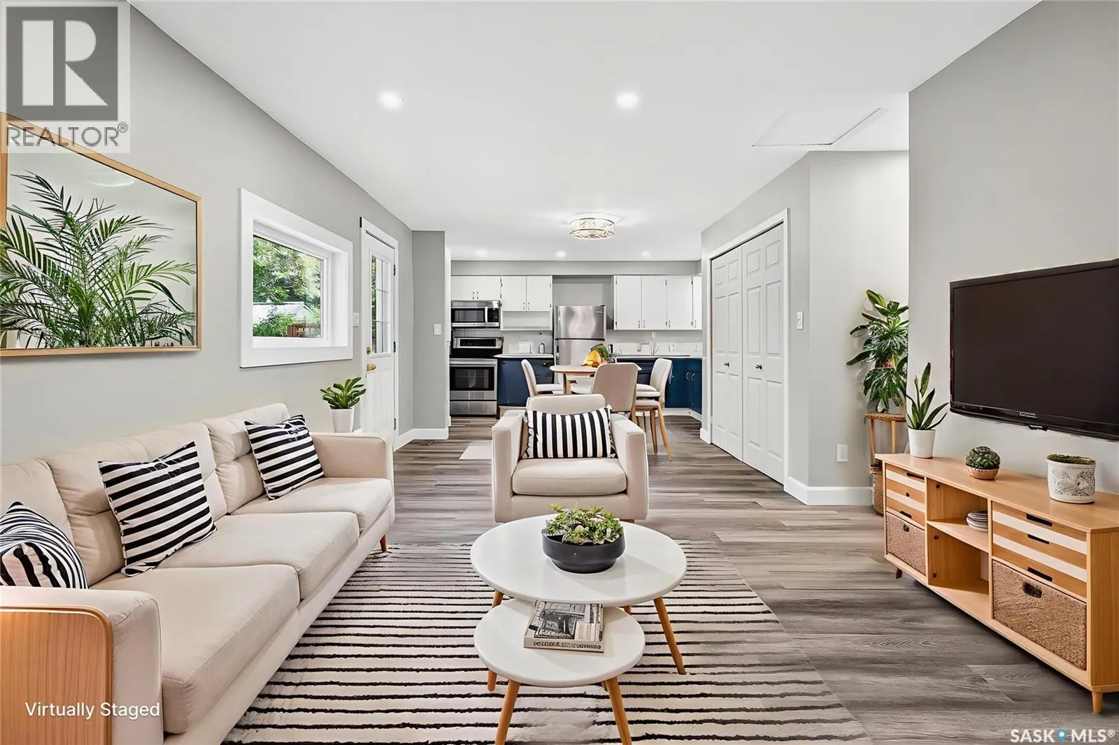Are you looking for an updated starter home? This super cute 2 bed and 1 bath boasts just over 700 sq.ft. has just been extensively renovated. Excellent curb appeal as you pull up with one of the cutest decks! Situated on a beautifully treed corner lot! Heading in the back door you are greeted by an open concept living area with a living space to one side and kitchen on the other leaving space for a dining room in the middle. The kitchen boasts 2 tone cabinets, lots of counter space and a stainless steel appliance package. Down the hall we find 2 bedrooms as well as a stunning 4 piece bath and main floor laundry! So much work has just been done to this home - all that is left is too move in and enjoy it! Outside we have a 14'x22' garage complete with a new door and opener. You are sure to love the shade from all of the trees on your back deck or patio! So many updates just done - new appliances, new furnace, hot water tank, new bathroom, new drywall, updated electrical and plumbing, new flooring and paint throughout! If you are looking for easy and affordable living this could be the home for you! Reach out today to book your showing! (id:27476)