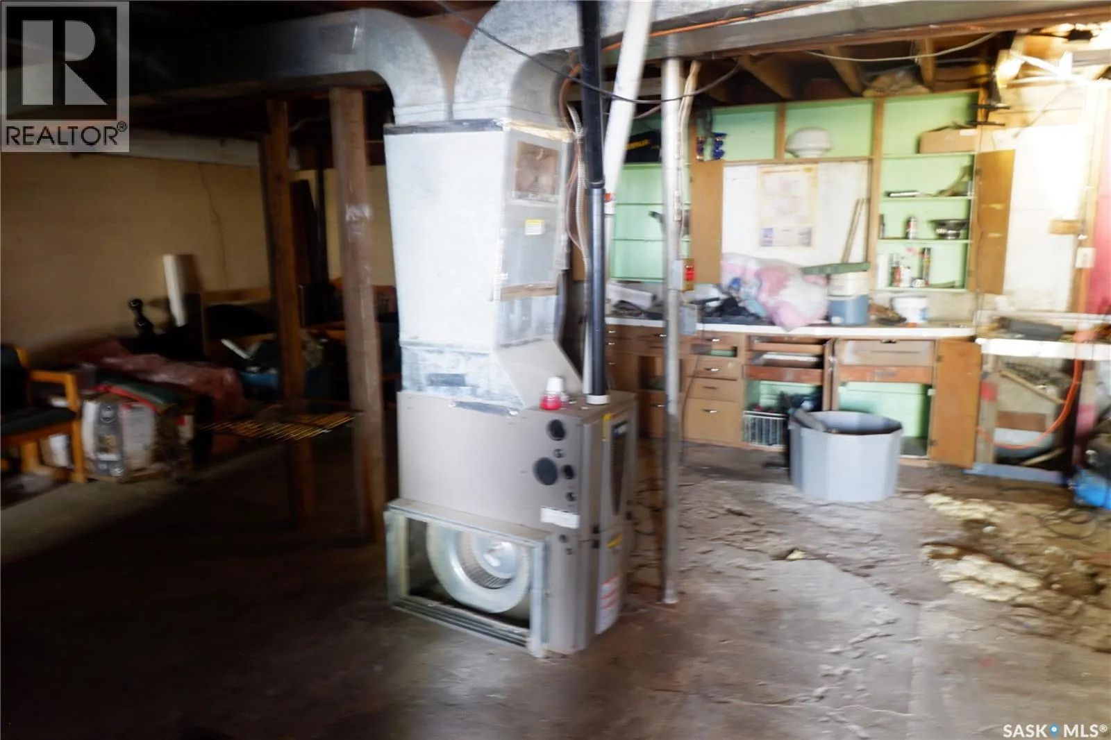 Located in the Town of Mossbank in a great location. Check out this great bungalow with a walk-out basement! There is a side porch used for storage and a front porch great for a boot-room. Enjoy the convenience of main floor laundry or leave it in the basement - your choice! The kitchen has lots of counter space and a spot for a small table. The living room has lots of natural light through the large windows. The two bedrooms are a nice size - lots of room for your furniture. The bathroom has a full tub/shower. The basement is unfinished and has a newer natural gas forced air furnace. There is also a laundry room down there and lots of storage. And the convenience of a walk-out. The unique building in the back is actually an old well. Lots of room to add a garage or a large garden. Check out this awesome property today! Mossbank has lots to offer with the John Deere dealership - bar with great food, accounting office, insurance office with SGI drivers renewal options, a general store, a unity library, a skating rink/curling rink with brand new ice equipment - and lots more! (id:27476)
