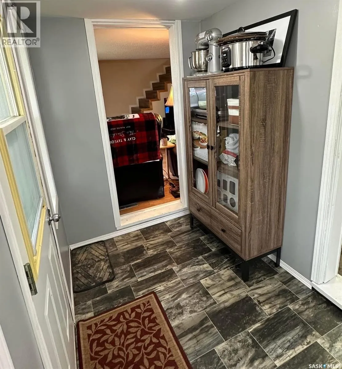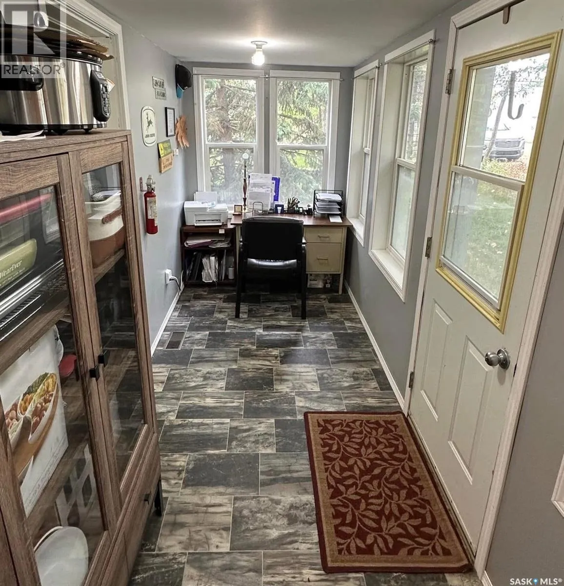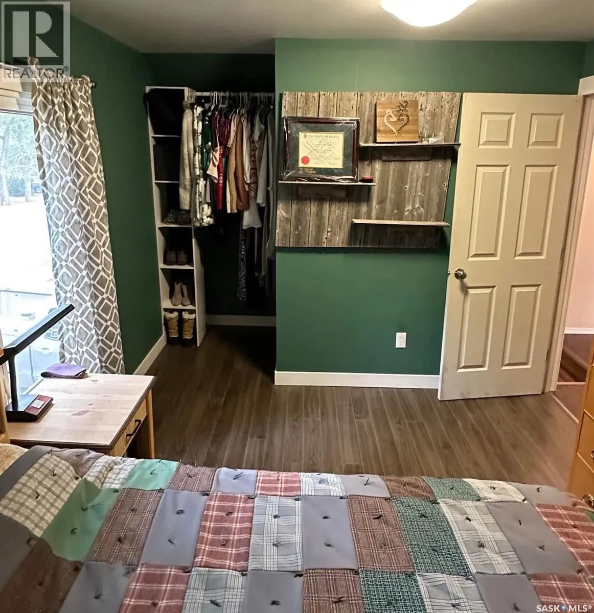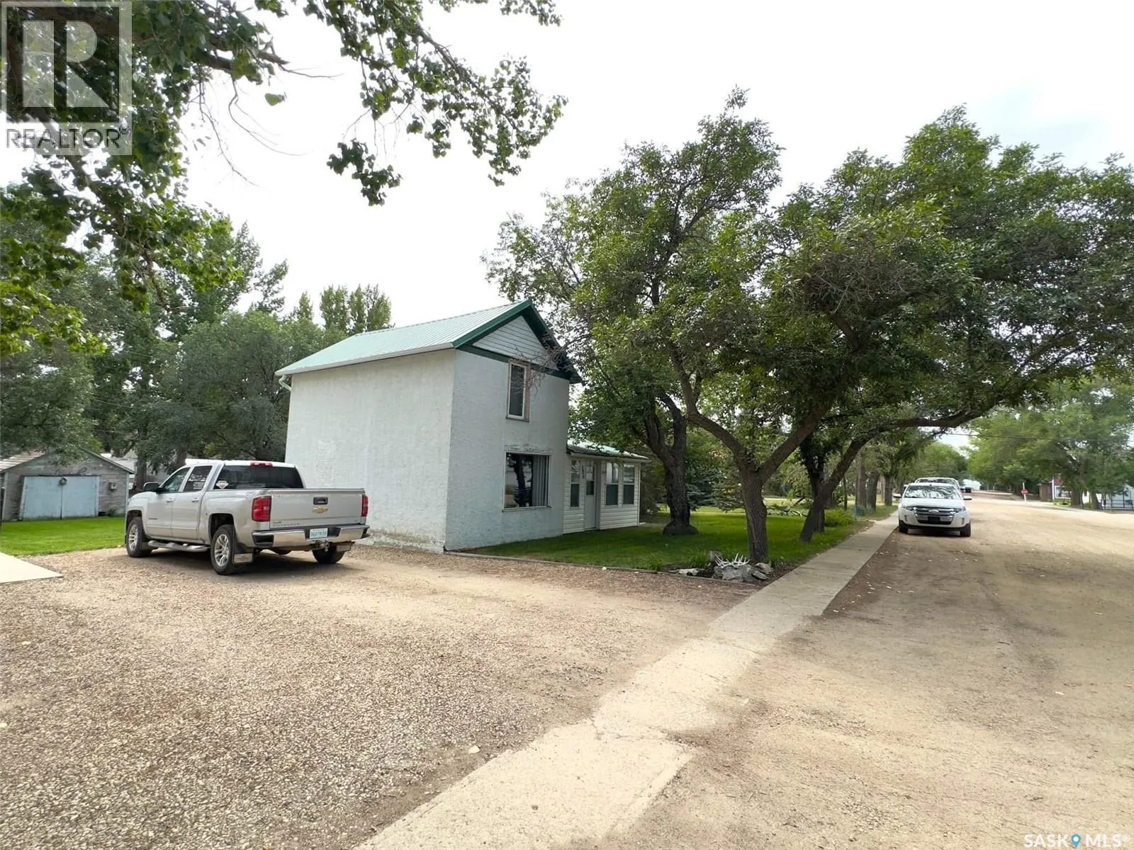 Why rent when you can purchase this affordable home! Available in the Town of Mossbank, this upgraded home offers practical amenities and comfortable living spaces. Main floor laundry is conveniently located by the back entrance, and a freezer is included with the property. The residence features updated flooring throughout, including both vinyl plank and laminate. The front porch has been converted into a functional office space, while the spacious living room benefits from ample natural light. Upstairs, there are two bedrooms. The basement contains the utility room and offers substantial storage capacity. Upgraded vinyl siding and vinyl windows improve energy efficiency. The Landscaped grounds include an extended patio area designed for outdoor relaxation. A versatile storage shed provides space suitable for vehicle storage if required. Off-street parking is available on a gravel driveway, ensuring convenient access to both entrances. This property presents an excellent opportunity for prospective buyers. Come have a look! (id:27476)