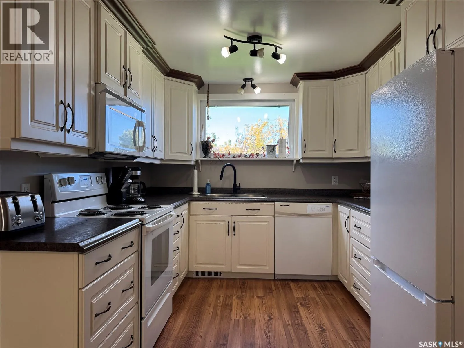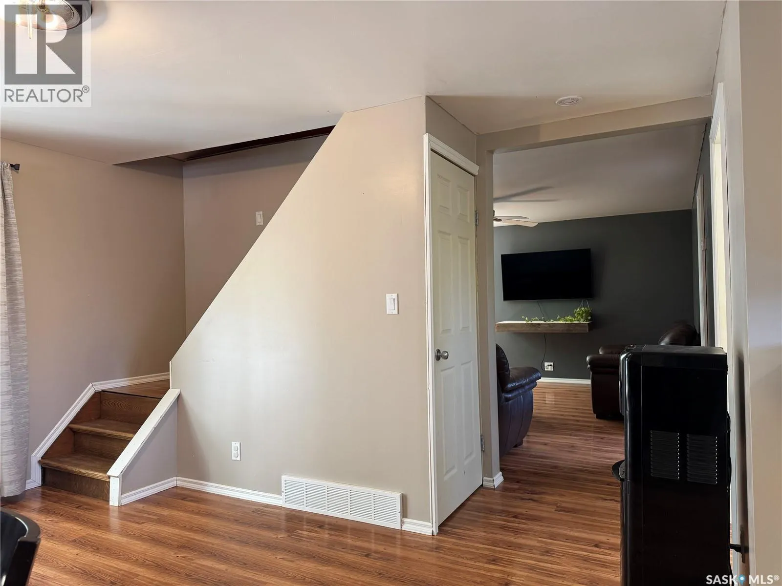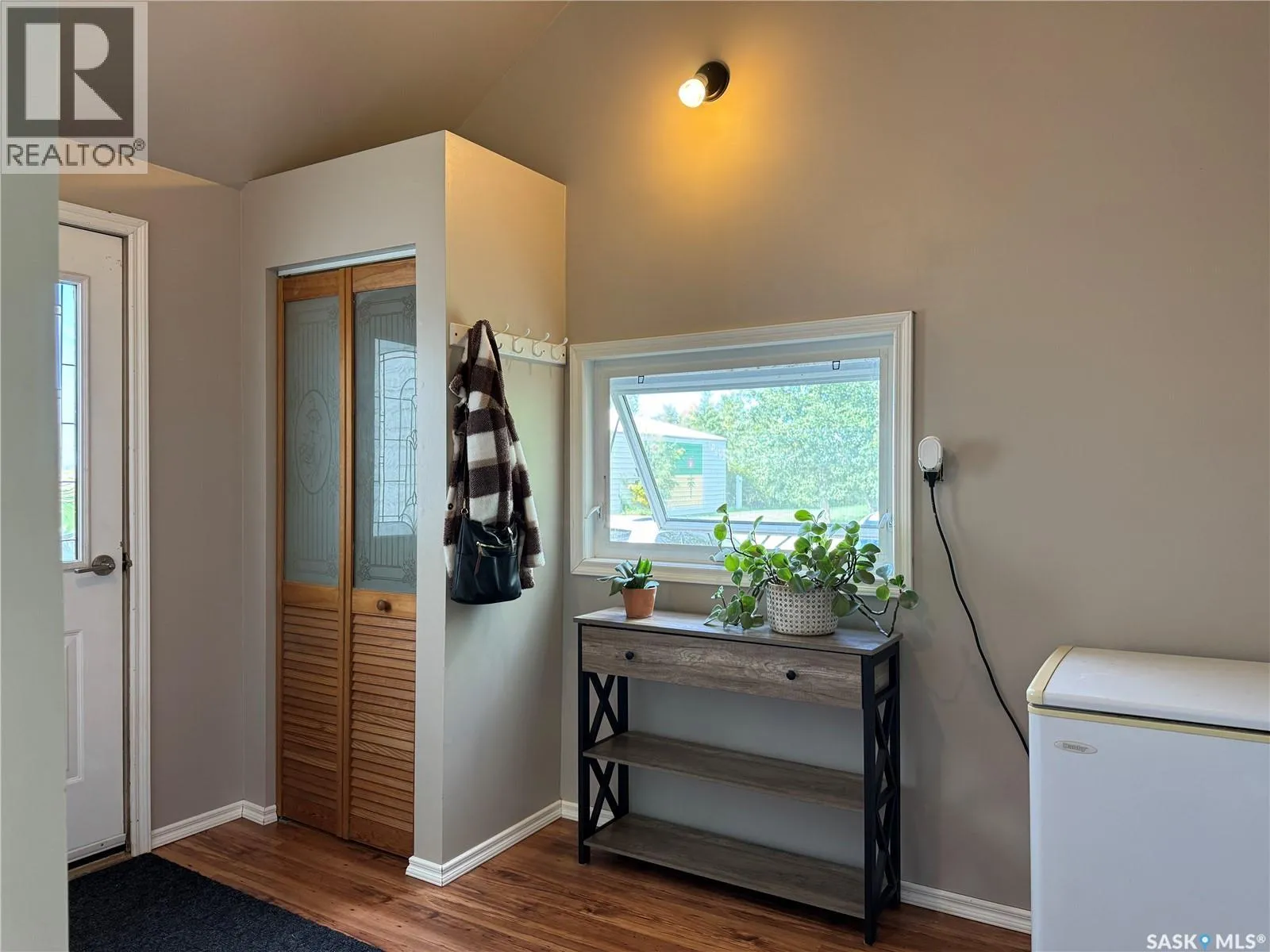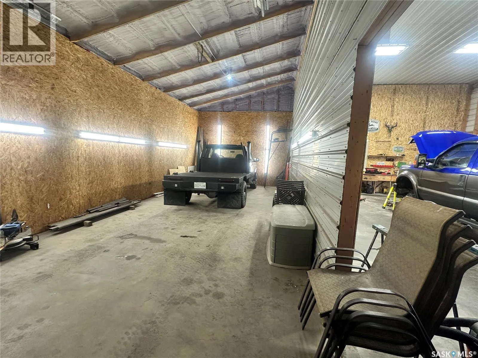 This charming acreage offers peaceful rural living just 5 km from the amenities of Raymore and within commuting distance to the Jansen Mine. Nestled in a mature and partially treed yard, the home features a bright and functional main floor with an open kitchen and dining area, a full bathroom with great storage, a cozy bedroom, and a welcoming living room that opens to a sunny south-facing deckâperfect for your morning coffee or evening unwind. Enjoy double-deck access with an additional deck off the dining room, and a large porch area with plenty of space to kick off your boots and settle in. Upstairs, youâll find a spacious bedroom with access to its own private upper south-facing deck. Adjacent is a versatile bonus roomâcurrently used as a walk-in closetâthat could easily be transformed into a den or office with beautiful views of the property. The basement is unfinished, offering potential for further development or storage. Outside, the property features a 56' x 40' heated shop with spray foam insulation, a 200 AMP electrical panel, an air compressor, and a mezzanine area for additional storage or workspace. The yard is a peaceful retreat with established trees offering privacy and shade, a large garden area perfect for growing your own produce, and new tree growth beginning to flourish along the west sideâadding future shelter and natural beauty to the landscape. (id:27476)