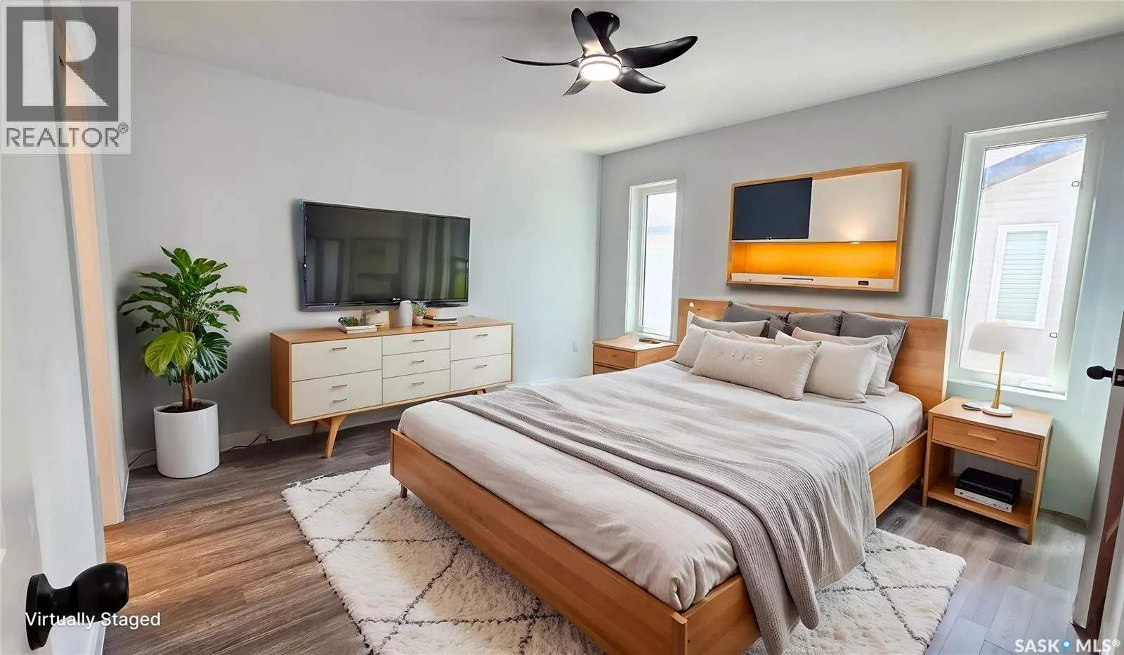 Discover this stunning new build and enjoy modern living in this brand-new home, ideally situated on a desirable corner lot in the charming Village of Muenster. Built with an ICF basement, eye catching design and an open floorplan, this home offers both durability and comfort. The seller will complete the double attached garage, siding, concrete driveway, and walkwayâall included in the purchase price. The main floor showcases a functional and stylish layout, featuring three well-appointed bedrooms and a four-piece bathroom. The primary bedroom offers added functionality with its three-piece ensuite and walk-in closet. A bright and inviting kitchen boasts quartz countertops, a walk-in pantry, and a central islandâperfect for meal prep and entertaining. Families will appreciate the convenience of a mudroom/laundry space located at the garage entrance. Throughout the main floor, sleek vinyl plank flooring provides durability and contemporary appeal. Additional highlights include a covered front entry, vaulted ceilings, central air conditioning, an air exchanger, a tankless water heater, high-efficiency furnace, triple-pane windows, and energy-efficient LED lighting. Located just five minutes from Humboldt, Muenster is a quiet yet thriving community featuring a K-12 school, St. Peterâs College, a hockey arena, ball diamonds, and more. This property is also just 30 minutes from the BHP Jansen mine. Donât miss this incredible opportunityâschedule a showing today! (id:27476)