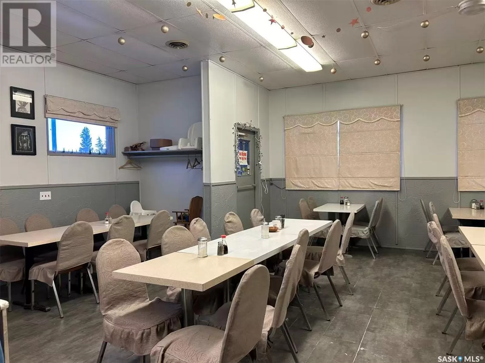 Parcel 203906572 Turnkey restaurant with attached residence in the heart of Neilburg, SK. 2340 sqft commercial space with full kitchen and equipment, plus 660 sqft 2-bed, 1-bath living quarters with separate entrance. Located on Hwy 40, the only Chinese/Western restaurant in town with strong local and regional customer base. Walking distance to all amenities including school, CO-OP, SGI, and bank. Includes liquor license (optional to renew), walk-in cooler, freezers, and more. Ideal for owner-operator seeking stable income and affordable living in a friendly, well-serviced rural community. (id:27476)