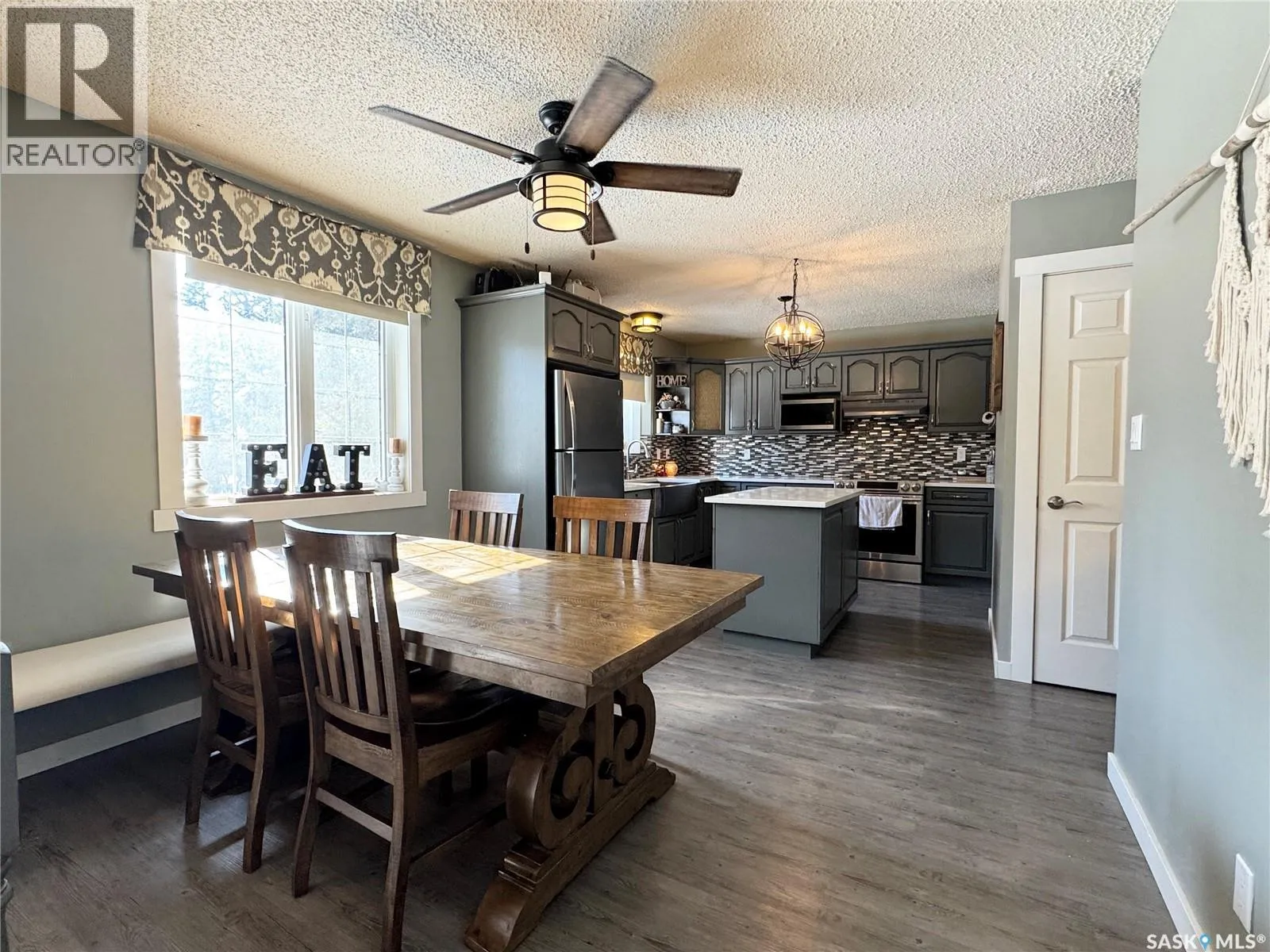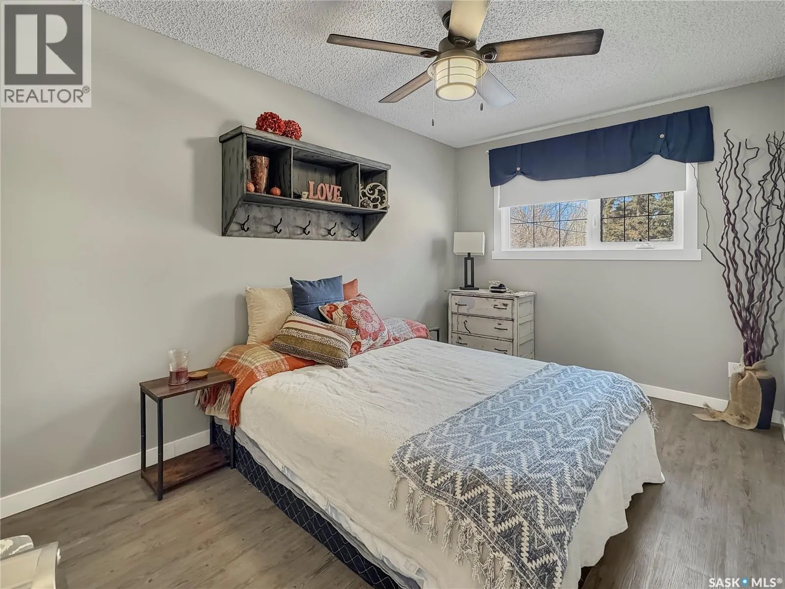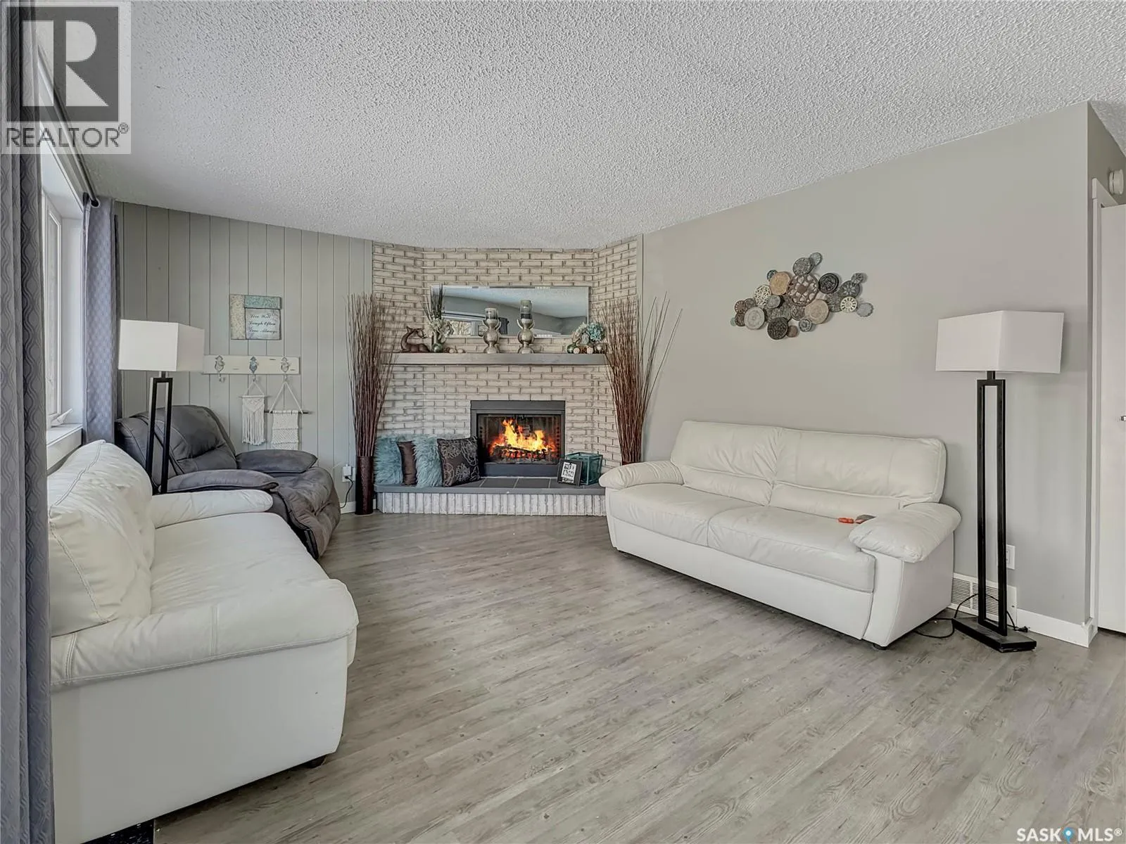 Charming 1978 family home offering 1,120 sq ft in a quiet, friendly neighborhood just a short three-minute walk to the school. This move-in-ready property features five bedrooms and two bathrooms, making it an ideal fit for a growing family. The main floor offers three bedrooms, a four-piece bathroom, and a spacious kitchen with abundant cabinetry, quartz countertops, a central island, updated appliances, and modern fixtures. Vinyl plank flooring runs throughout the main level, and the bright living room is anchored by a cozy wood-burning fireplace. The fully finished basement provides additional living space with a comfortable family room, two more bedrooms, a three-piece bathroom, and a large laundry area complete with a folding table. This versatile space could also function as a home office, workout area, or extra storage. Outside, the fully fenced backyard features a generous deck for outdoor enjoyment, while the insulated and heated attached garage is conveniently connected to the home by a breezeway. Well maintained and truly turnkey, this home is ready for its next family to move in and enjoy. (id:27476)