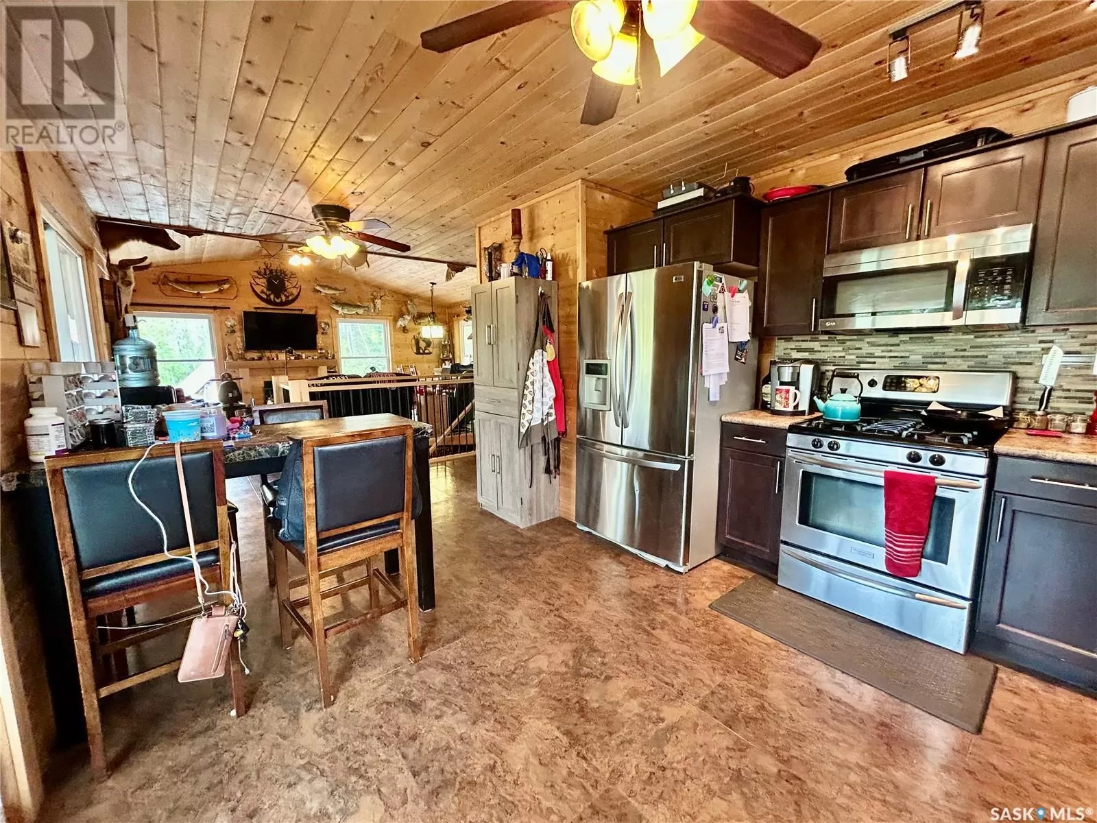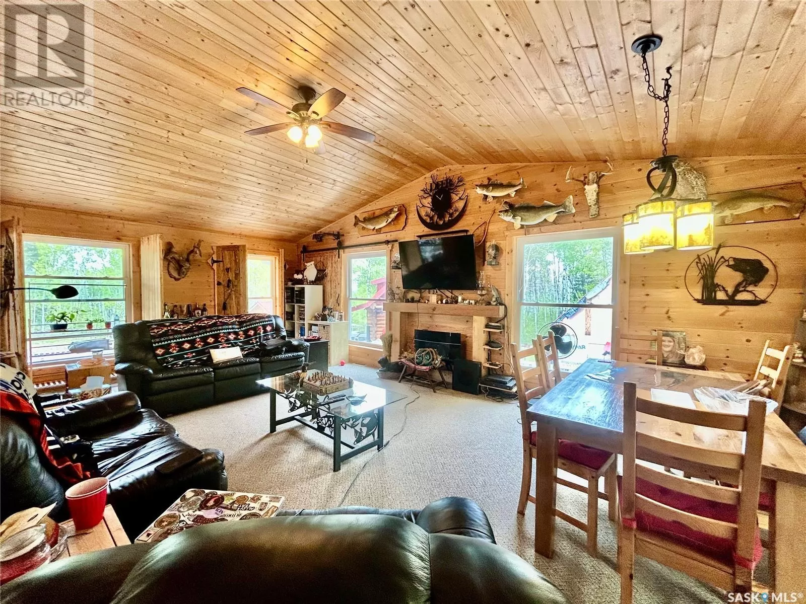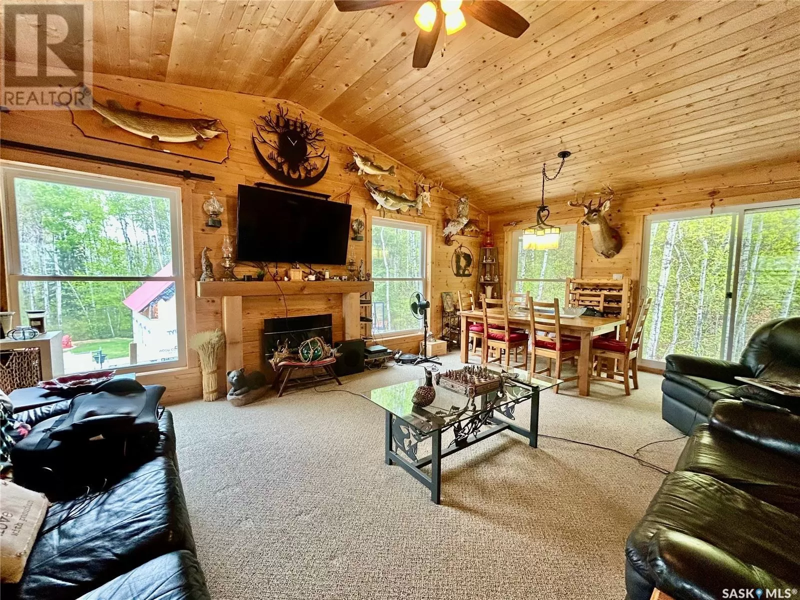 Lot 9, Block 2, Plan 82PA07324 (Gingera Subdivision) Welcome to this incredible 2-story walkout cabin located in the desirable Gingeras Subdivision on Tobin Lakeâfamous for its world-record walleye fishing. Whether you're looking for a year-round home or the perfect recreational getaway, this beautifully designed 2-story walkout cabin offers the perfect blend of rustic character and modern convenience. Step inside to a large, welcoming entrance that leads up into a bright open-concept living space. This is truly the ideal place for both relaxing and entertaining. The heart of the home features a spacious kitchen, dining, and living area, framed by two sets of patio doors that open onto a large deck with incredible lake viewsâthe perfect spot to enjoy your morning coffee or evening sunsets. The main floor also includes the primary bedroom, a full bathroom, and main floor laundry for everyday convenience. Downstairs, youâll find three more bedrooms, (one is currently being used for storage and another as an office/craft room), a second full bath, ample storage, and direct access to the attached garage. The outdoor space includes a hot tub area, and a huge driveway with plenty of parking for RVs, boats, vehicles, and toys! Additional features include natural gas heating, an electric fireplace, treated well water, a security camera system, boosted cell service, a garden plot, and beautifully crafted rustic-modern interior finishes. This is a rare opportunity to own a spectacular cabin in one of Saskatchewanâs most sought-after recreational communities! (id:27476)