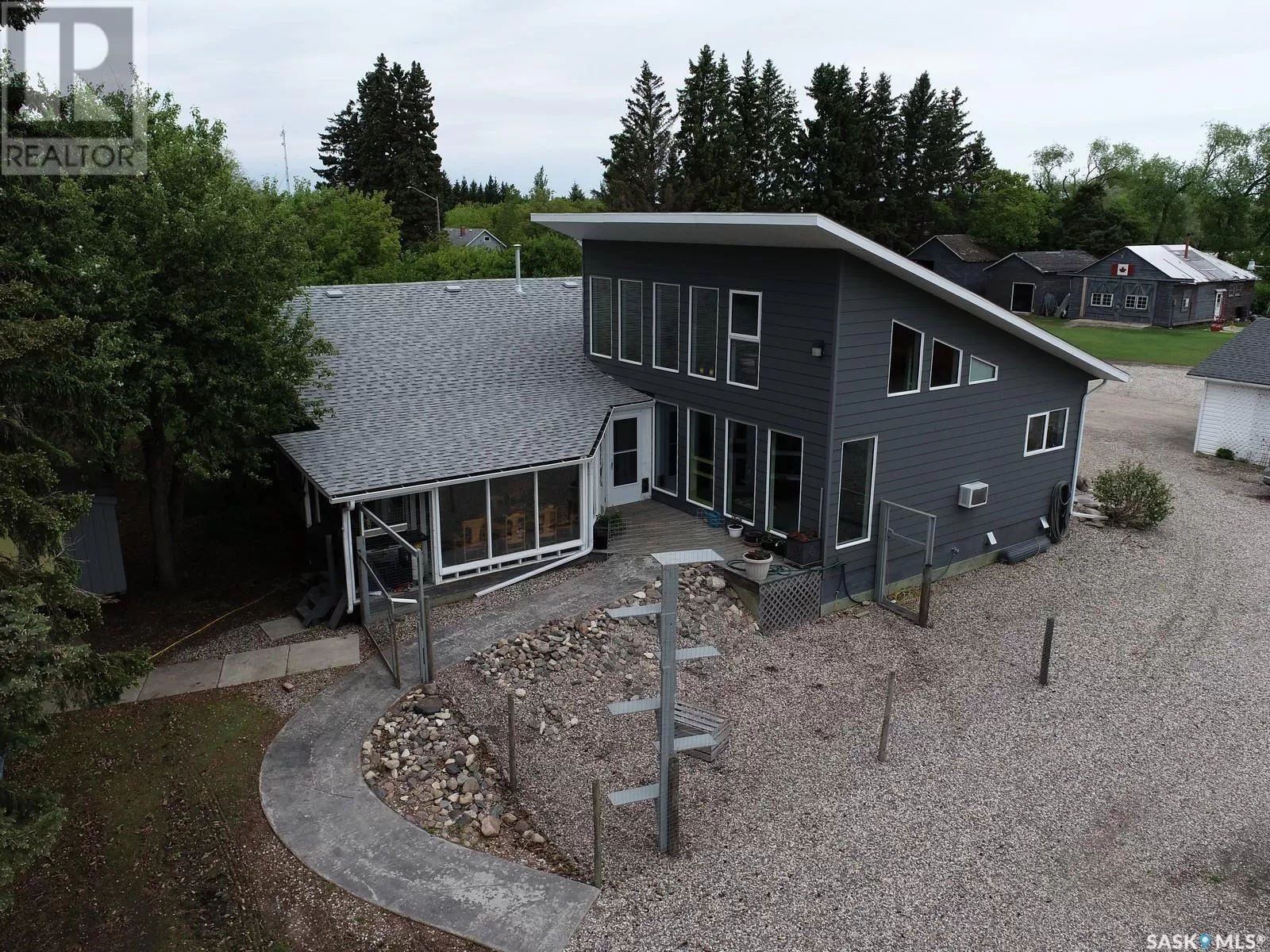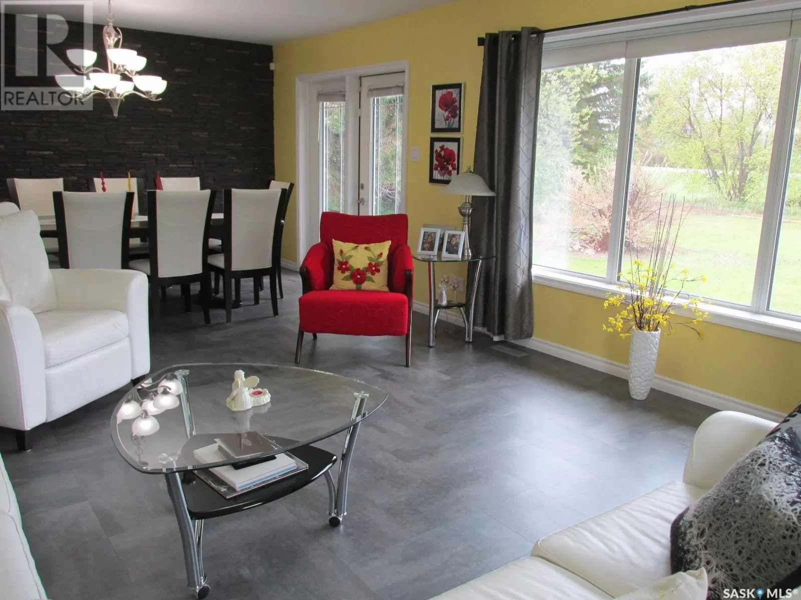 This immaculate 2176 sq ft home has undergone extensive renovations with an addition in 2011 and features a beautiful open concept design with large windows and a loft. Great entry space. Large recreation area flows into the kitchen/dining and another living room. Laundry on the main floor, an office, 2 bedrooms up and 2 down. Furnishings negotiable. Outside you will find a double garage, shop, Quonset and several other outbuildings. There are wheel chair accessible ramps on both sides of the house. There is covered deck and the garden area. Some of the most recent updates include the shingles & furnace. Property is on 13.01 acres and is located just across from Codette with access off the paved highway, with the benefit of municipal sewer! Water supply is a private sandpoint well. Property is about 10 min to Nipawin, about 12km to Smits Beach, 33 min to Tobin Lake. North East Saskatchewan is known for great fishing and hunting. Come and enjoy the great outdoors! (id:27476)