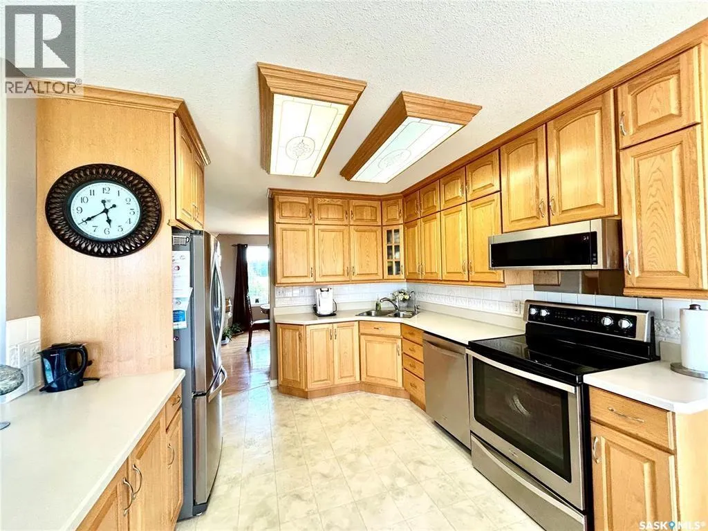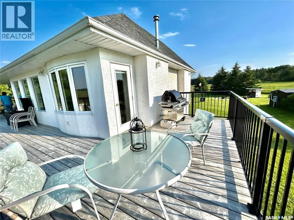 Welcome to the Eberle acreage! It is nicely situated in a prime location near Tobin Lake Resort (10 kms), Gingera Resort (2 kms) as well as the town of Nipawin (19 kms). This one of a kind acreage offers a rare opportunity for a variety of uses including as a vacation paradise, farm operation, or a serene residential retreat. The price for this acreage includes an approximately 13 acres of a well manicured subdivision, to be completed, along with this beautiful 2500 sqft, 2 story home. This house has impressive curb appeal on the exterior and high end finishing on the interior. There are 3 bedrooms, 3 bathrooms as well as an attached heated 2 car garage. There are large entrances for your convenience and central air for your comfort. The building is set on an ICF foundation with a stucco exterior and high roof lines for great appeal. Sit on one of the decks with your morning coffee or bbq for your guests! The views of the beautiful yard are amazing! Amenities abound with an 18 x 60 heated shop complete with mezzanine, washroom, laundry hook-ups, a concrete floor, powered by ample electrical service and featuring an overhead door. Adjacent is a 40 x 60 attached cold storage building standing 20 feet high, equipped with a sliding door, plus an 18 x 60 cold storage lean-to with another sliding door. Full RV hook-ups, including 30-amp power, cater to outdoor enthusiasts. Further enhancing the property's appeal are additional amenities like a 28 x 40 storage building, perfect for smaller equipment and toys. This property has a 52 ft well that services the house and shop, as well as septic with pump out at the house and shop. There are two beautiful garden spaces too. There are too many amenities on this property to mention. The owners will sell the whole farm package which includes 184 (approx) acres of quality farmland to bring the total acreage to 200 acres (approx). 184 acres of this land is currently rented. There are many options available on this property! (id:27476)