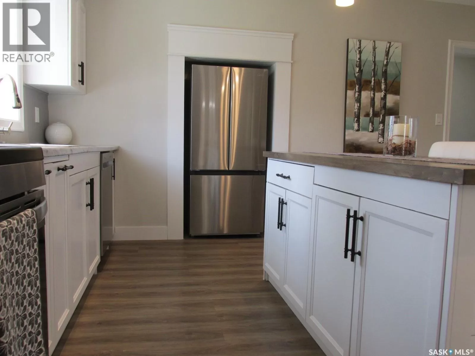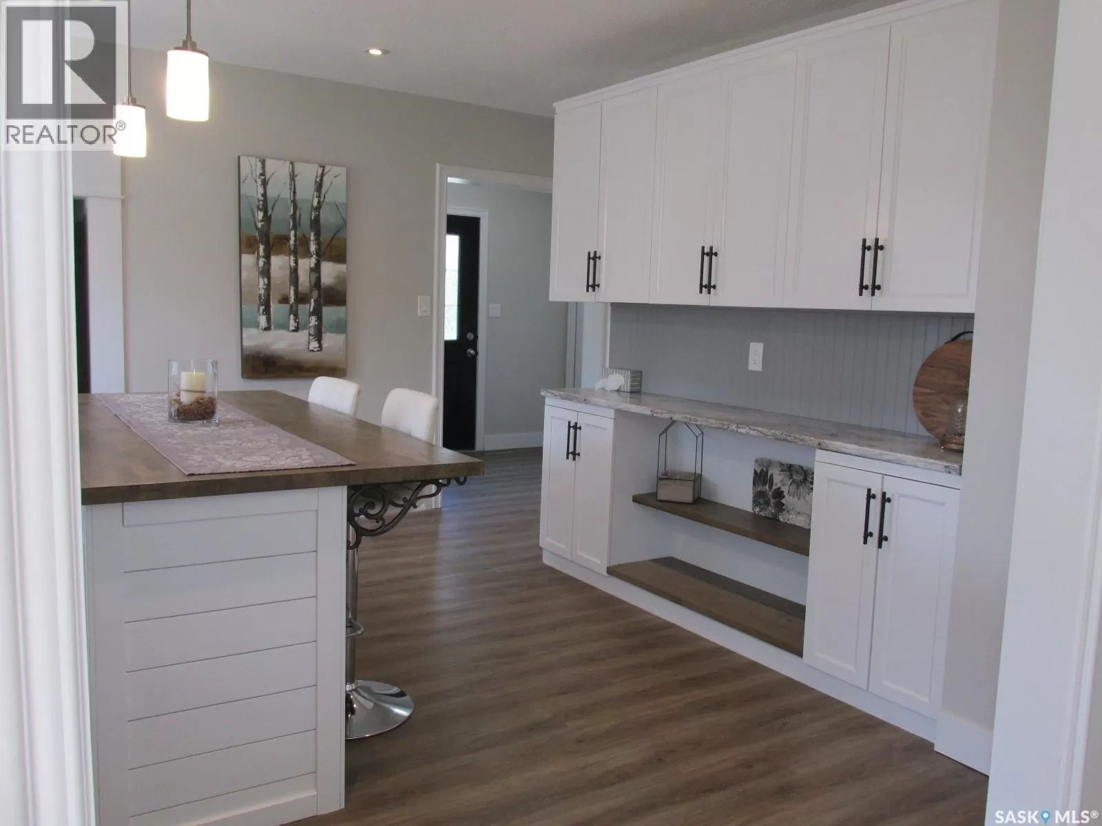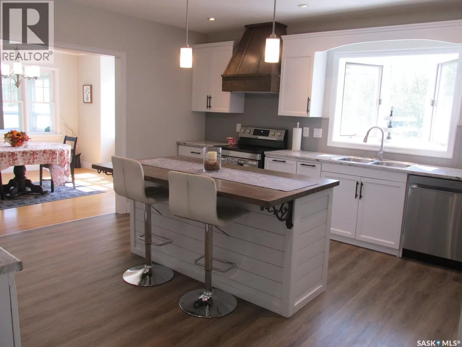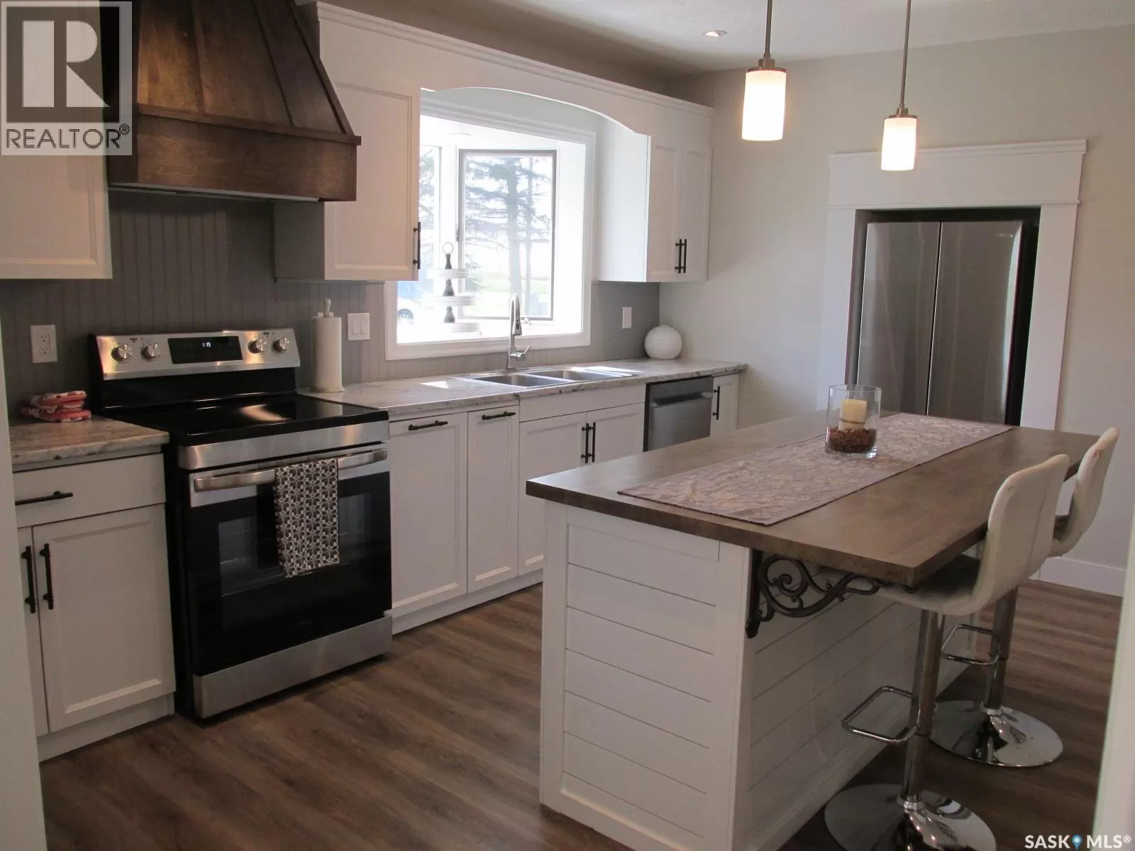 This beauty character home has been remodeled with the new kitchen and new wiring with 200A panel, updated bathroom and paint, new vinyl plank flooring and rejuvenated hardwood, and much more. Standing tall, this beautiful 1.5 storey 1646 sq ft home features 4 bedrooms, with 1 bedroom being on the main floor and 3 upstairs. As you walk into the home, it welcomes you with a nice entry and main floor laundry off to the side, and leading to a gorgeous new kitchen with a great kitchen island! Kitchen offers abundance of cupboards and brand new stainless steel appliances! There is a dedicated dining room off the kitchen and flows nicely into a living room. There is the sunroom to sit and enjoy your morning coffee or for relaxation! Bathroom features the double sinks for the busy family. This home is filled with character while offering modern finishes. There is a 24x24â detached garage, plus a large quonset for all your storage needs. Great well treed yard! This property is located just 1.5 miles South of Codette, 11 min to Nipawin and 12 min to Smitâs beach! If you like the outdoors, this might be an opportunity for you â North-East Saskatchewan is known for great fishing, hunting, snowmobiling and more! Ready for a move? Phone today! (id:27476)