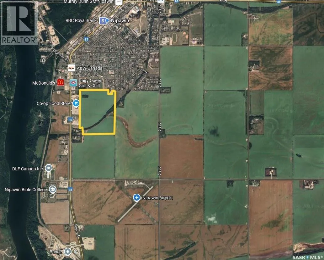 South end of Nipawin on Hiway 35 125 acres of land on the south side of Nipawin along Highway. 35. 61 of the acres is in the RM of Nipawin and 64 acres are in the town limits. Renter farming this parcel says 104 acres are cultivated. The assessed value of $99,500 is for the 61 acre portion only. and it is soil class E. The 64 acres within town limits is zoned C1 and property taxes are paid to the town, 2024 taxes are $1085.00 (town) and $590.00 (RM) The 64 acres portion in the town limits is adjacent to the Coop store, Tim Hortons, Nipawin Vision Centre, Dairy Queen and is just across the highway for the MacDonald's. (id:27476)