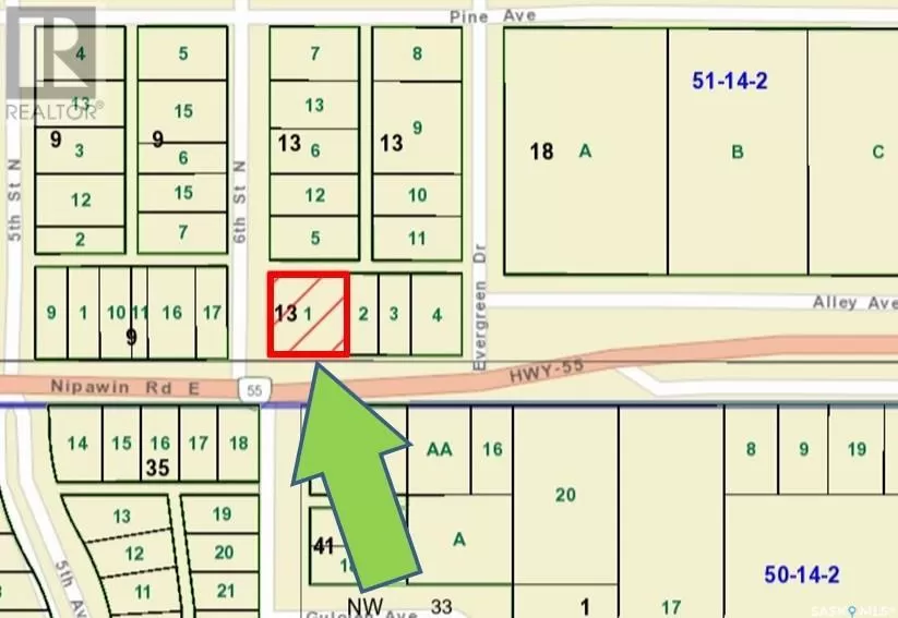 PRIME HIGHWAY COMMERCIAL vacant lot on Nipawin Road East / HWY 55 with 120 ft frontage on the East âgatewayâ to Nipawin! Lot size is approx. 120x127.8â (0.35 acres). Located near the road to the Evergreen center, hotel and the golf course, and is kitty-corner from the gas station. Zone C2 â (C2 â Highway Commercial â more in the Zoning Bylaw). Seller states GST doesn't apply to the sale price. Buyer is required to complete construction within 2 years of purchase. Building permit is required. Town of Nipawin incentives might be available, conditions apply. Property taxes to be assessed. Nipawin and area are known for great fishing, hunting and the great outdoors. Bring your business to Nipawin! Adjacent lot is also for sale â see listing SK967659 (id:27476)