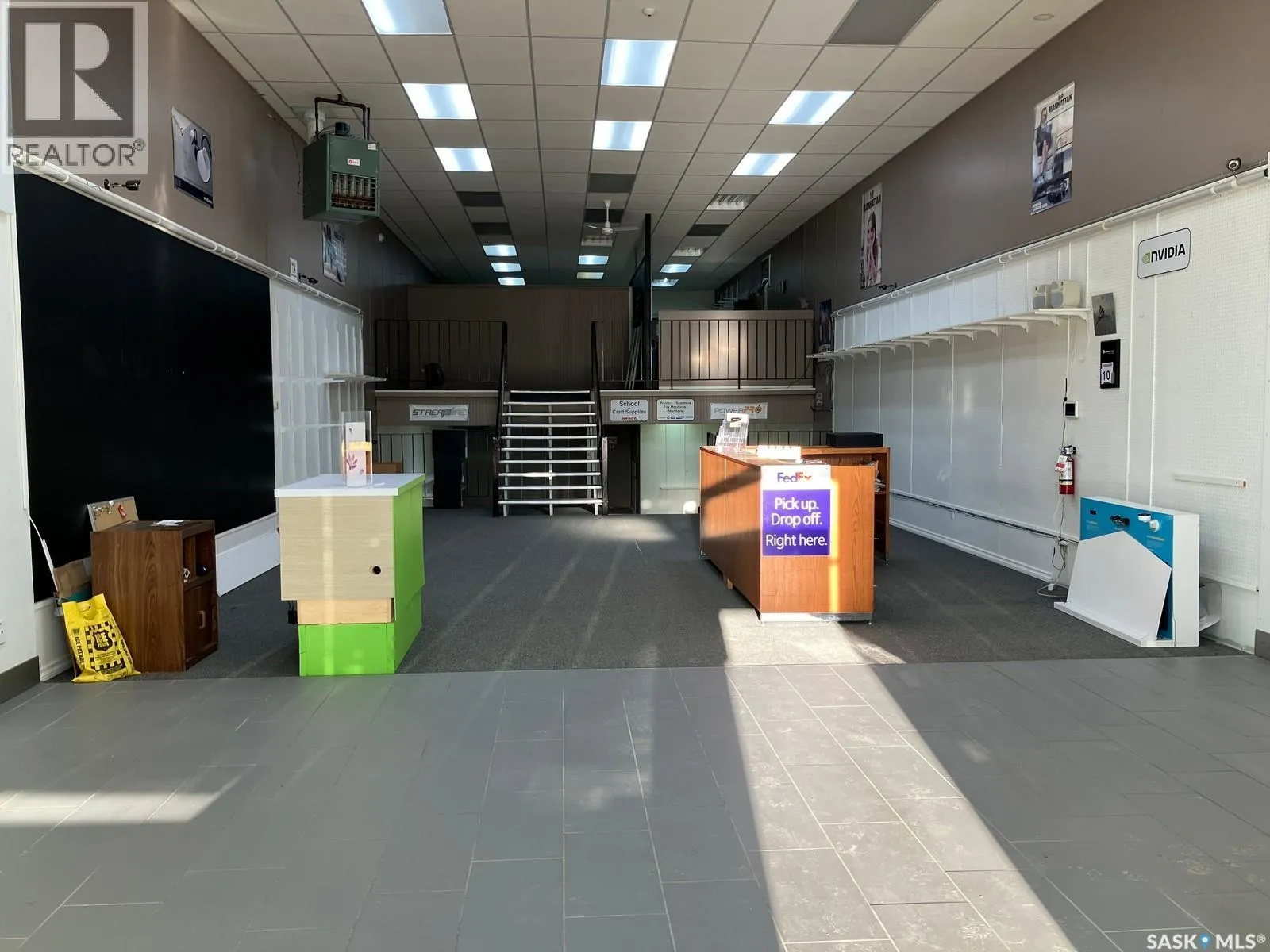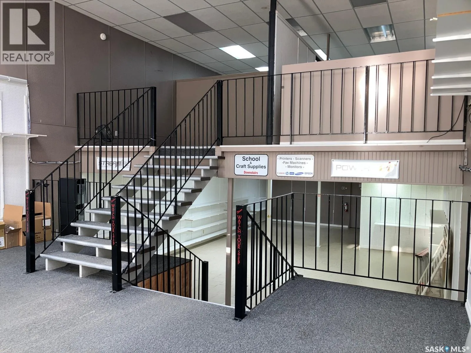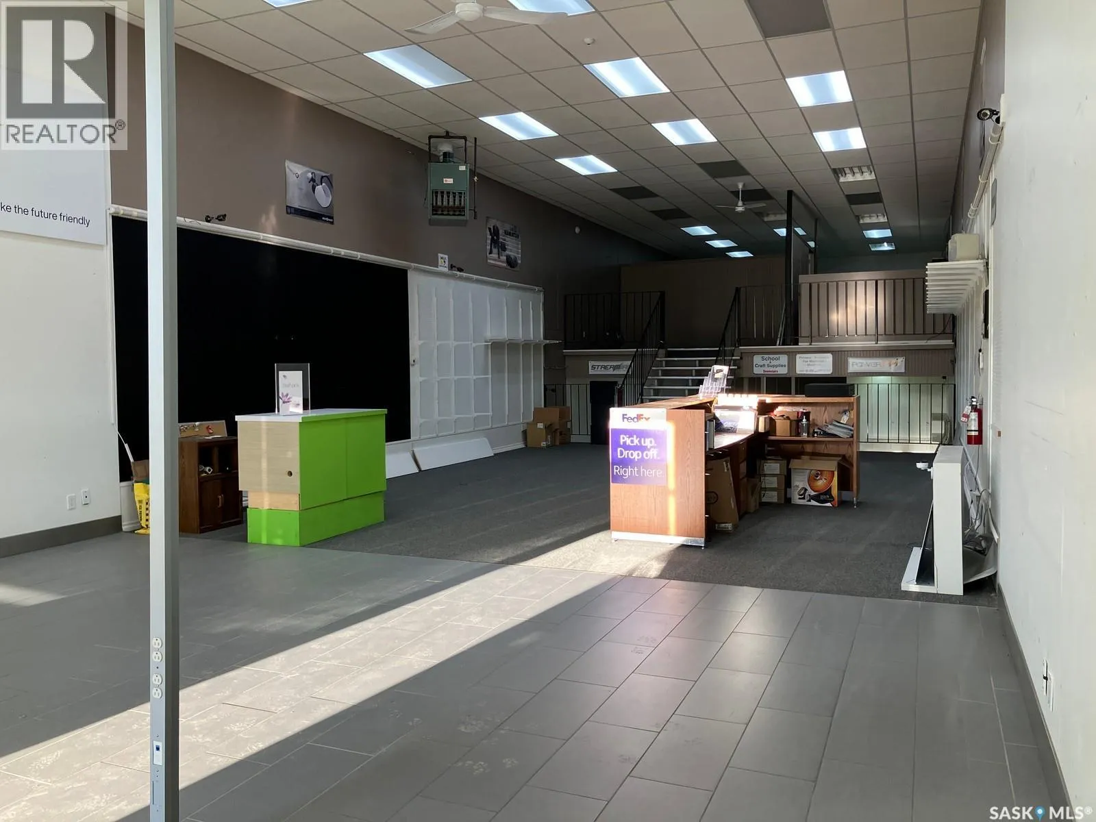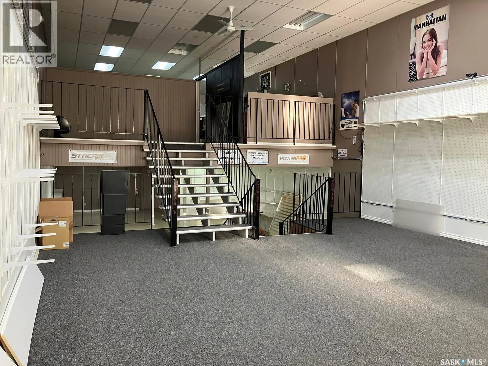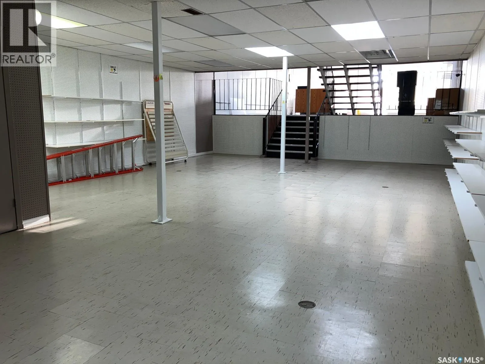 Exceptional location in downtown Nipawin! This is a great opportunity to elevate your business with high visibility on the main drag in a high traffic area! This property features approximately 2600 sq ft above ground, plus approx. 1300 sq ft downstairs. There is a great display space on the main floor plus downstairs. Upstairs is an additional work area with a coffee break section and a bathroom. Downstairs there is an additional office and a room roughed-in for a bathroom. There are endless business opportunities. Call today! (id:27476)