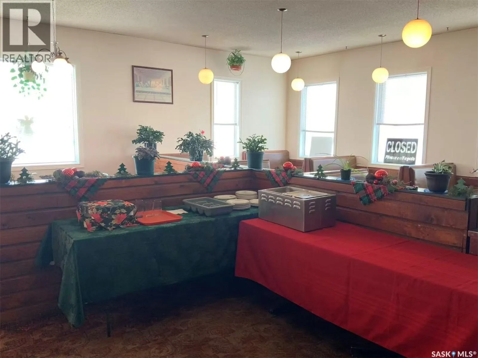 Outstanding restaurant opportunity in the heart of Nokomis, perfectly situated at the junction of Highways #20 and #15. This property features a spacious dining room, fully equipped commercial kitchen, bar/lounge, and comfortable living quarters, with a strong track record of serving both locals and travelers. Significant upgrades within the last three years include new furnaces, air conditioning, water and sewer lines, water heater, grill, oven, deep fryer, fridge, cooler, coffee machine, triple-pane windows, porch, front door, and new roof shingles in 2023. With the BHP mine expected to bring major growth to the area, this is a prime turnkey investment in a thriving community. Strong cash flow and great potential! (id:27476)